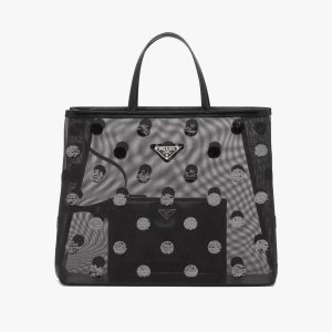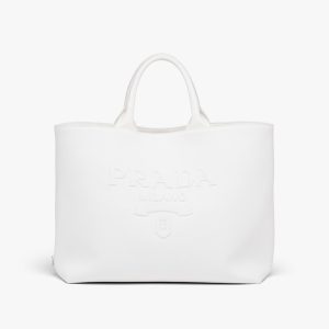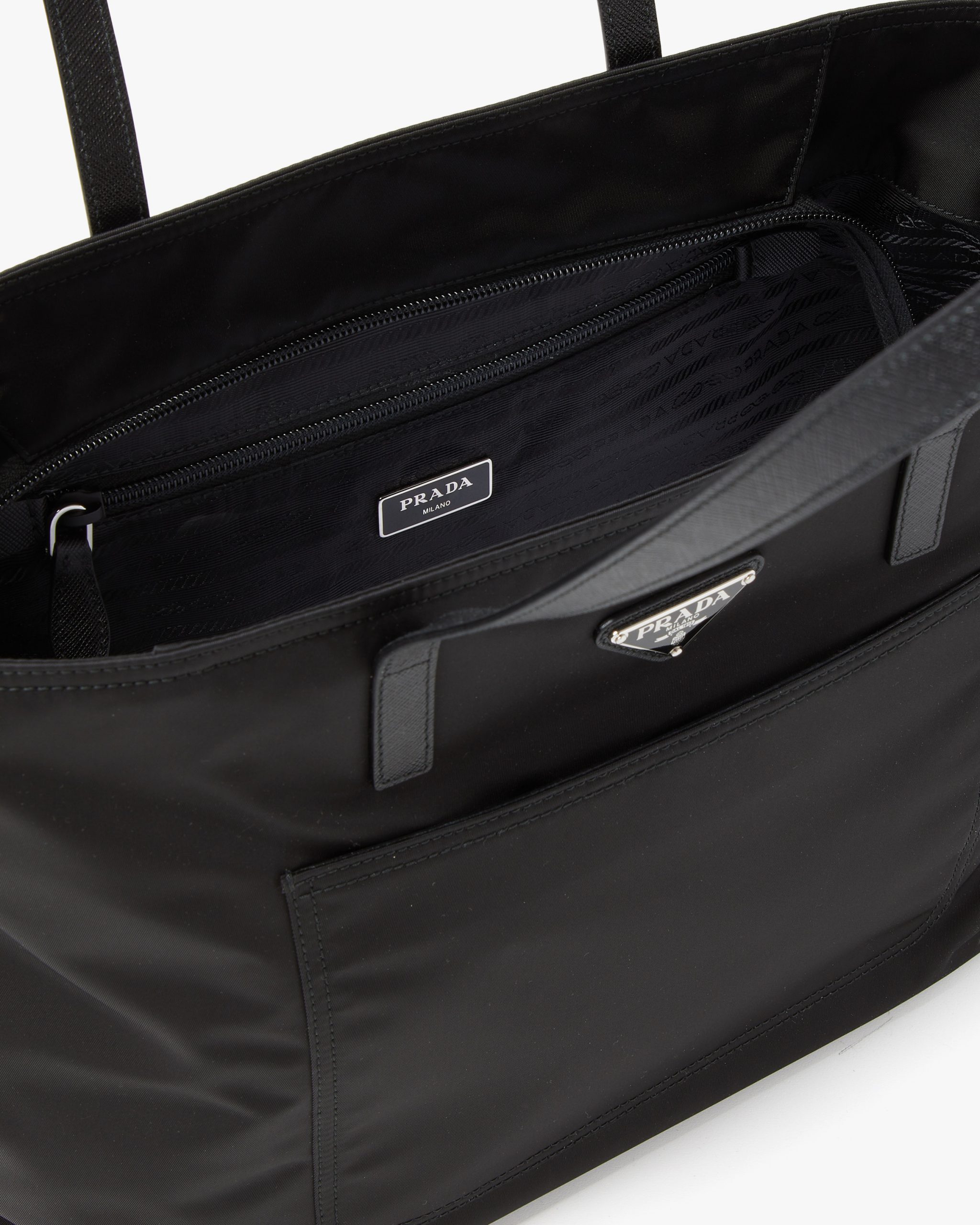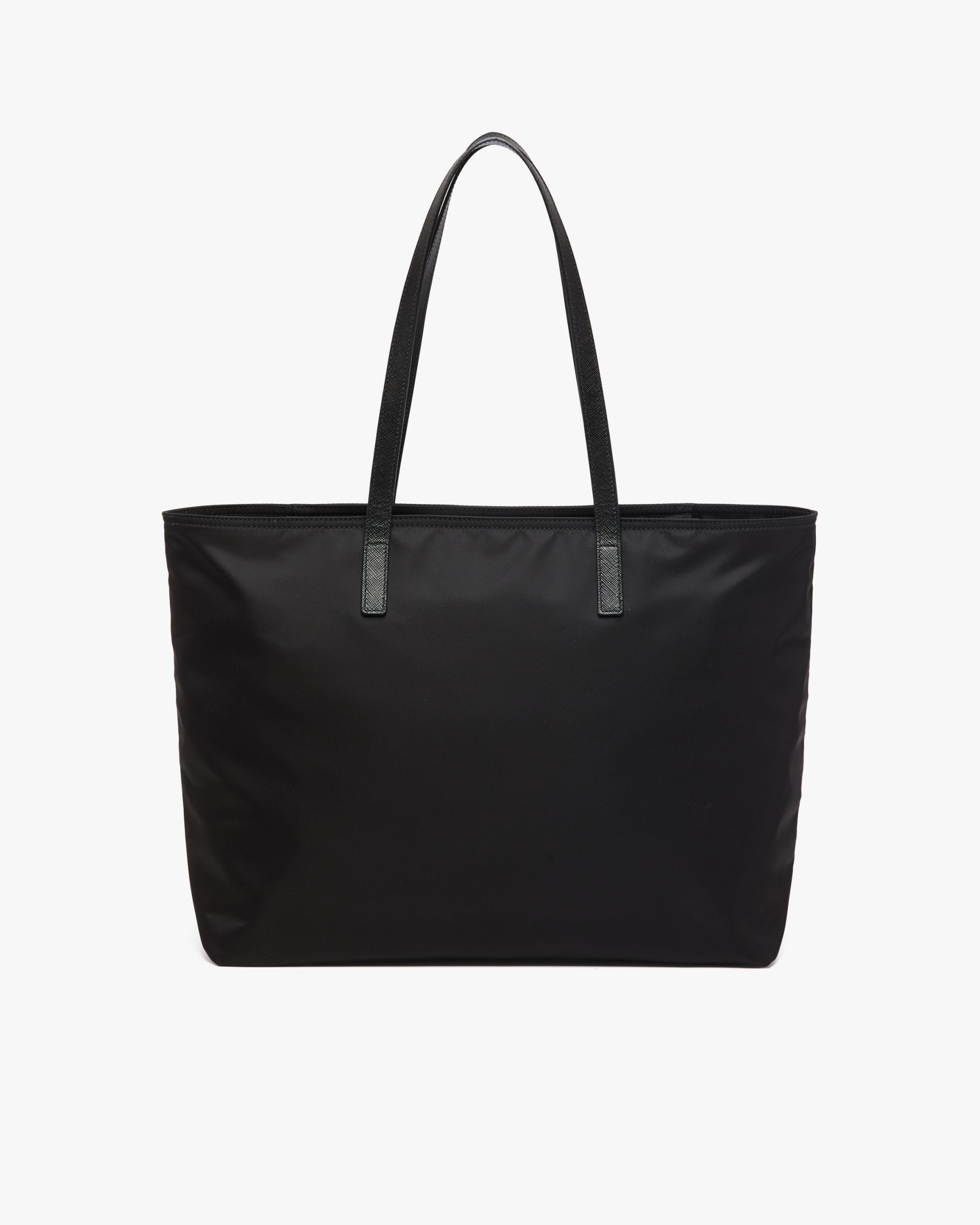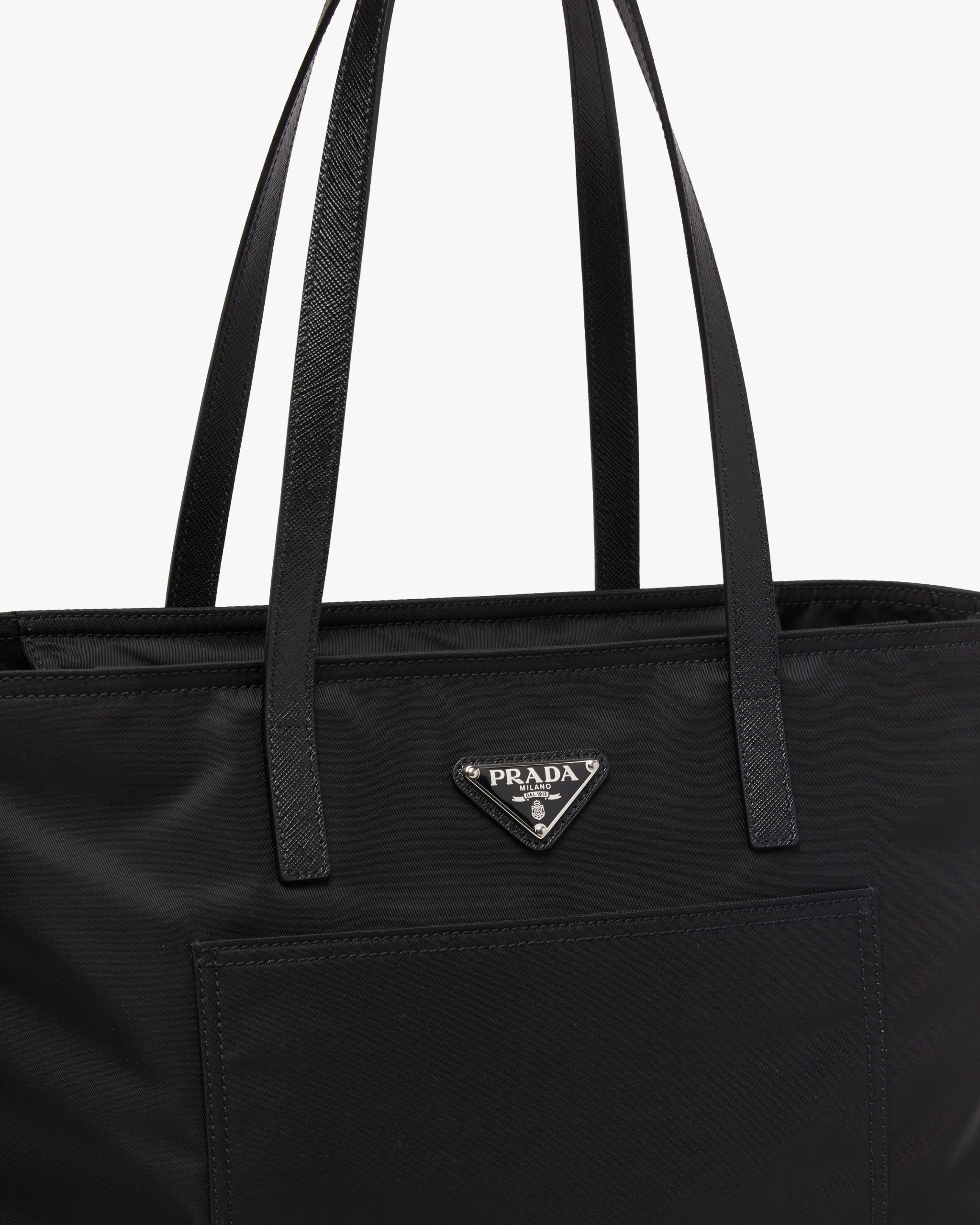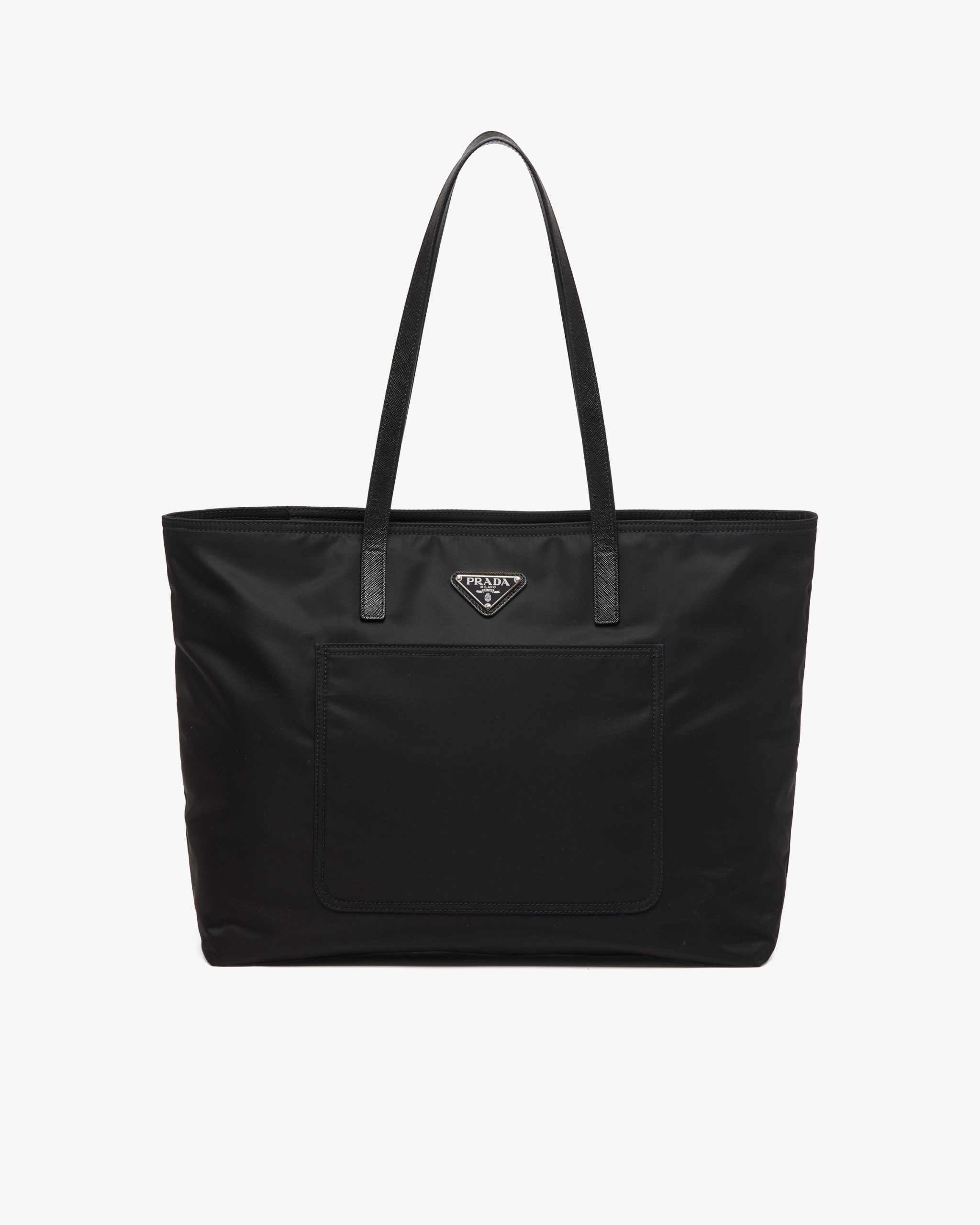 A roomy front pocket stands out on this tote bag with a classic design, accented with Saffiano leather handles and decorated with the distinctive triangle logo2. Introduced to the luxury world precisely by Prada, nylon exemplifies the brand’s propensity to combine concepts, workmanship and shapes that were previously considered irreconcilable. Here, the emblematic fabric is presented in its evolved, sustainable version produced from recycled, purified plastic material collectsed in the ocean.
