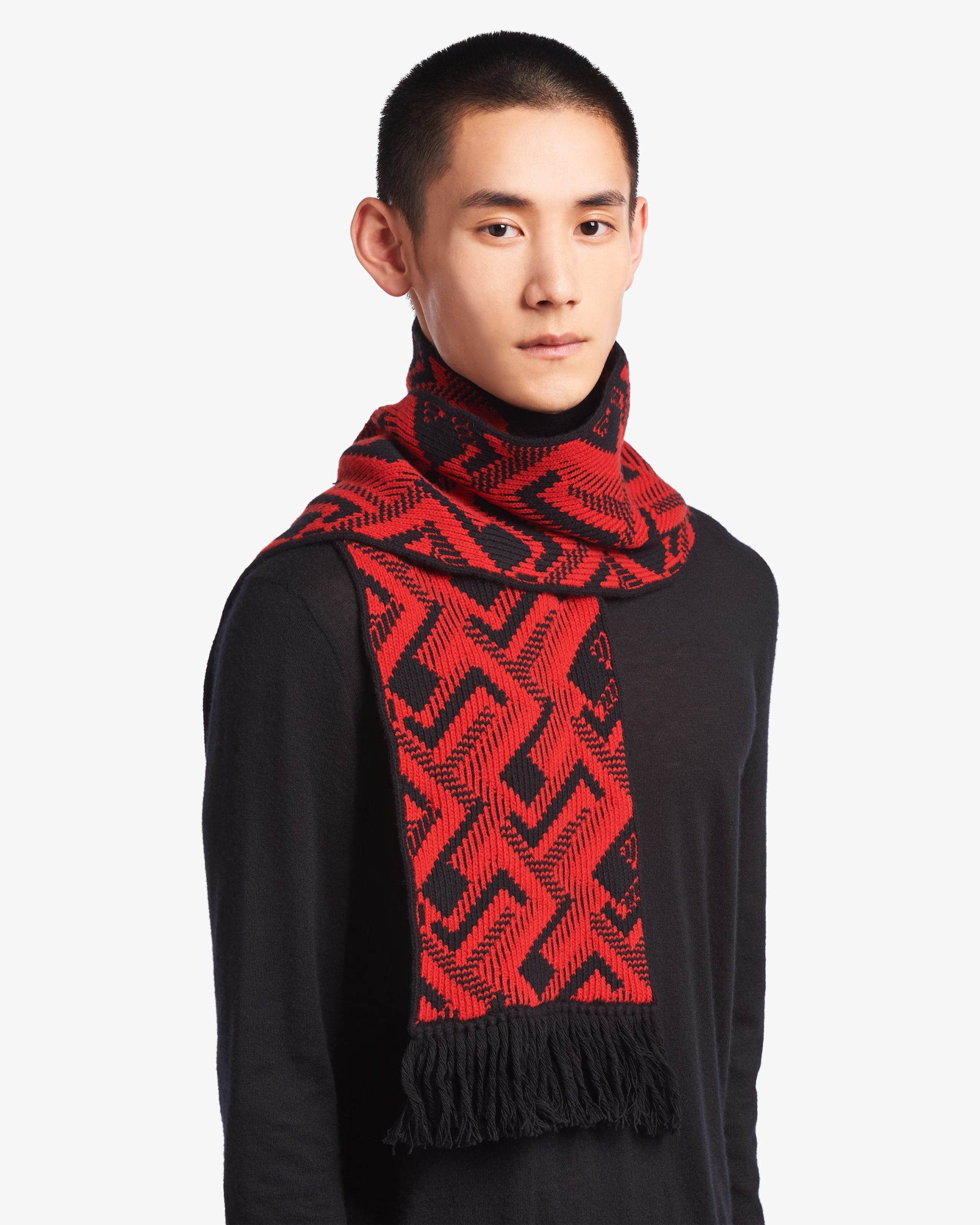Black/red Wool and cashmere jacquard scarf