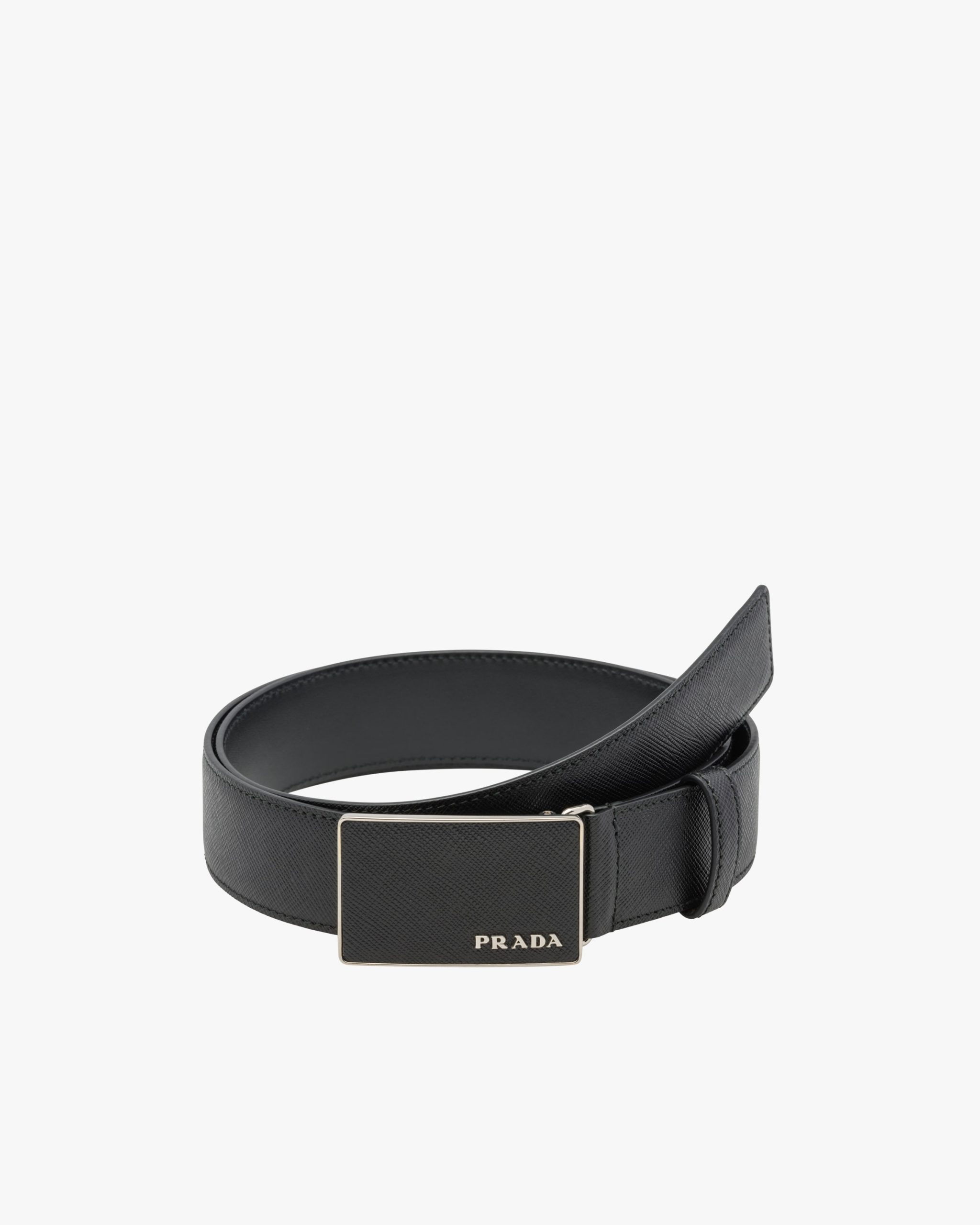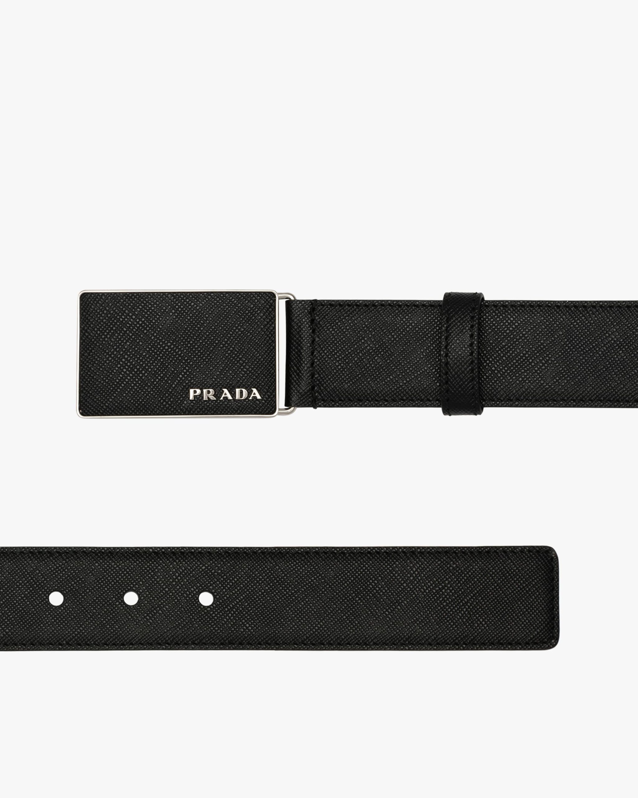 This belt features a pure and elegant design, with a Saffiano leather buckle and enriched by the metal lettering logo2.