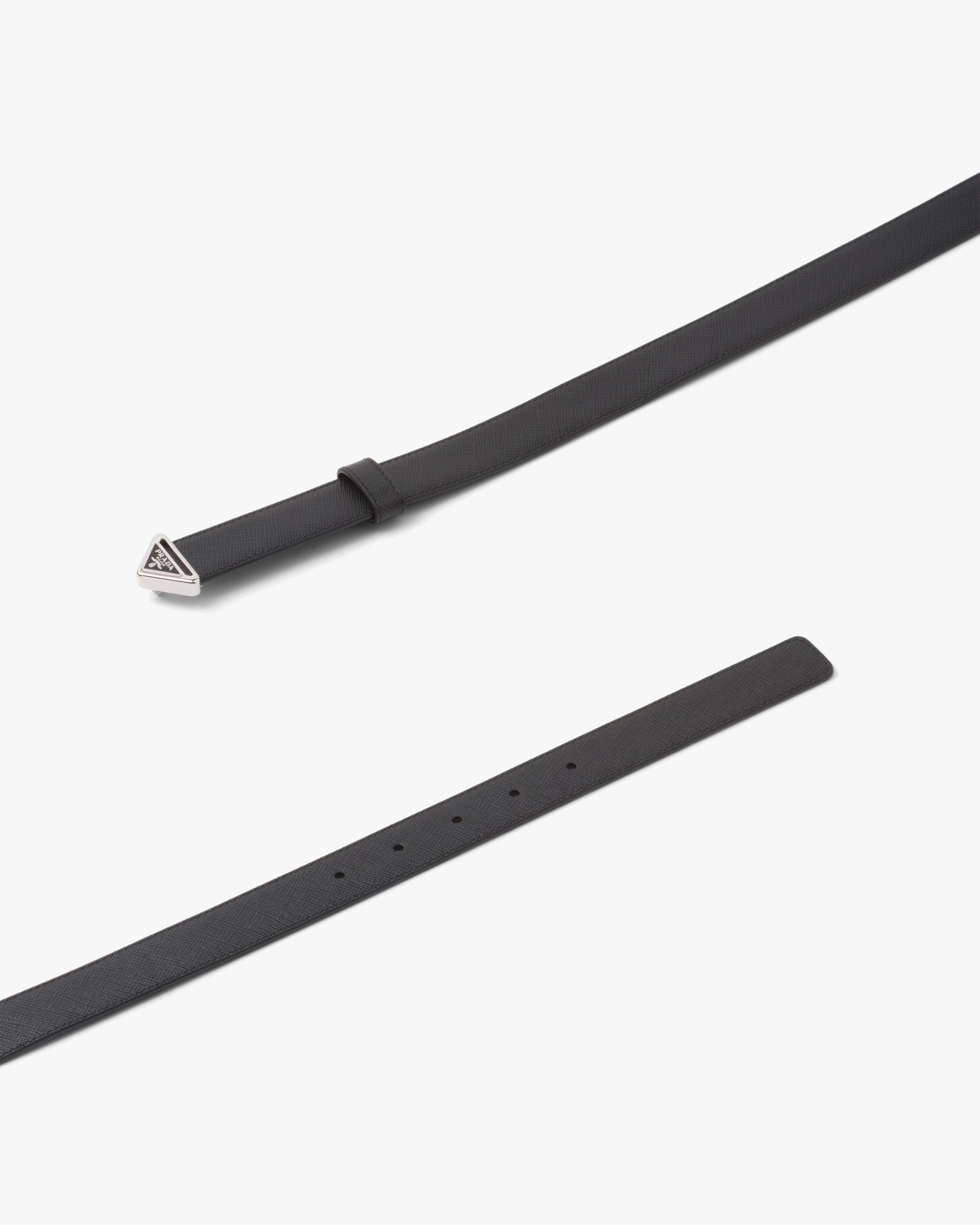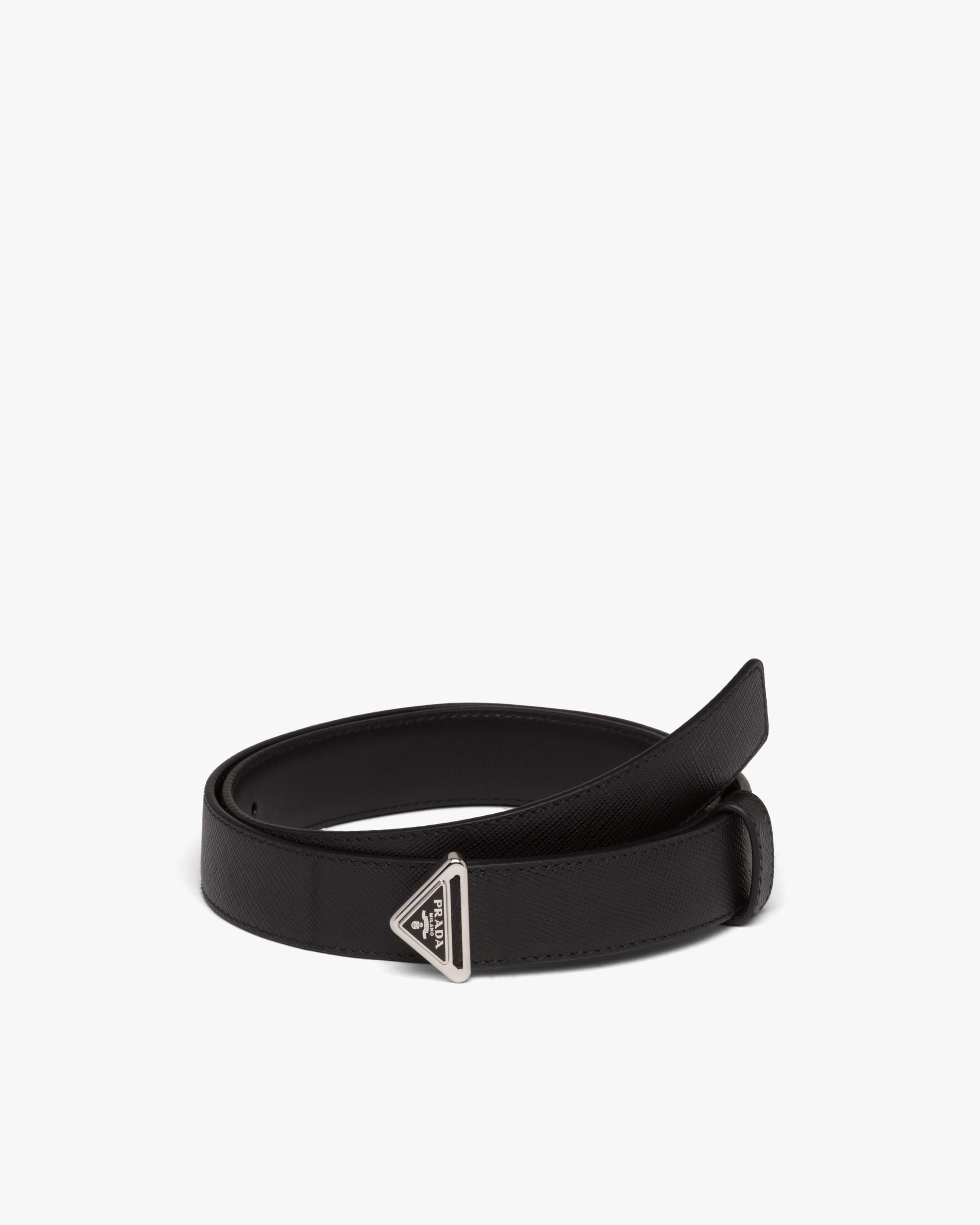 Introduced for the first time on trunks designed by Mario Prada in 1913, the historic enameled triangle logo2 transforms the buckle that completes this belt. Saffiano leather, an iconic Prada material that identifies with traditional Italian leather manufacturing, is defined by a crosshatch pattern and waxed finish.
