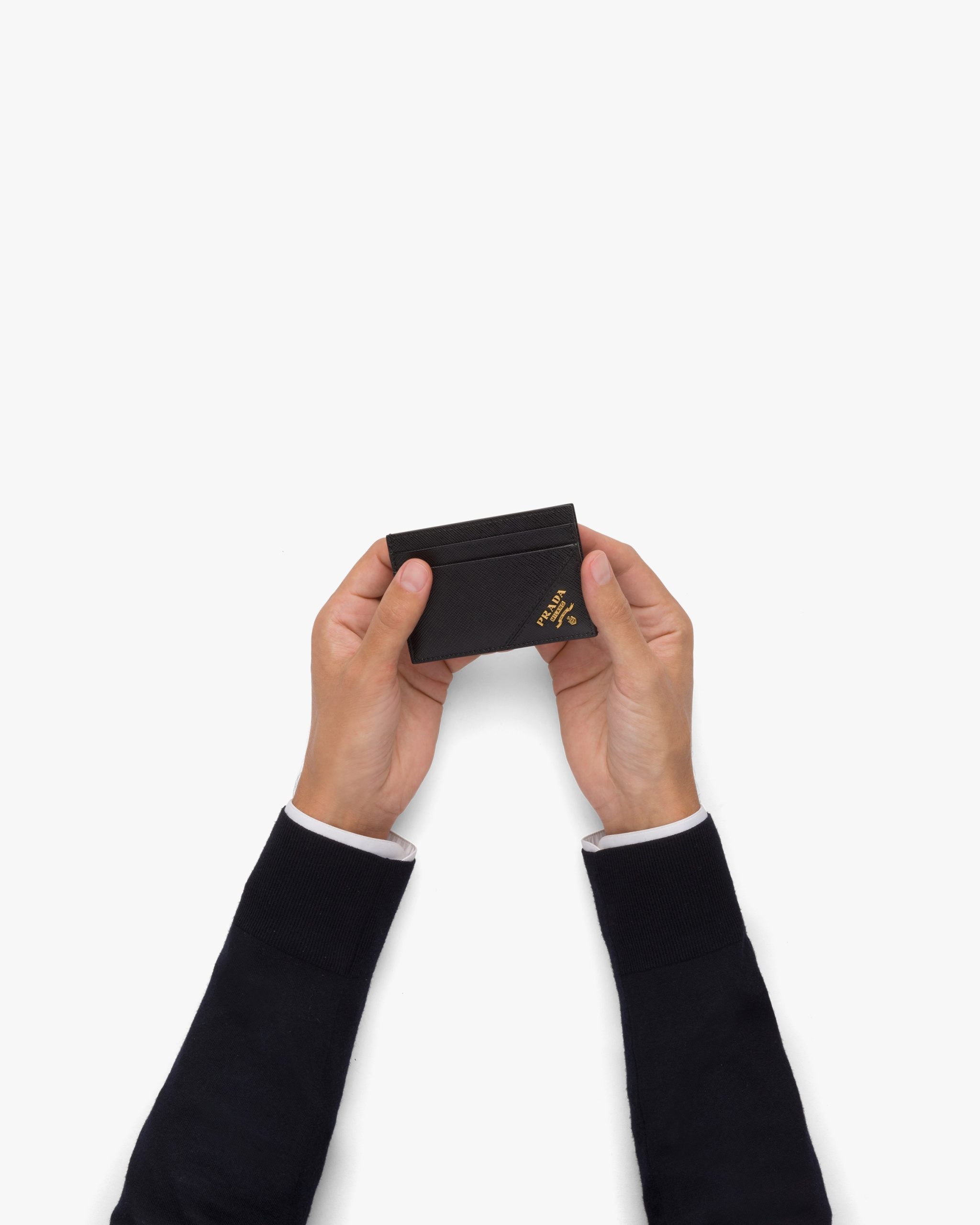 This practical accessory in Saffiano leather has two card slots, an inside pocket, and elegant removable money clip.