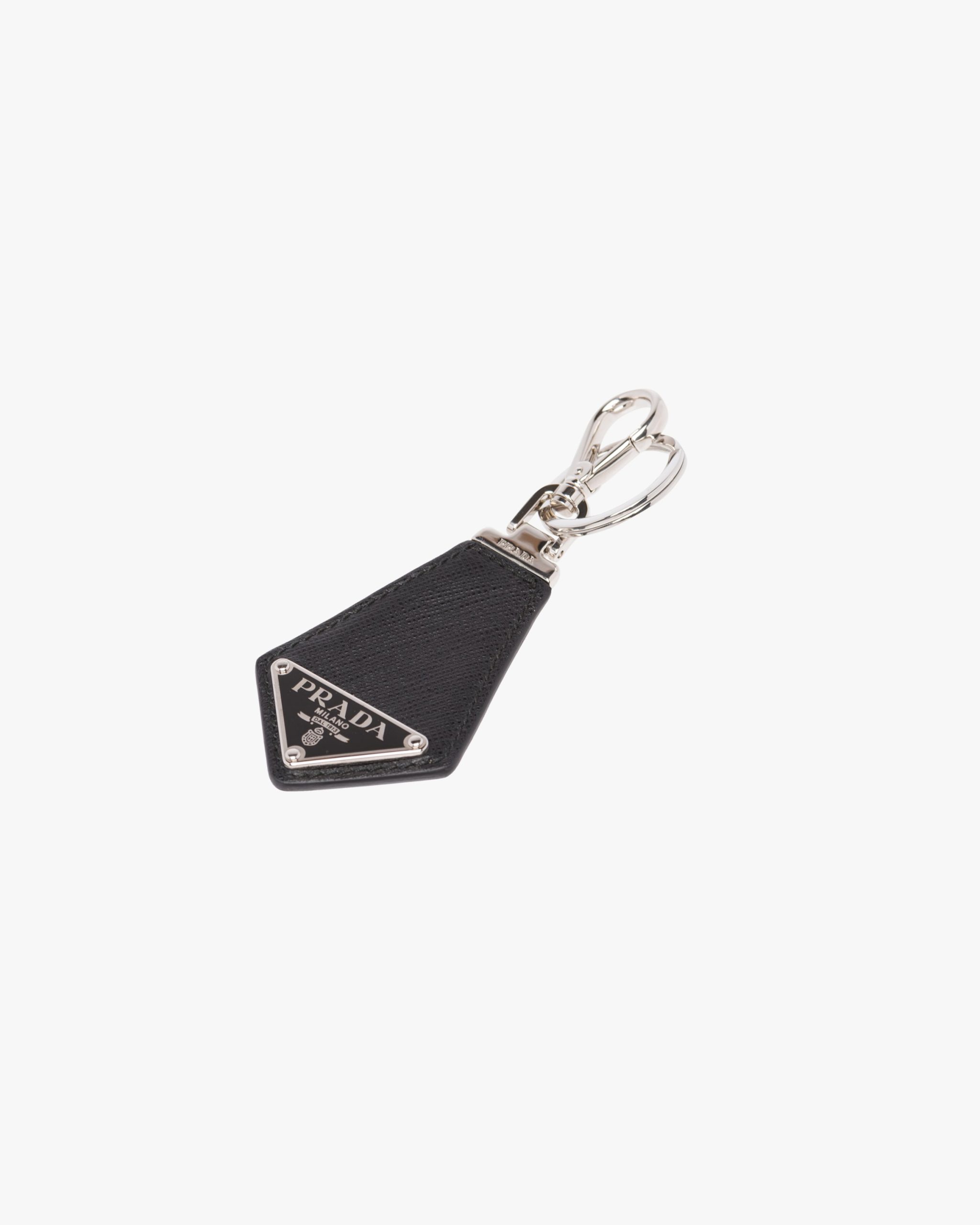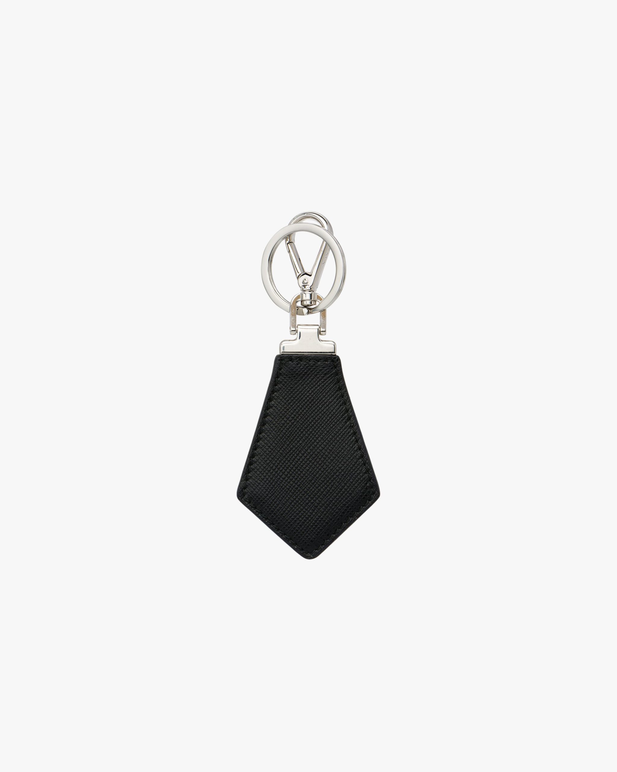 This elegant keychain is built from Saffiano leather in the shape of a tie. Embellished with the triangular Prada logo2, it offers a hook and split ring for attaching keys.