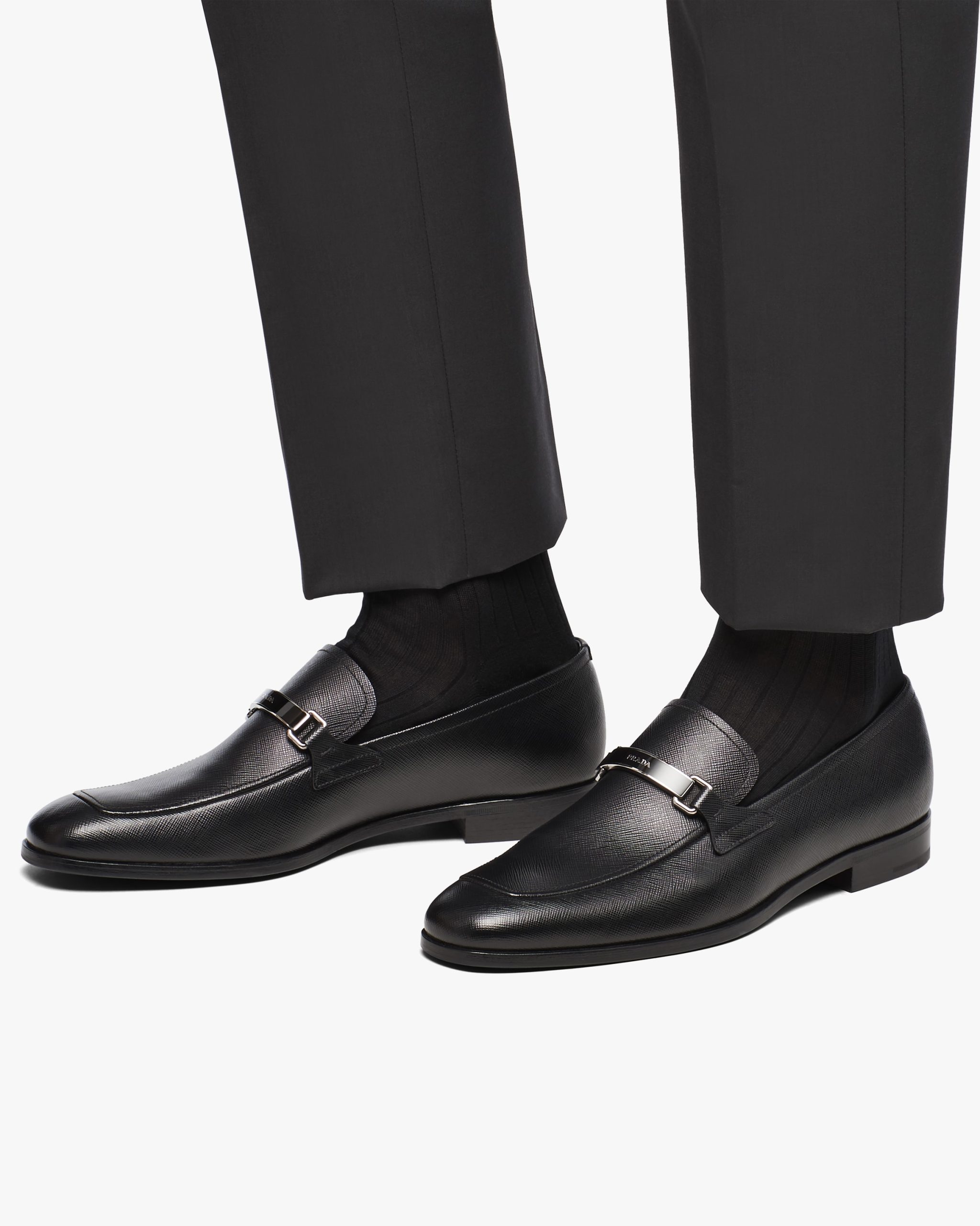 Made of iconic Saffiano leather, these loafers are characterized by the logo2 on the front metal tag.