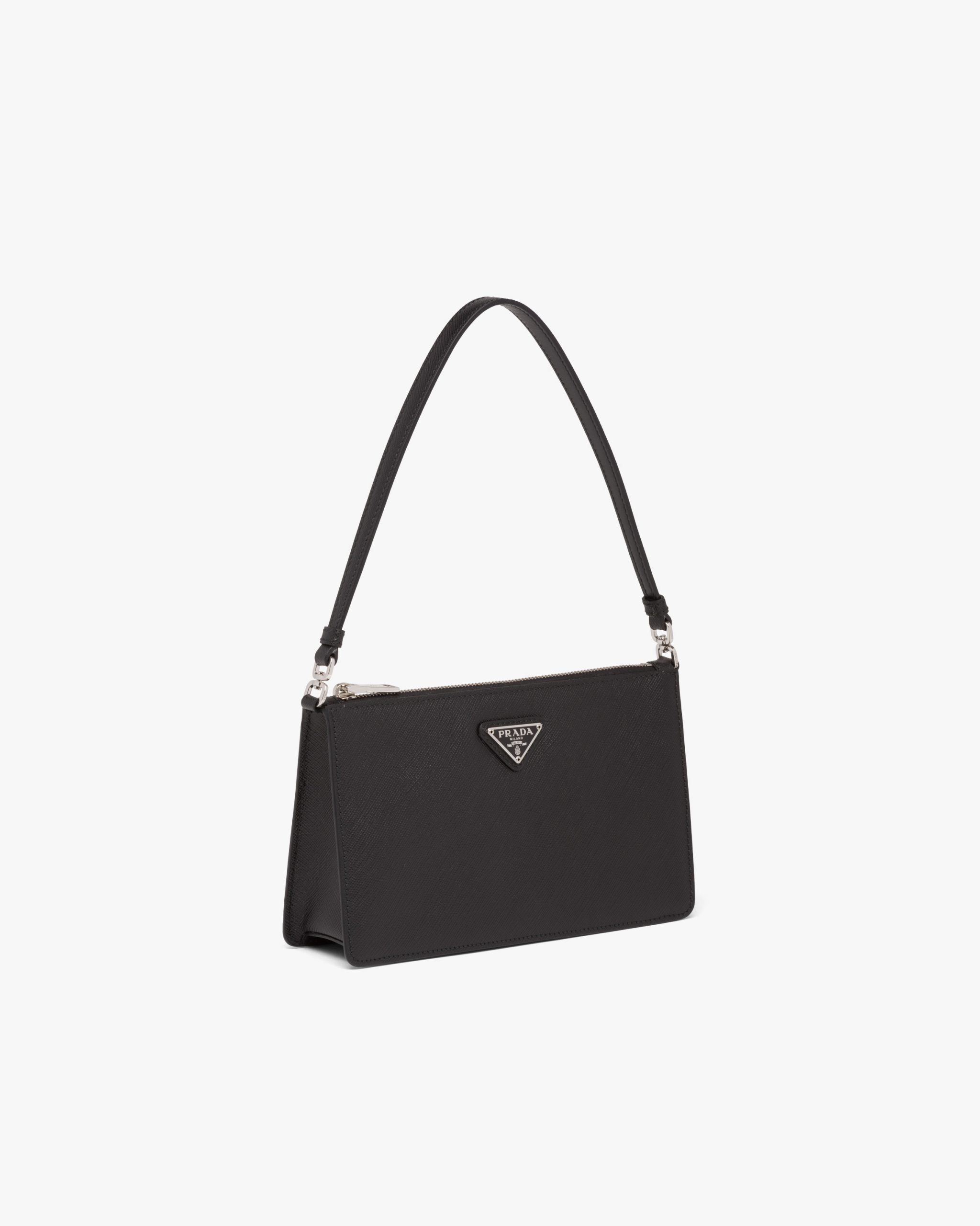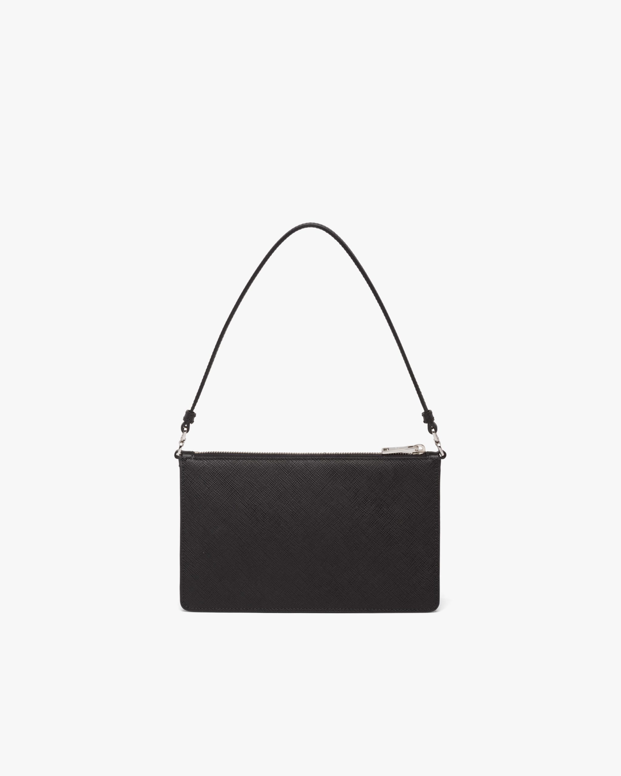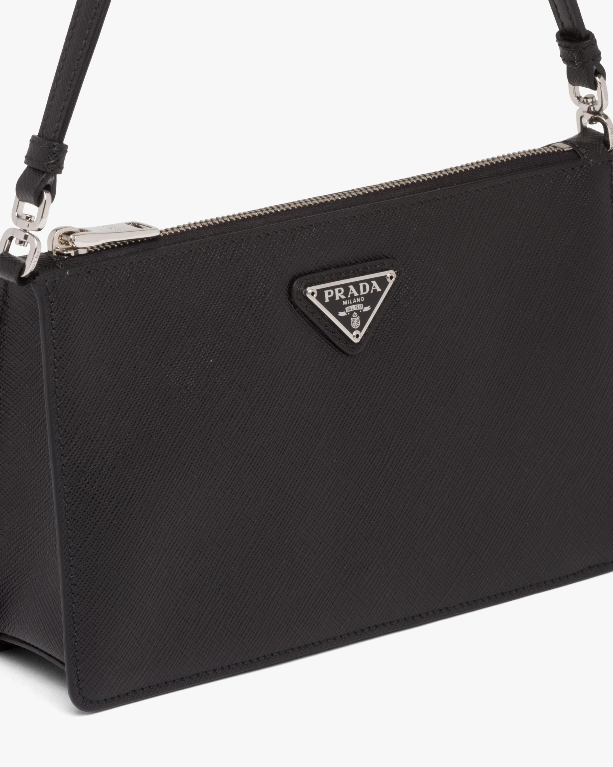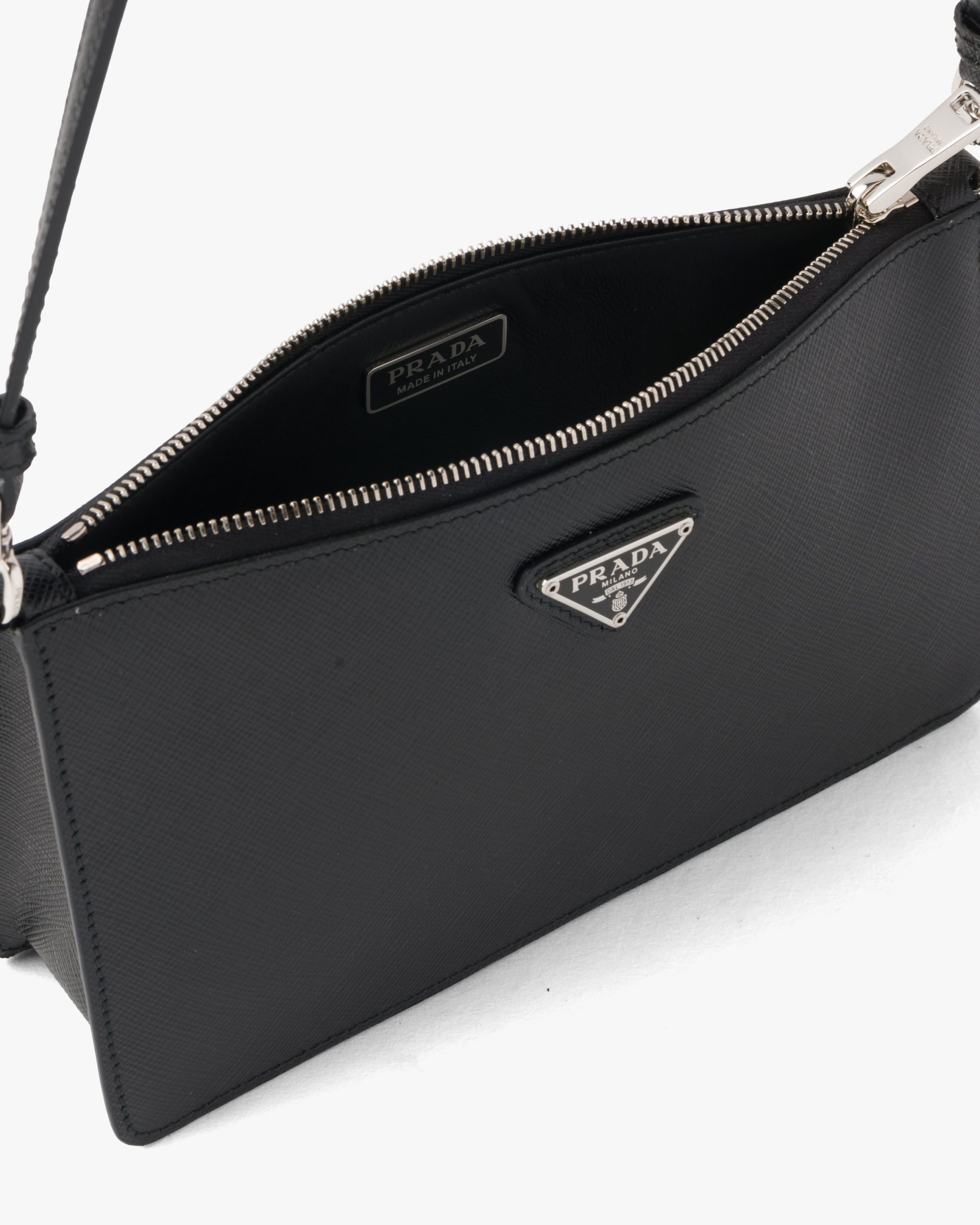 Defined by a structured design, this mini bag comes in Saffiano, an iconic Prada material: calf leather of the highest quality, defined by a crosshatch pattern and waxed finish. The enameled metal triangle logo2 adorns the accessory.