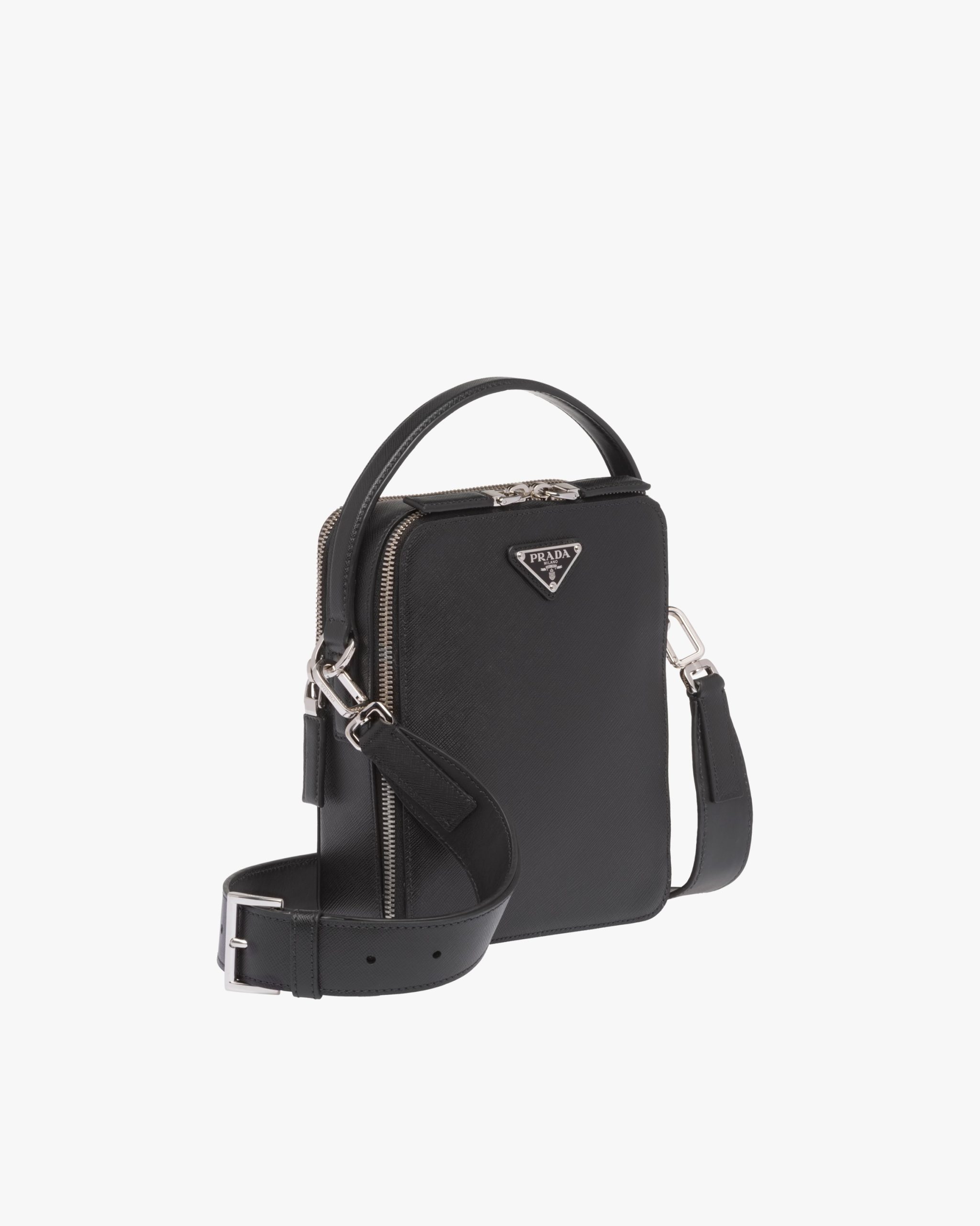 Black Saffiano Leather Prada Brique Bag
