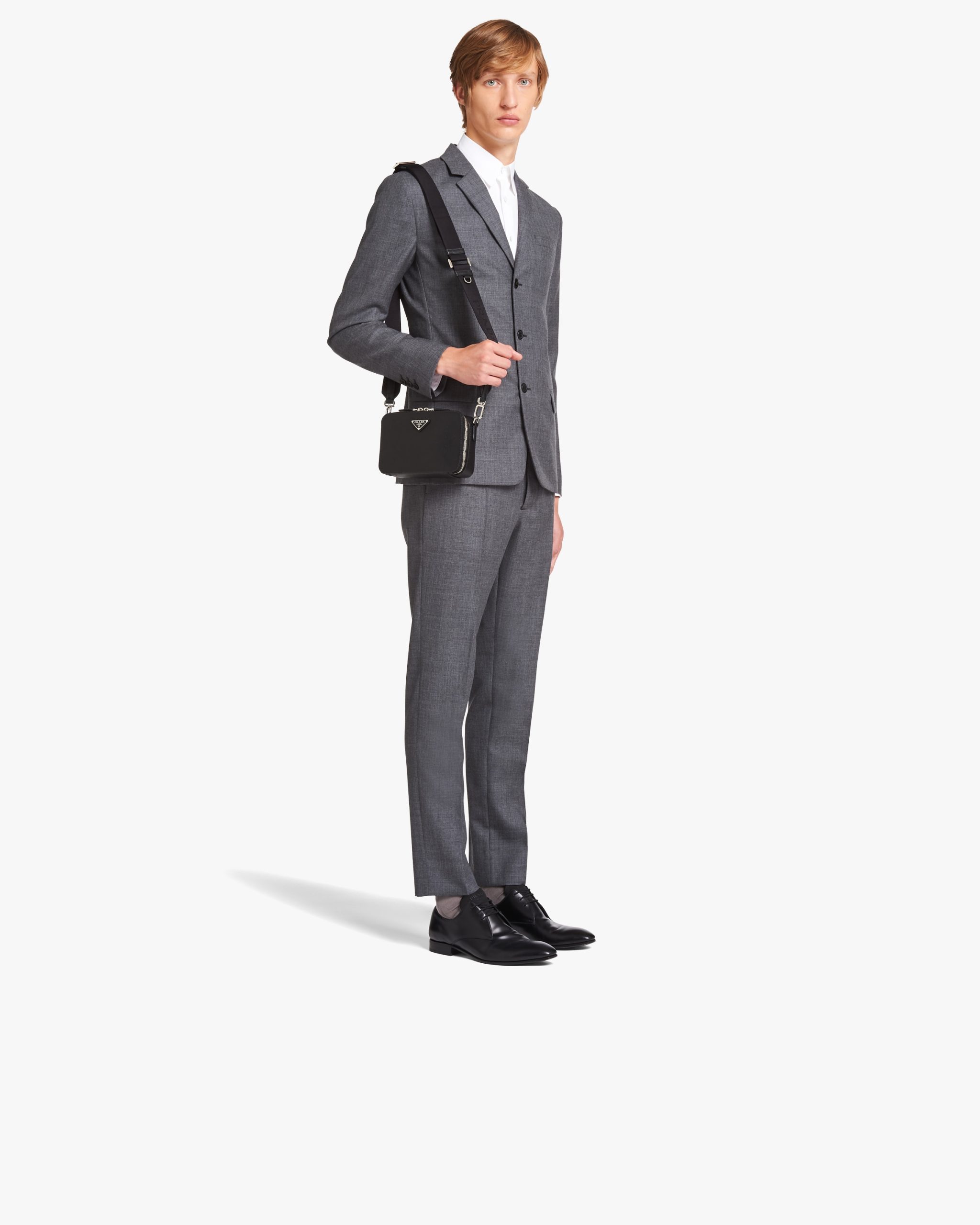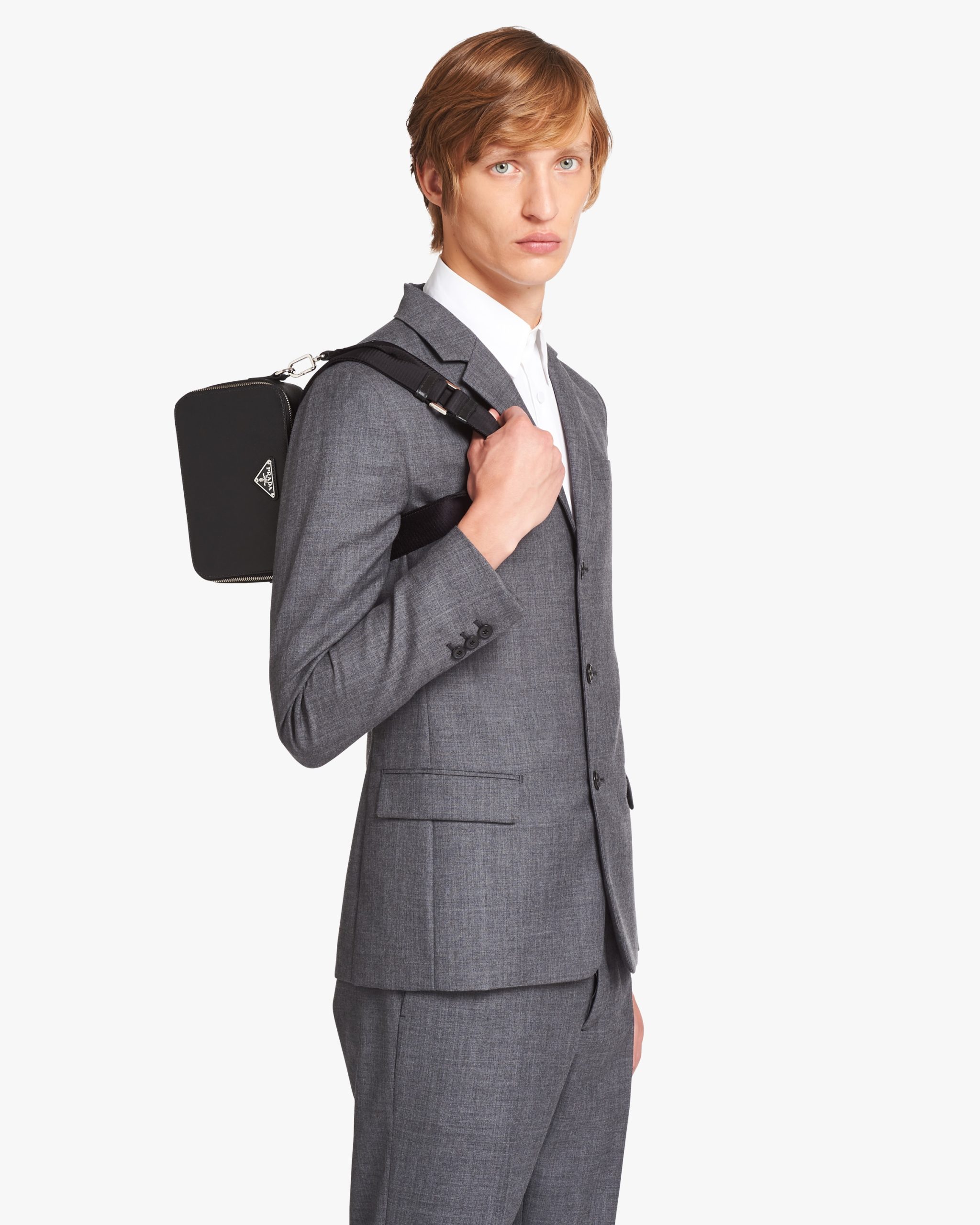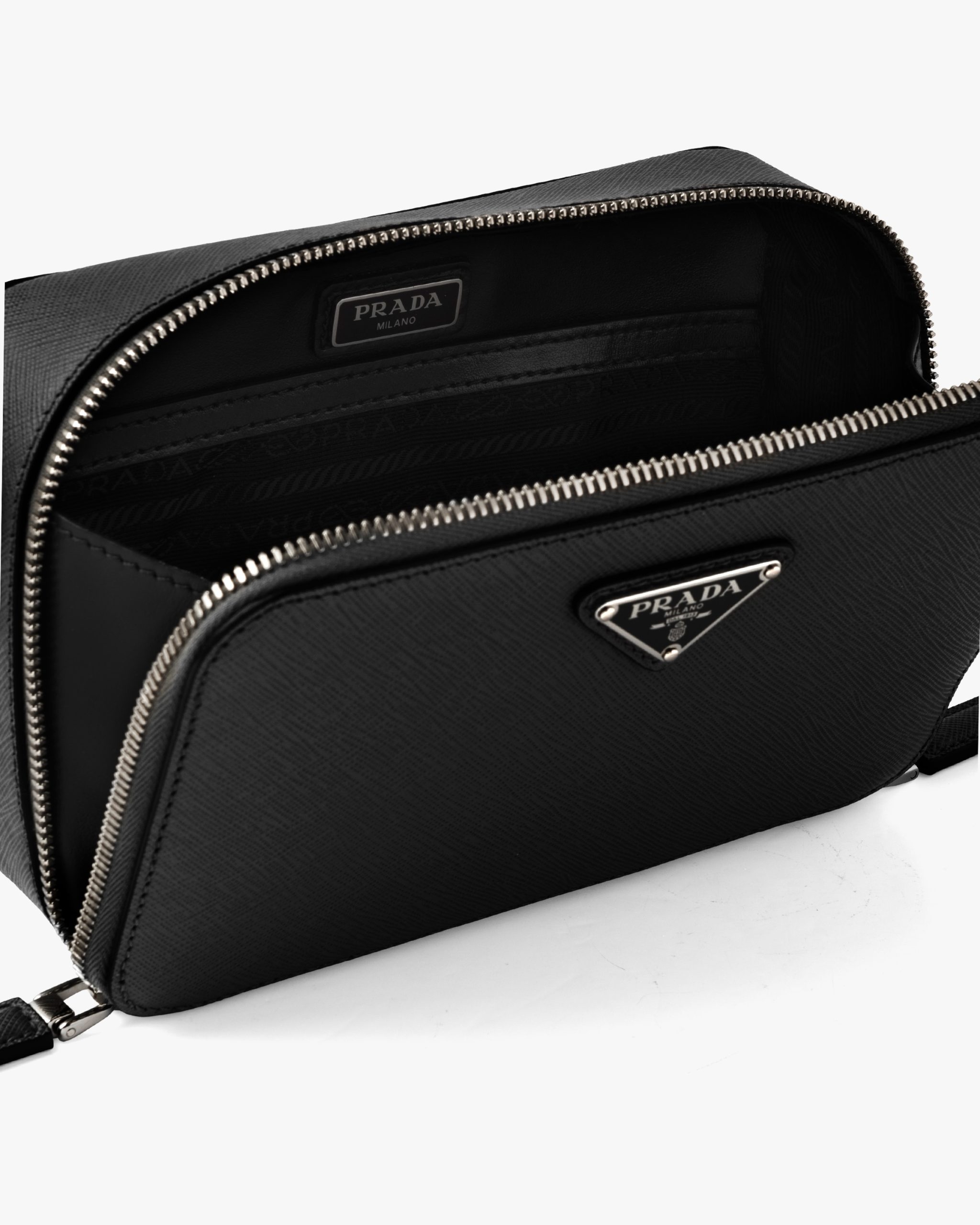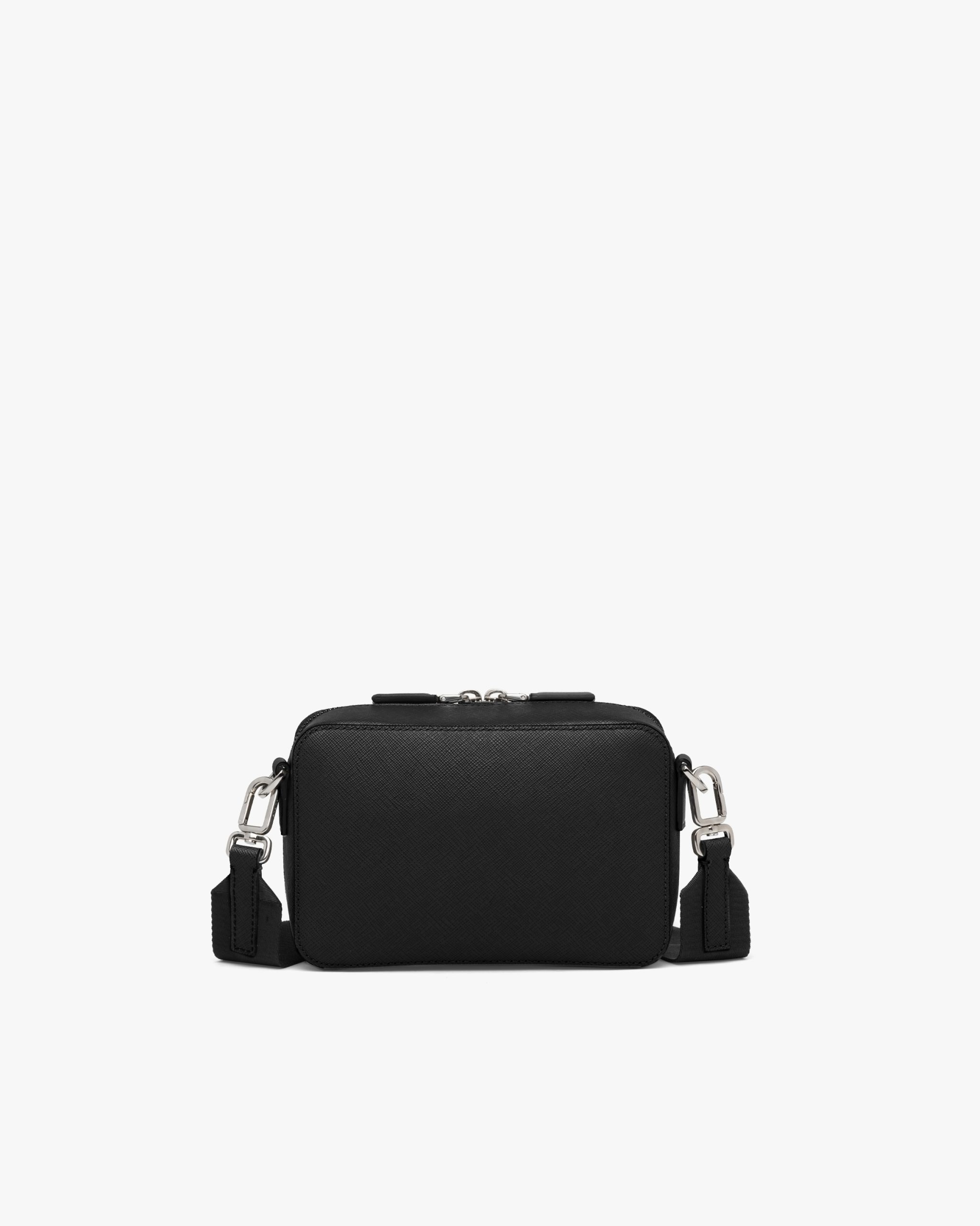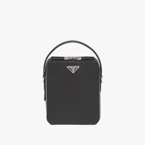 This contemporary bag with sleek lines has a leather handle and detachable adjustable woven nylon tape shoulder strap that adds lightness and versatility to the accessory. Saffiano leather, an iconic Prada material with a crosshatch pattern and wax finish, is synonymous with luxury and identifies with traditional Italian leather goods production. The triangle logo2 first introduced on trunks designed by Mario Prada decorates this accessory, a perfect combination of elegance and practicality.