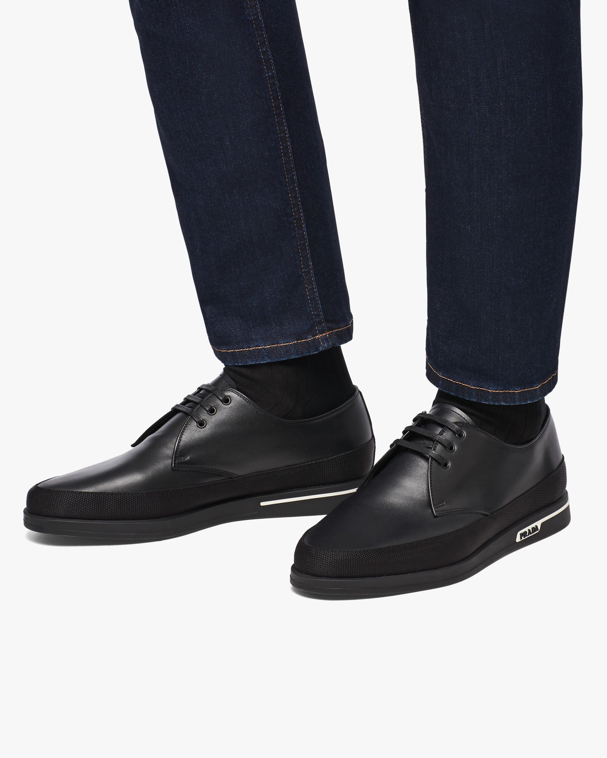 These leather derby shoes are defined by the logo2 on the rubber sole.