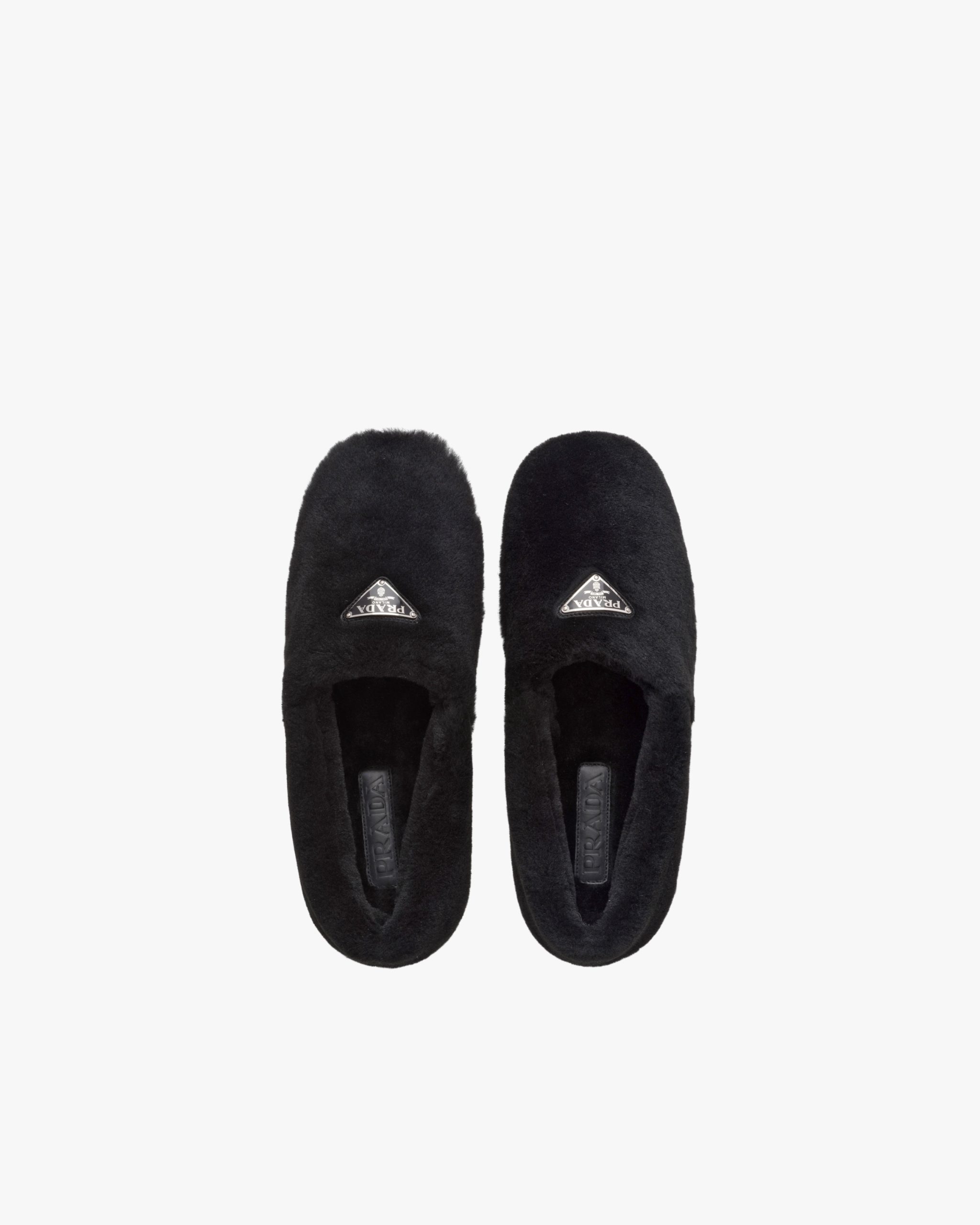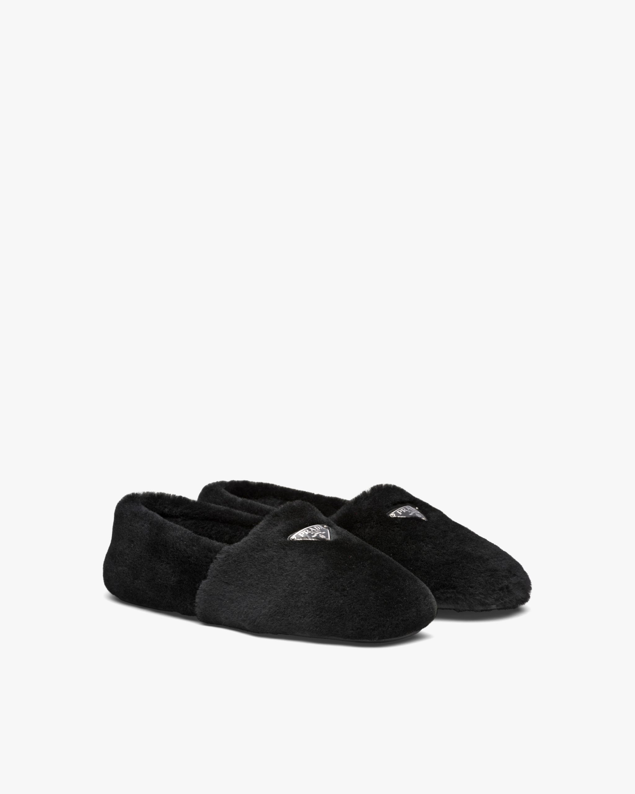 Freedom of movement, comfort and coziness are key concepts in the design of these shearling sabots. The enameled triangle logo2 accentuates the sophisticated allure of these shoes.