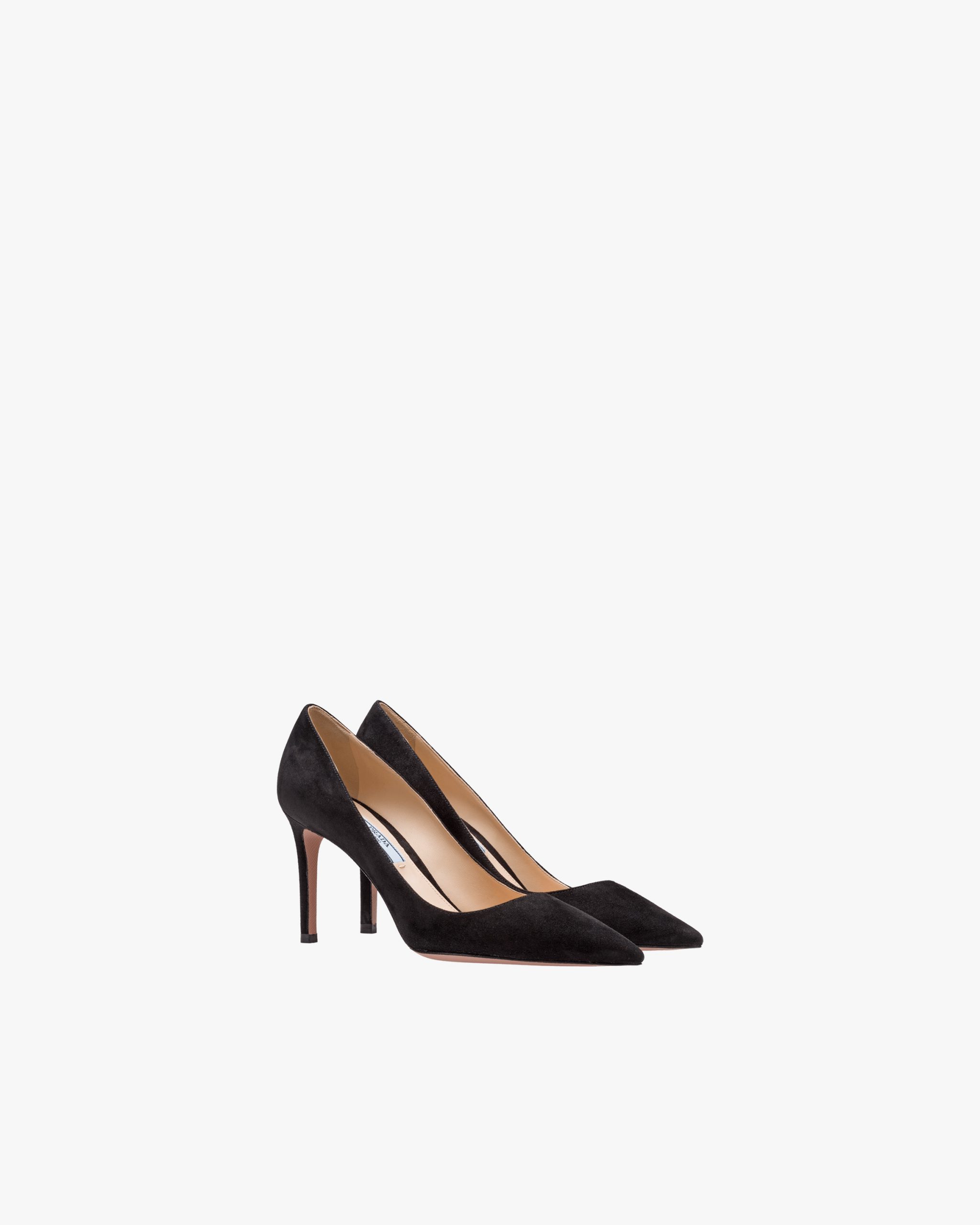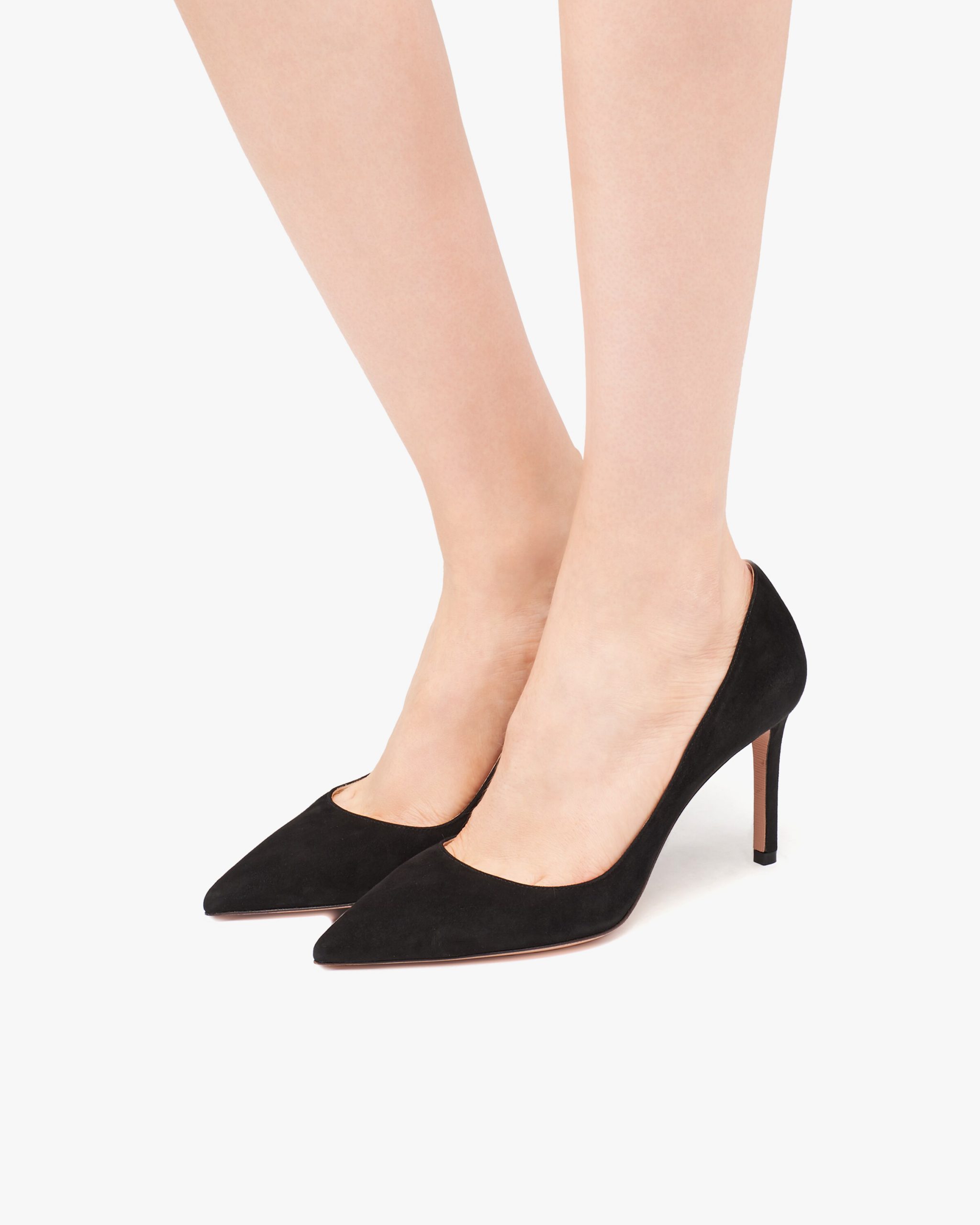 These suede pumps with refined pointy toe silhouette and stiletto heel express timeless elegance. The shoe is embellished with a metal lettering logo2 on the leather sole.