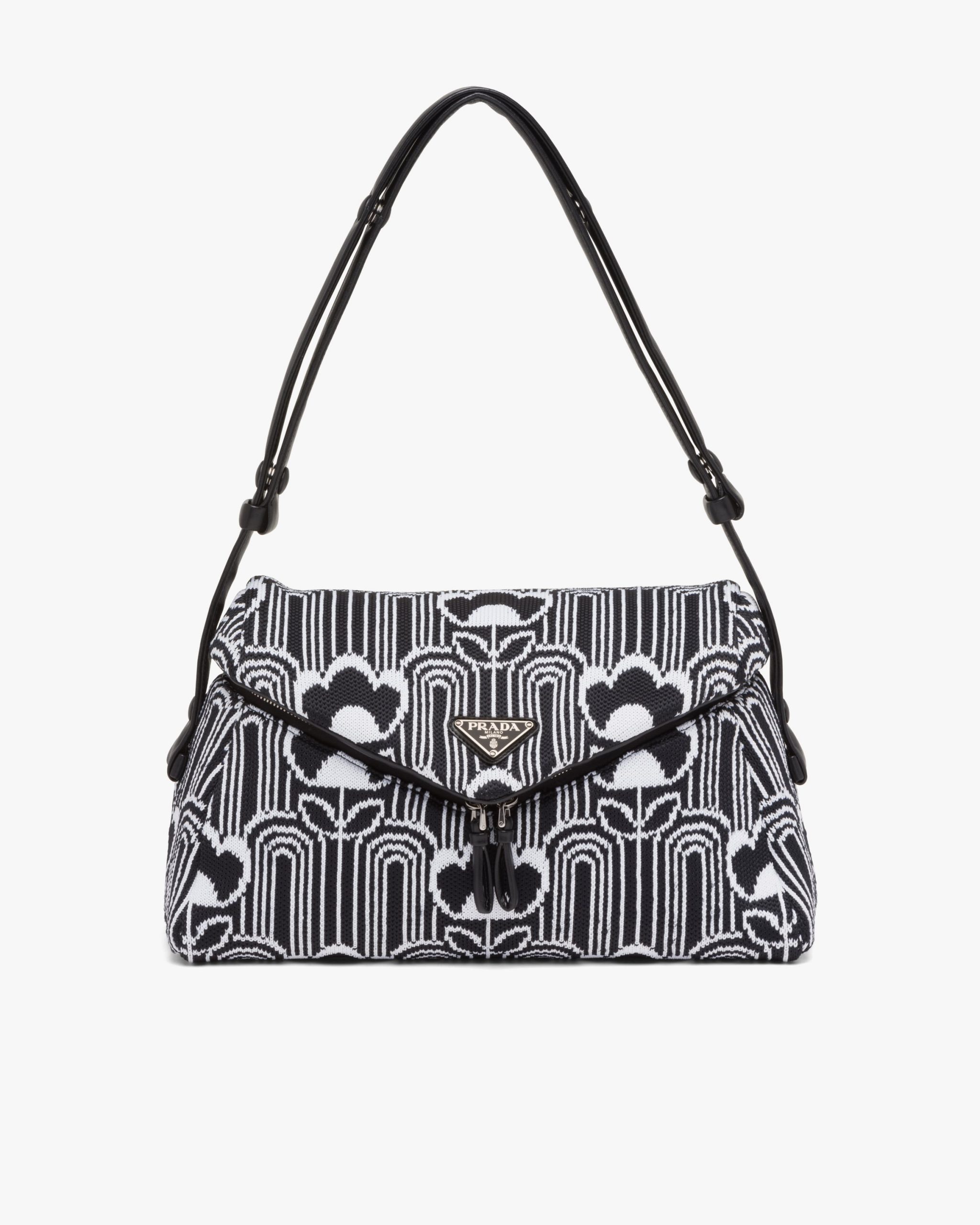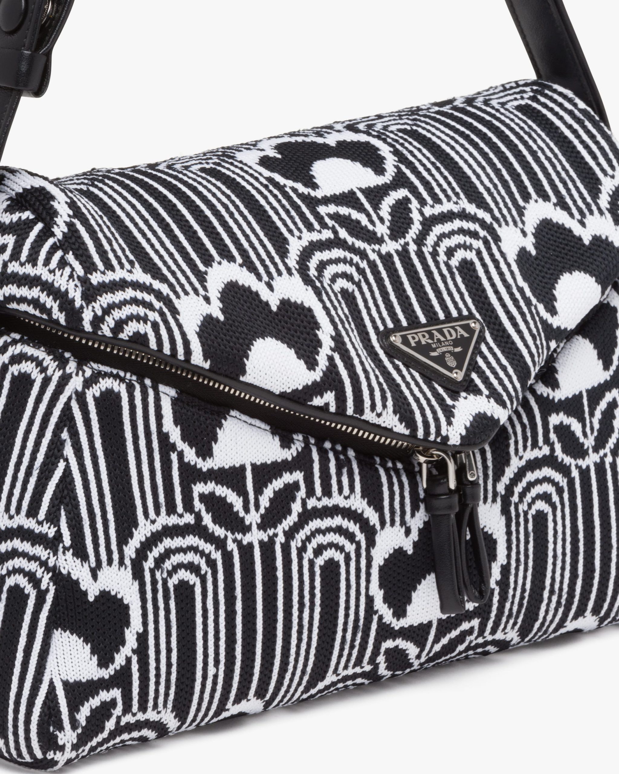 Be the first to review “Black/white Jacquard knit and leather Prada Signaux bag”