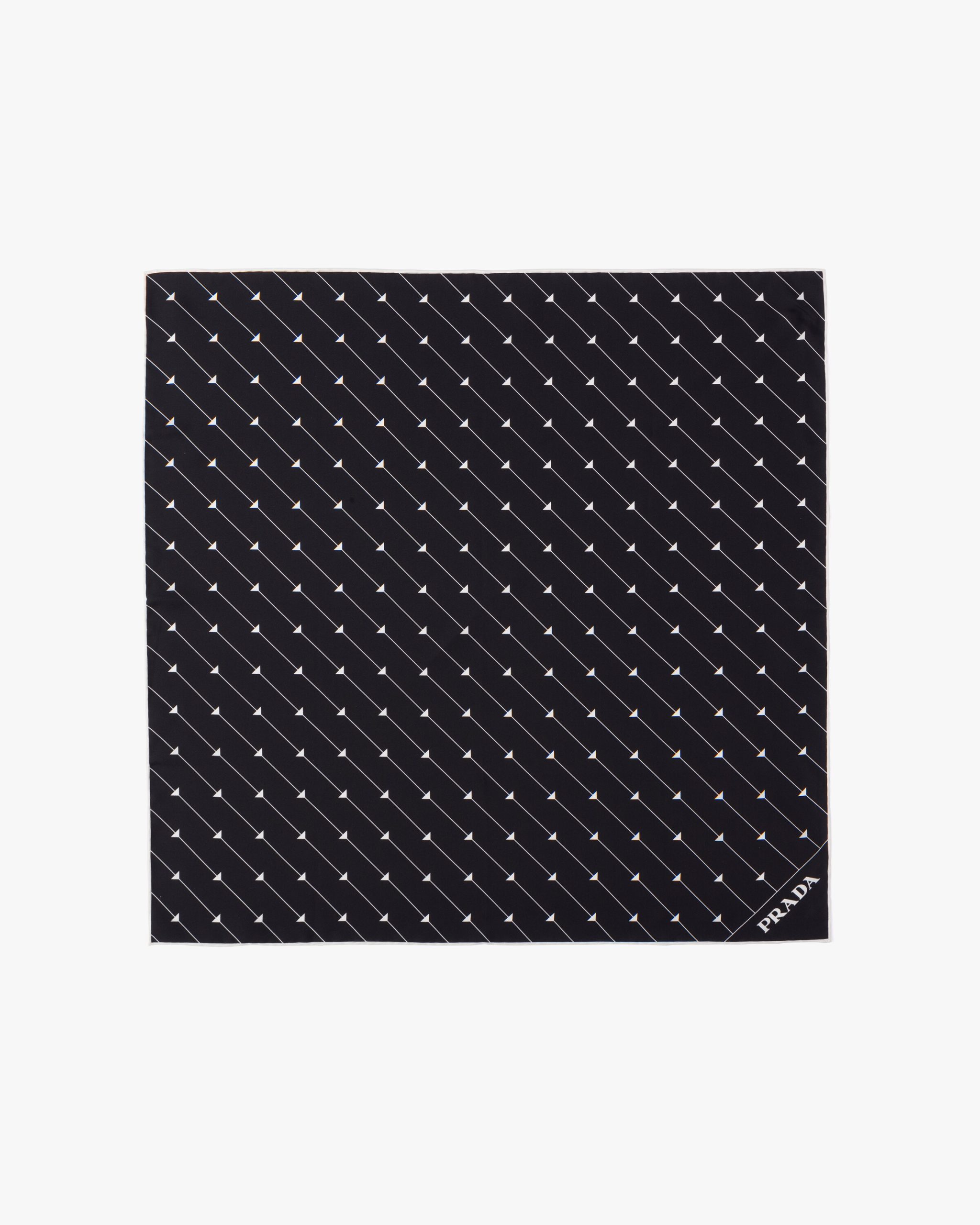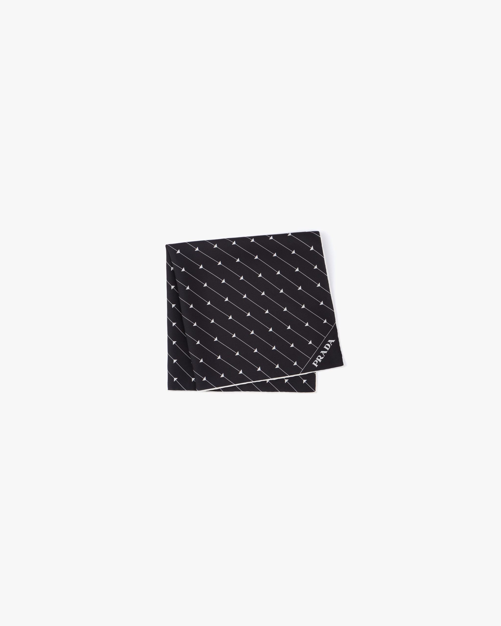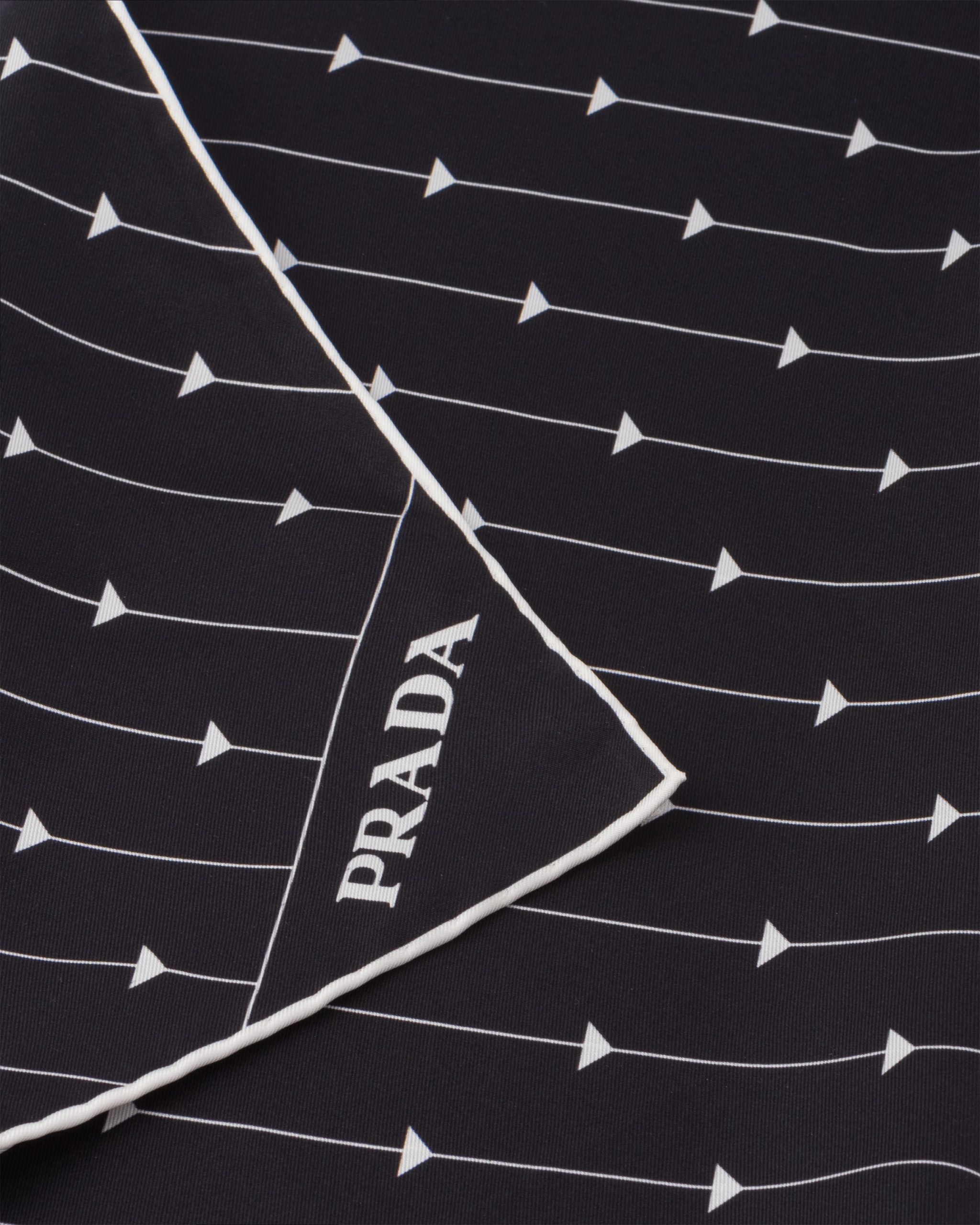 The triangle, Prada’s iconic logo2 since 1913, is reimagined in always new ways and is combined with narrow stripes in the delicate graphic pattern on this twill scarf.