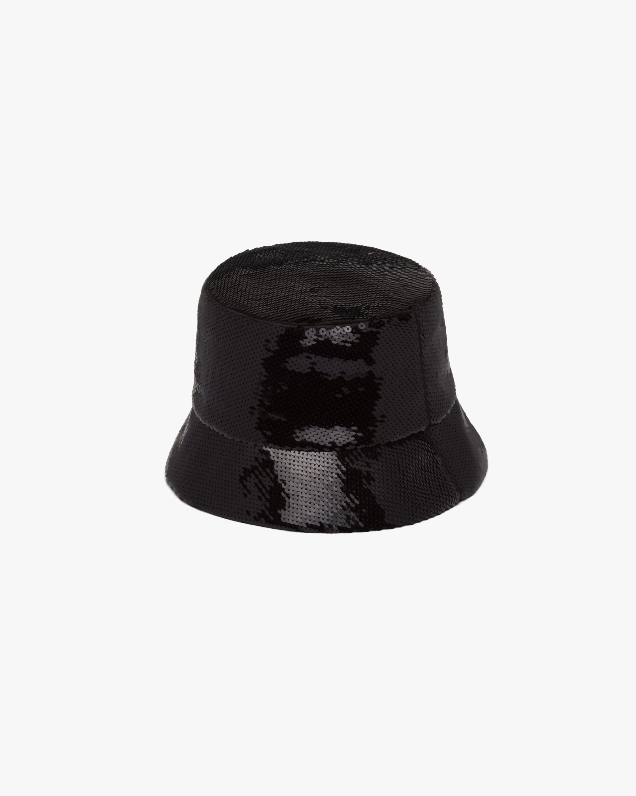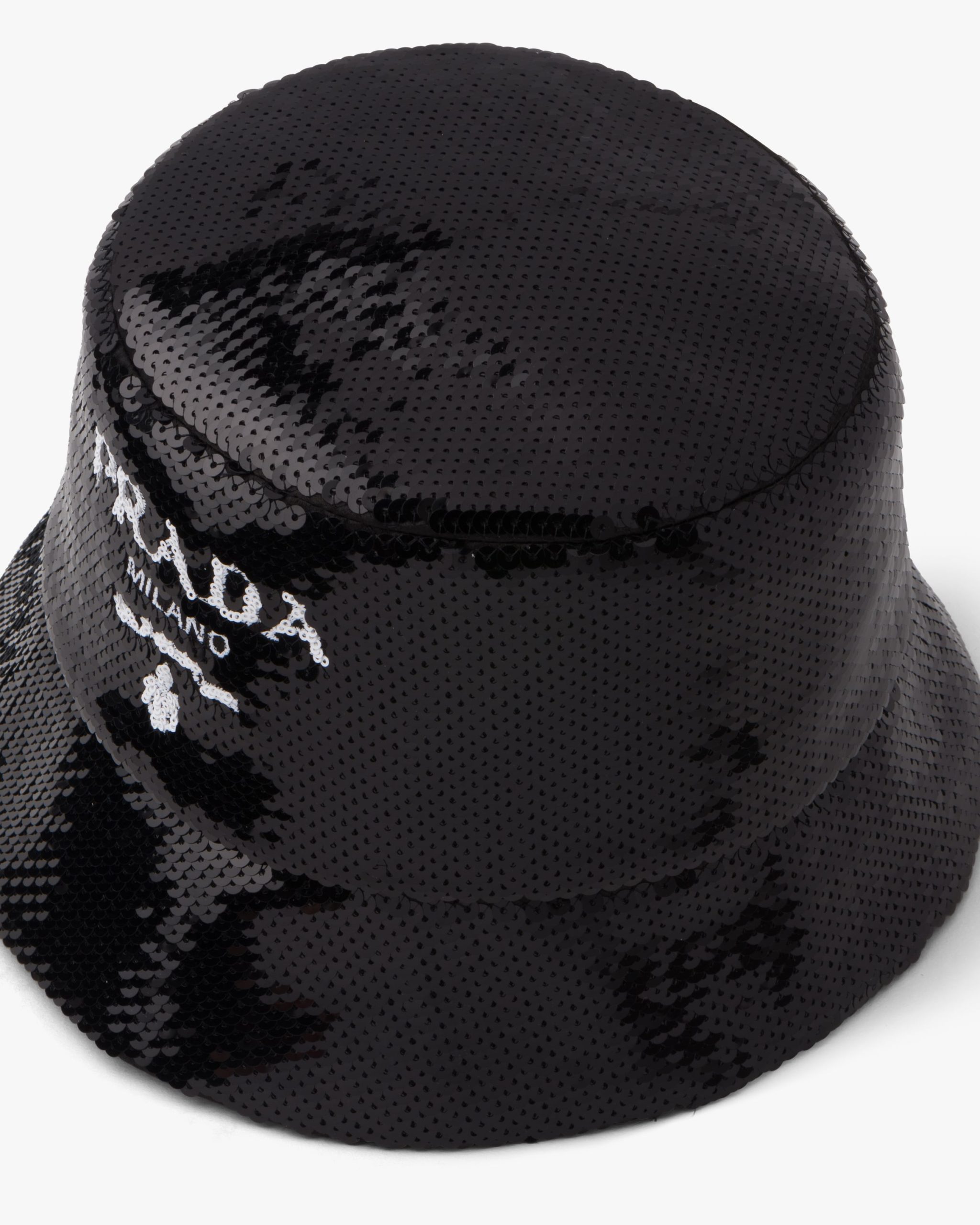 The bucket hat, an iconic accessory of Prada collectsions inspired by the streetwear world, is reimagined in a luxurious version, covered with all-over sequins that create plays of light and iridescent glimmers on the surface. The embroidered Prada lettering logo2 adds a contemporary touch.