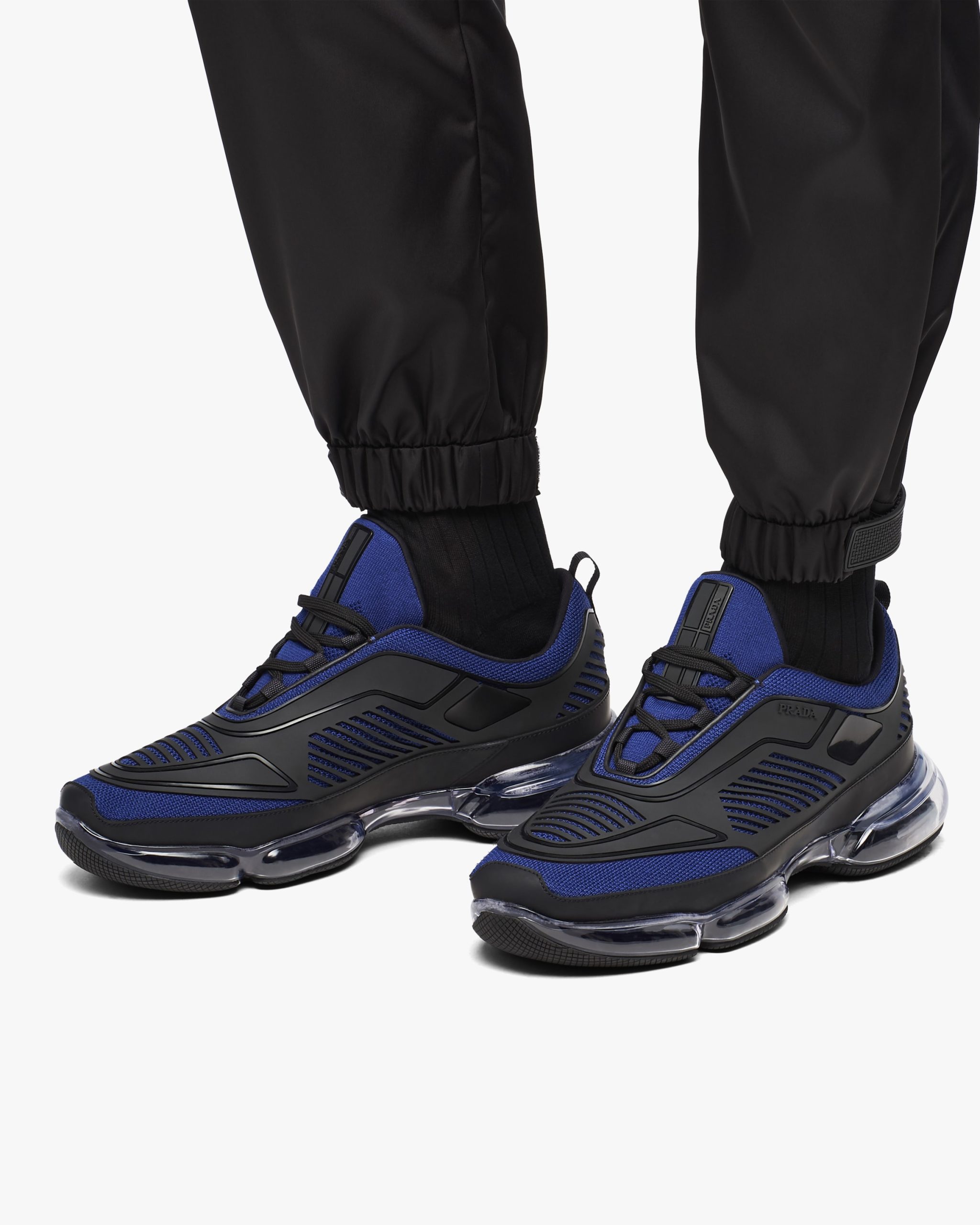 These Prada Cloudbust Air sneakers in knit fabric with 3D appliqu?s have a futuristic design. The chunky sole is made of transparent rubber.