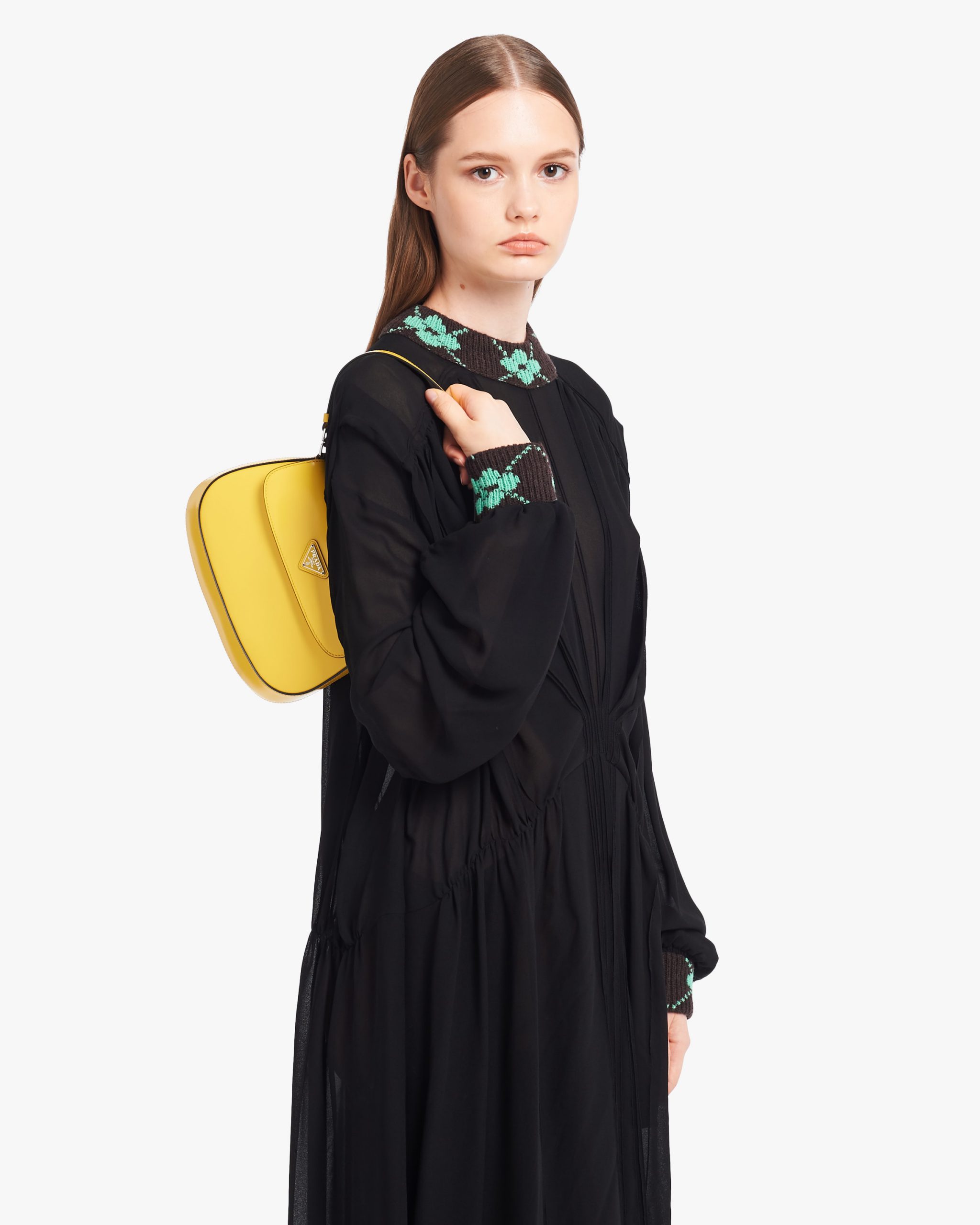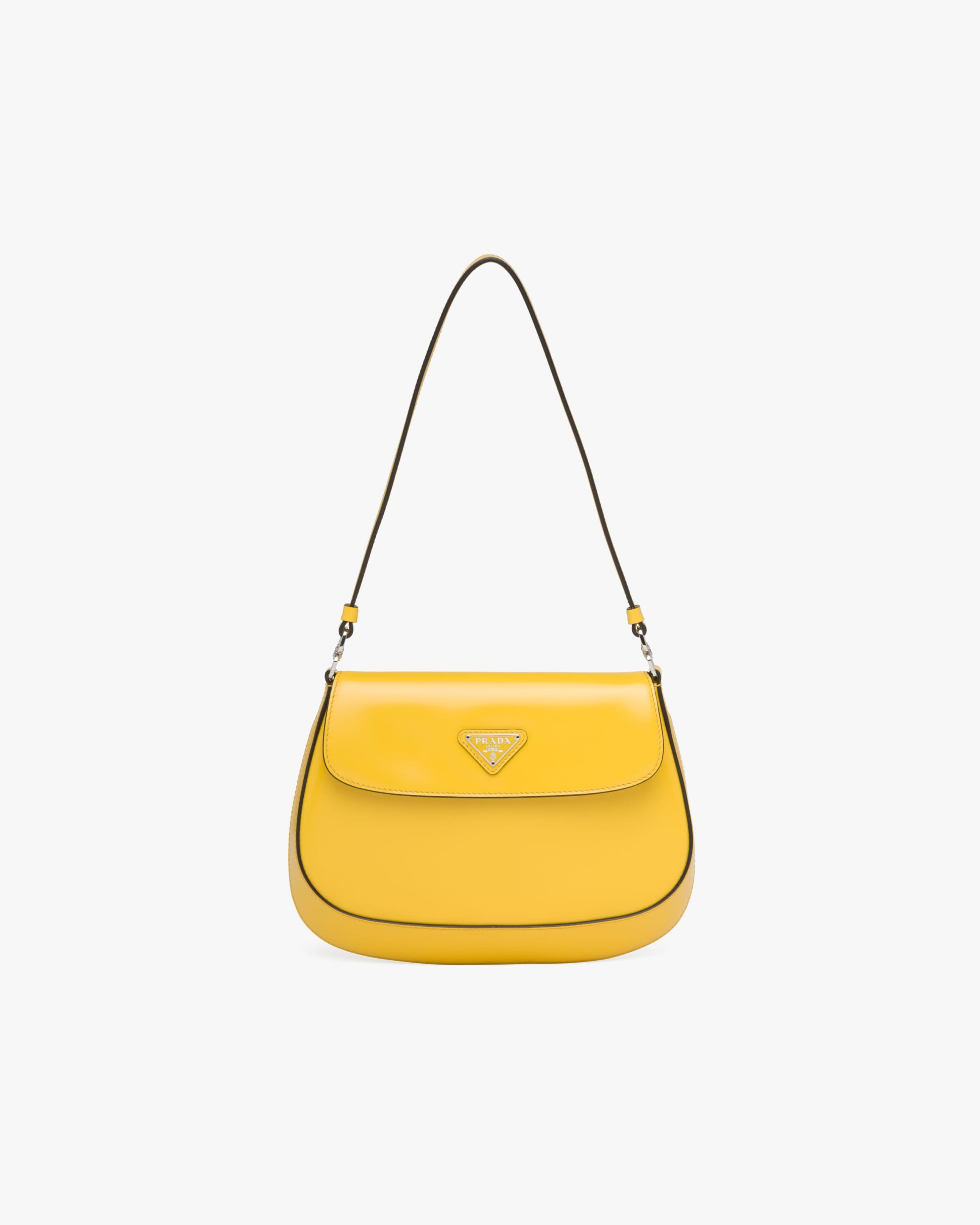 Bright Yellow N Prada Cleo brushed leather shoulder bag with flap