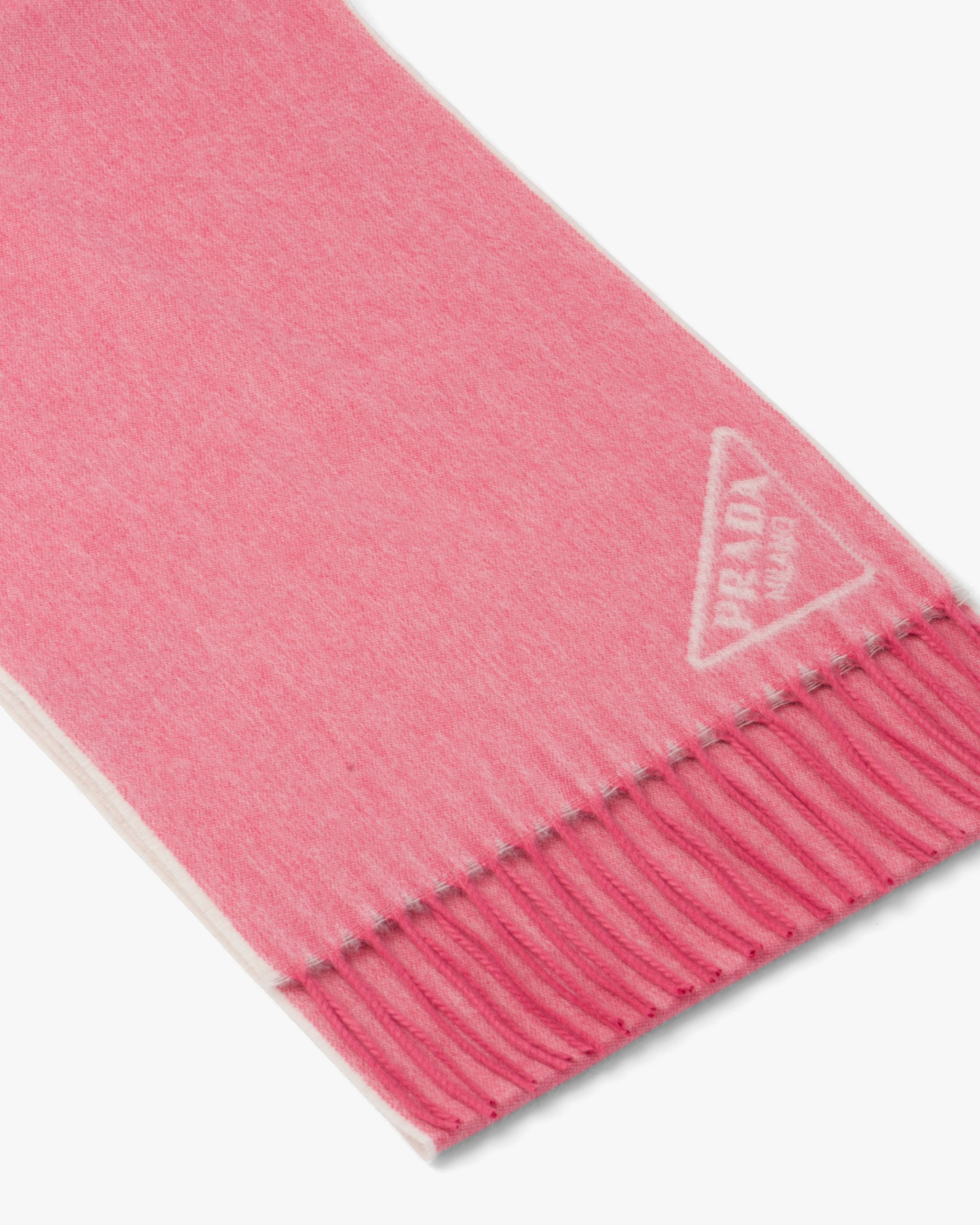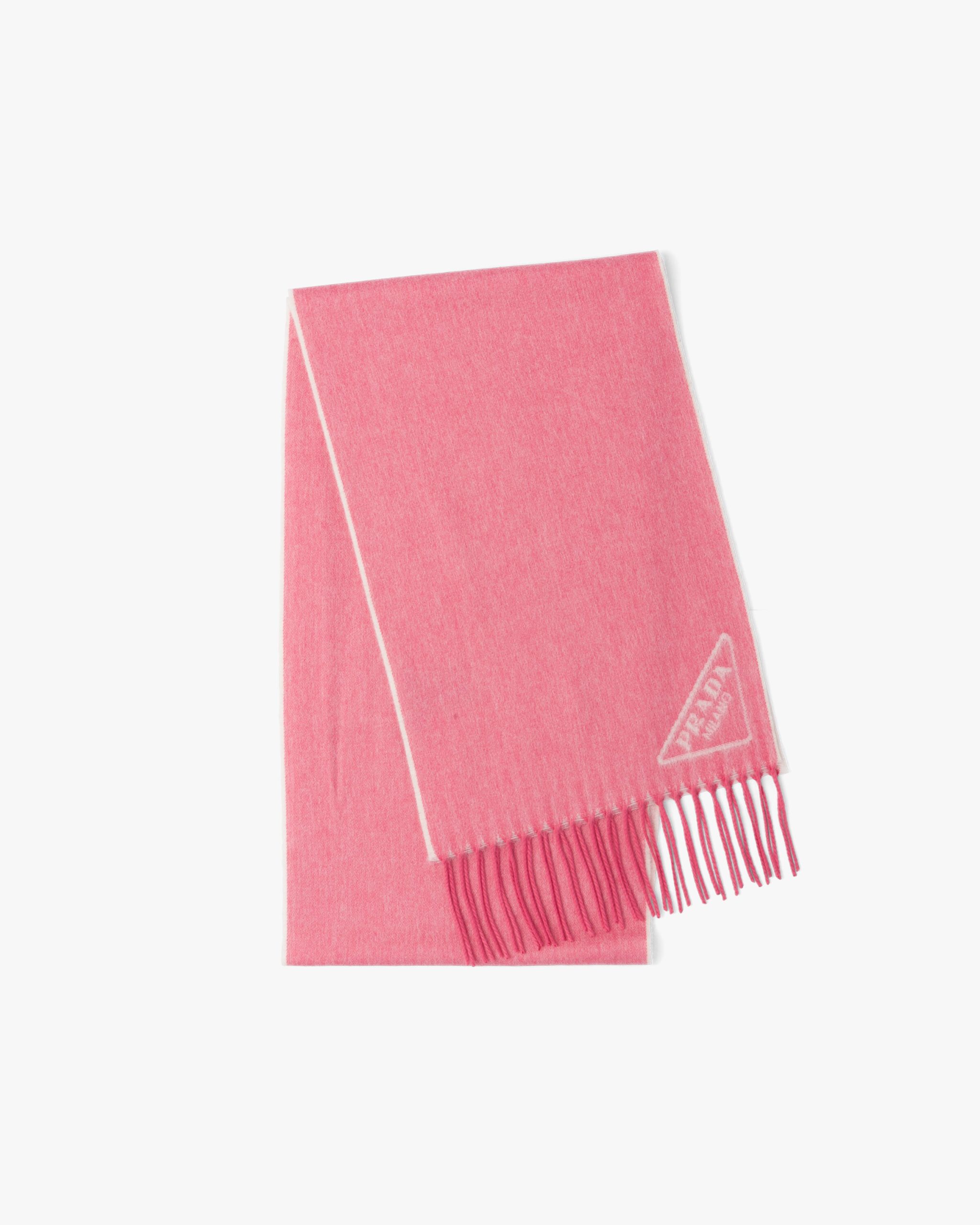 This soft double cashmere scarf is enhanced by Prada’s iconic lettering logo2 reinterpreted as a jacquard detail. Fringe trim on the edge completes the accessory.
