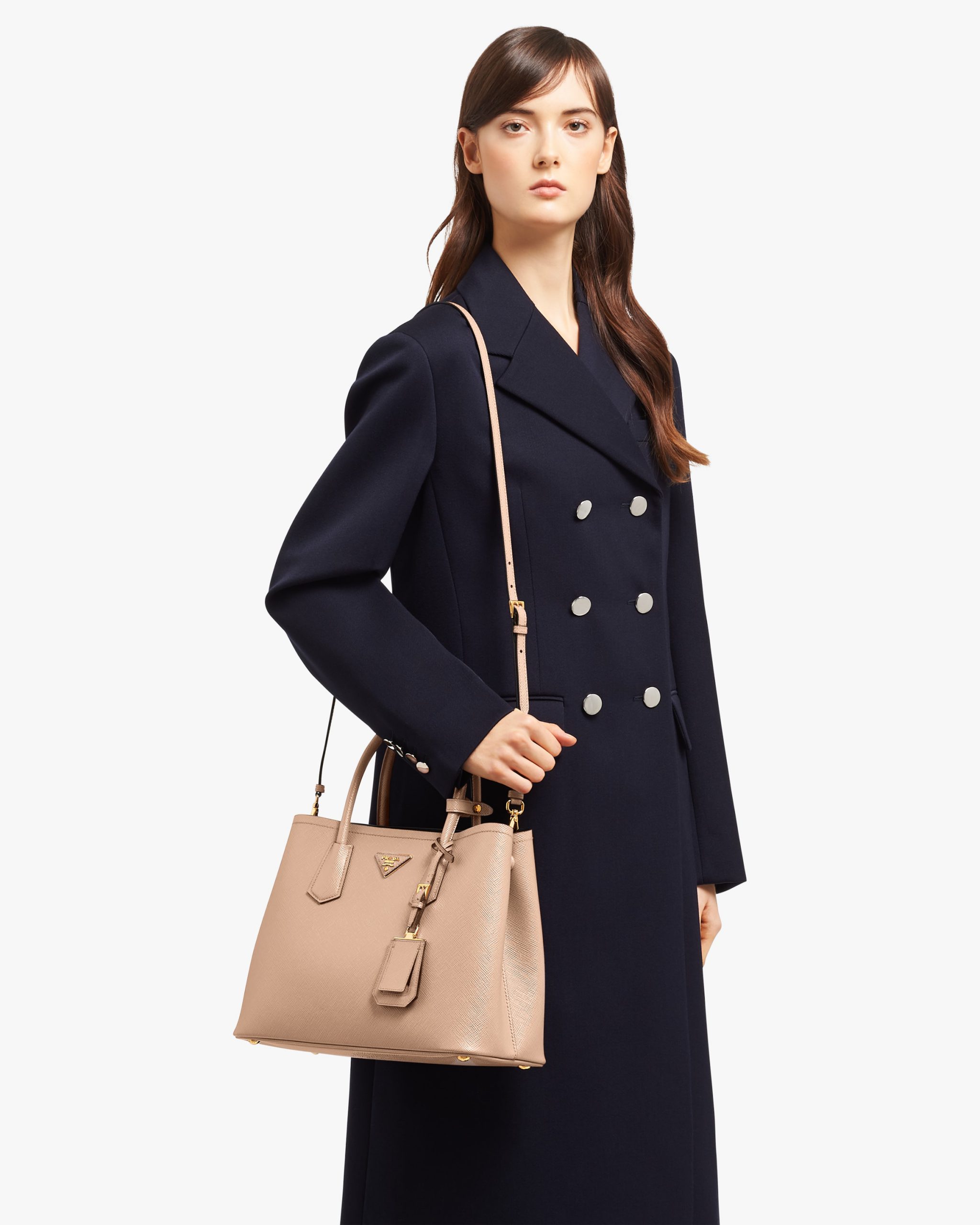 Cameo/black Medium Saffiano Leather Double Prada Bag