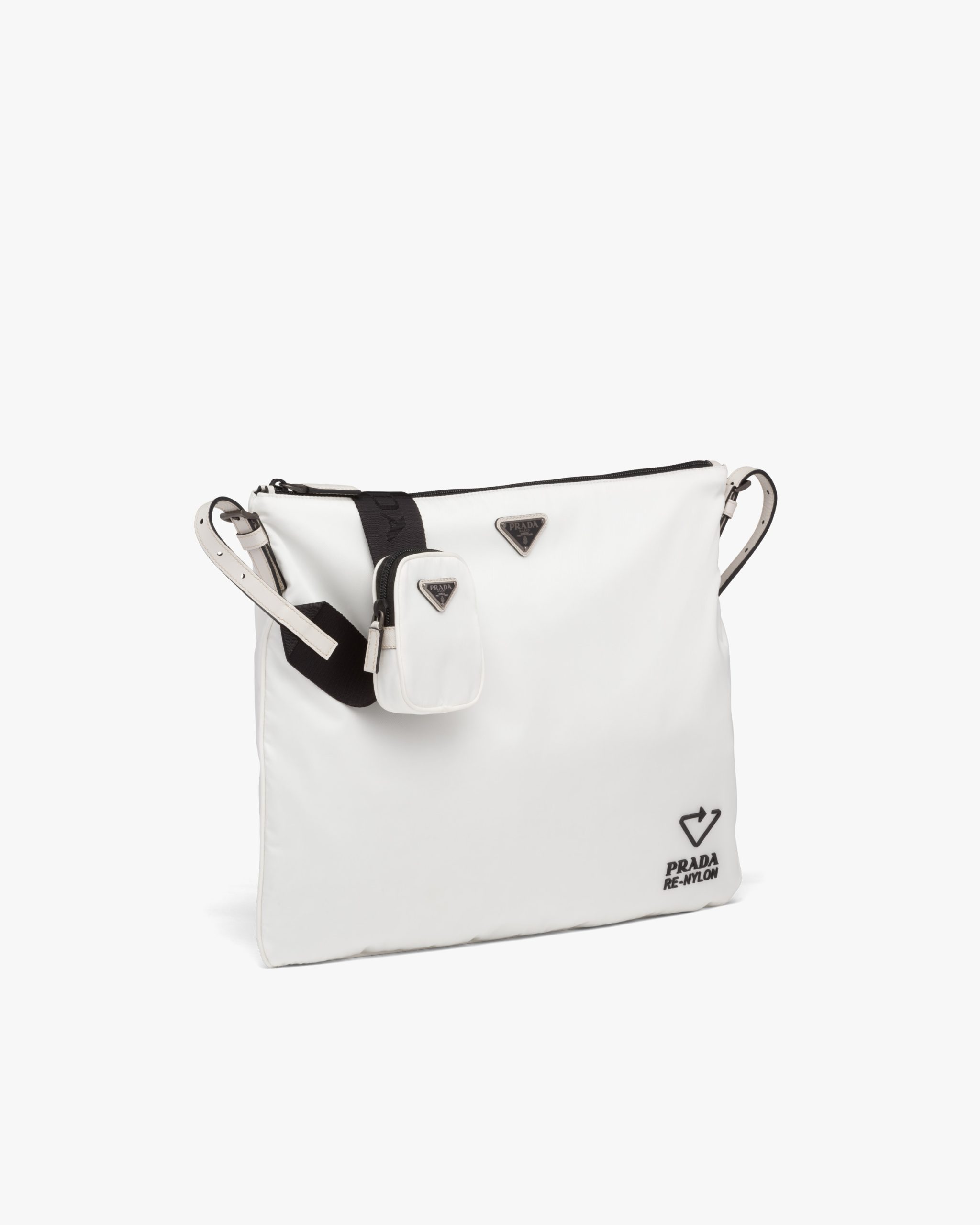 Chalk White Re-Nylon and Saffiano leather shoulder bag