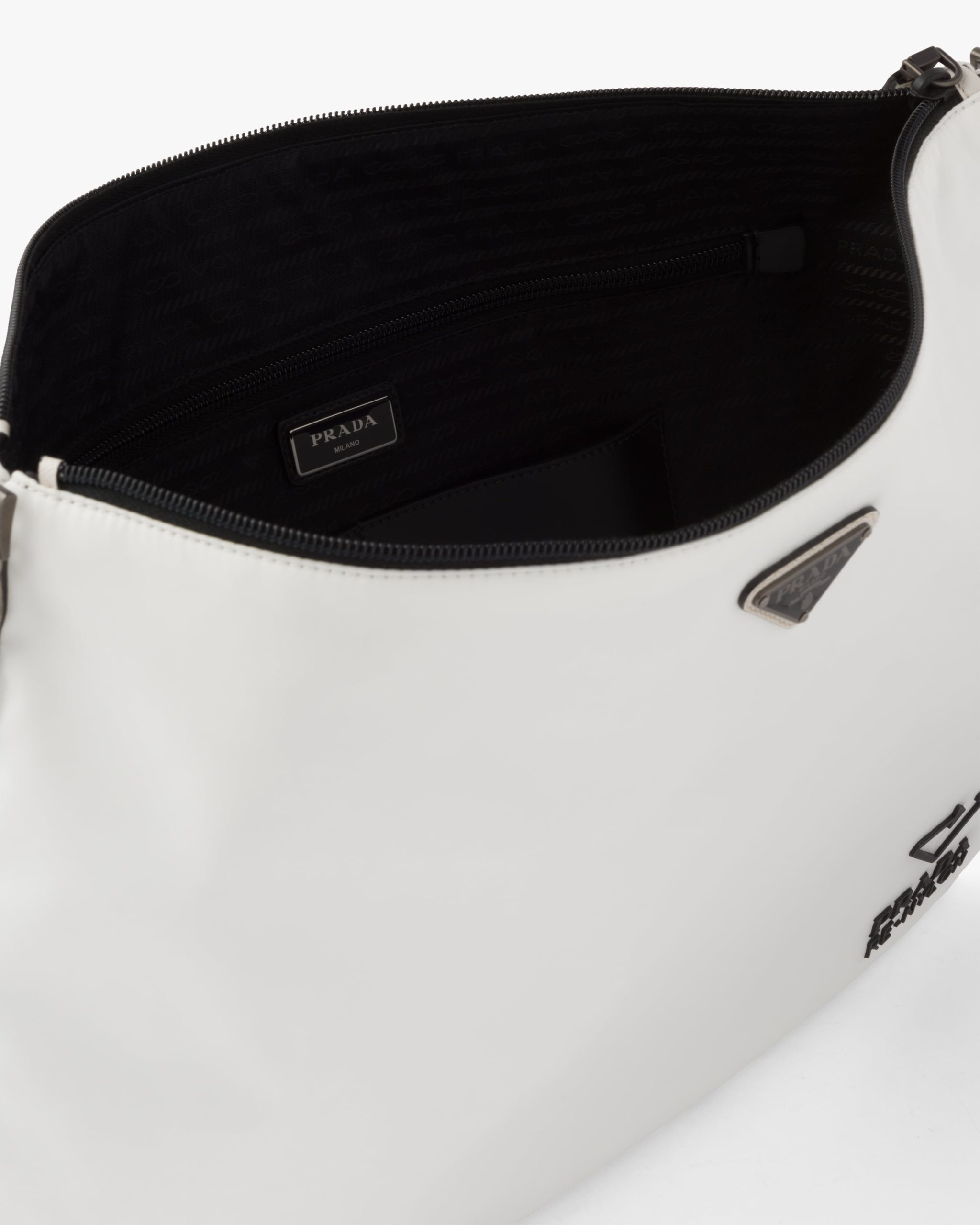 Be the first to review “Chalk White Re-Nylon and Saffiano leather shoulder bag”