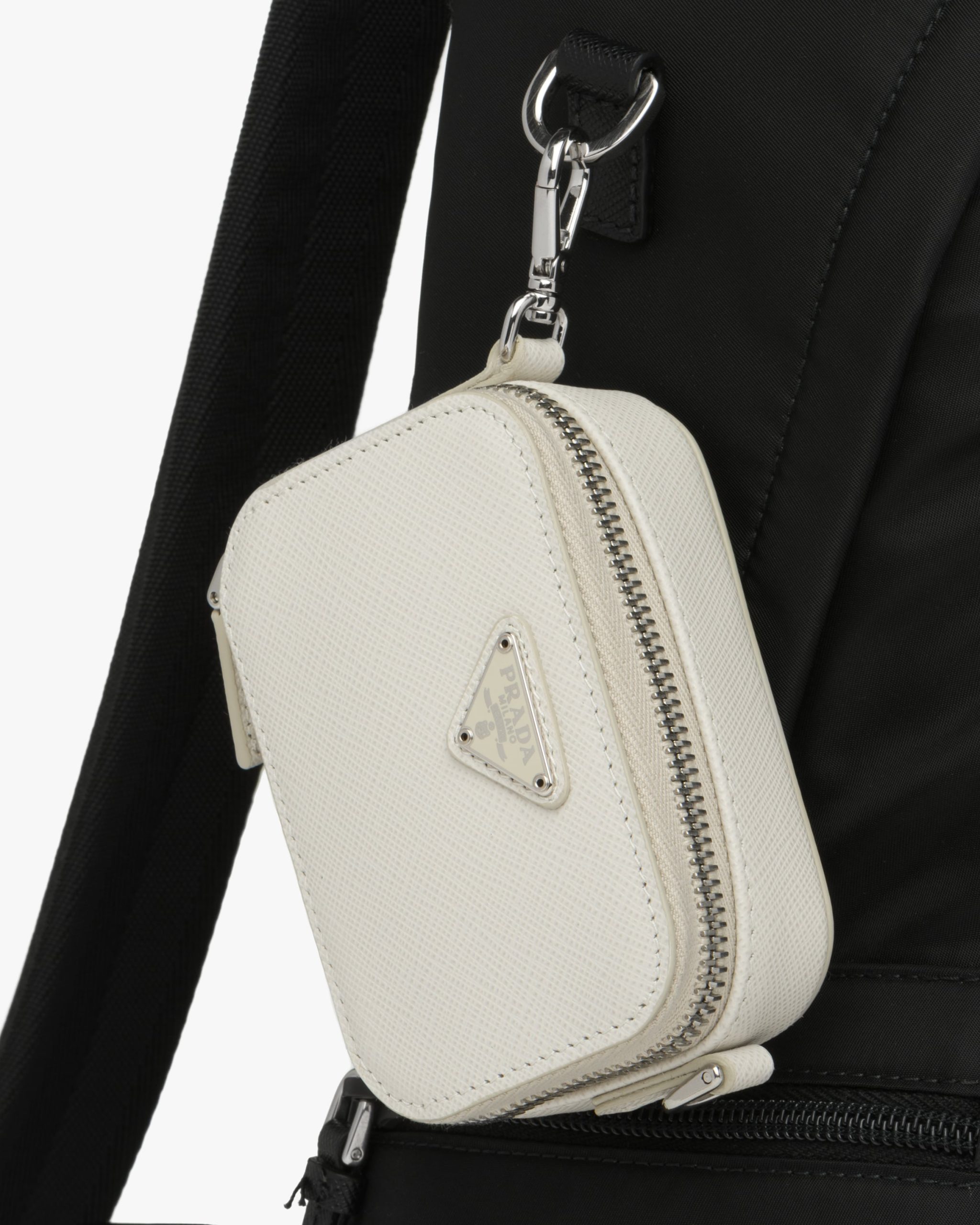 Chalk White Saffiano Leather Mini Pouch