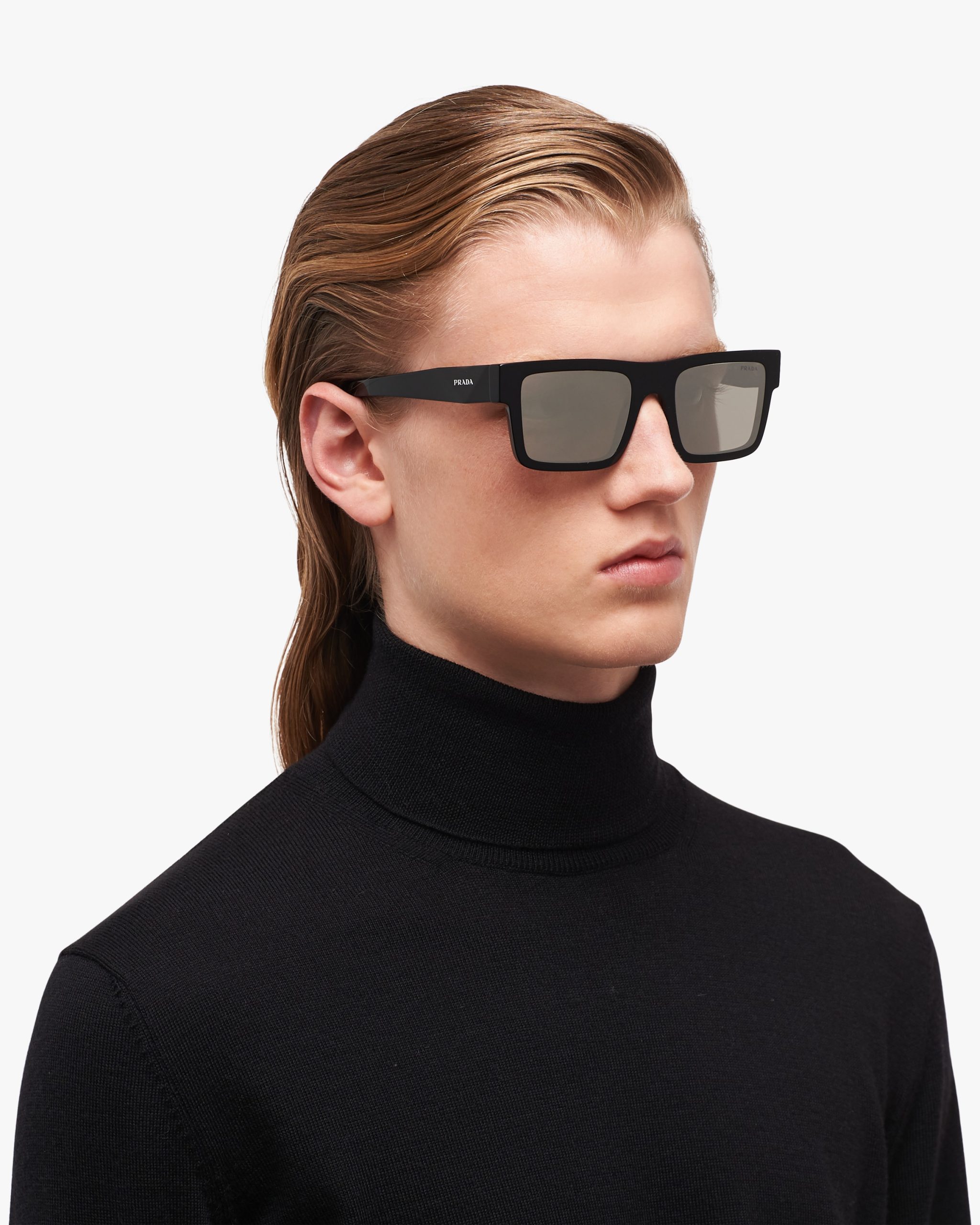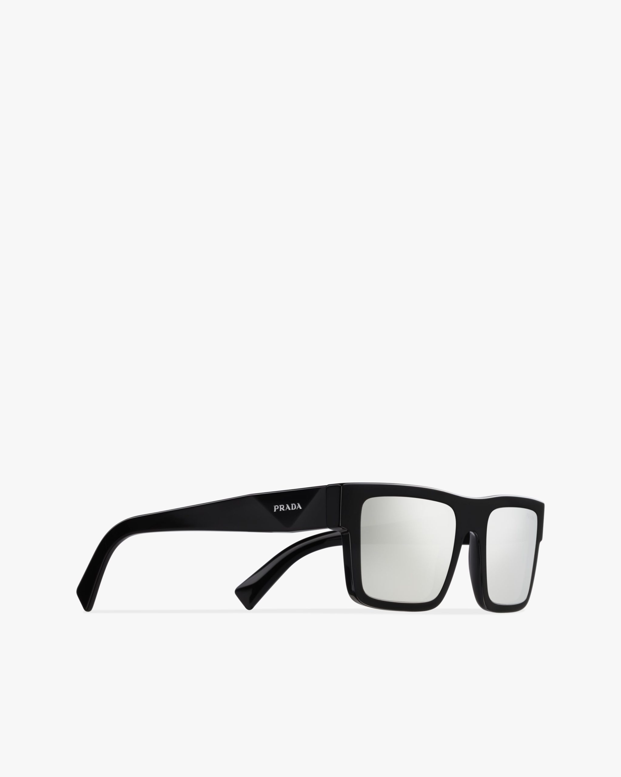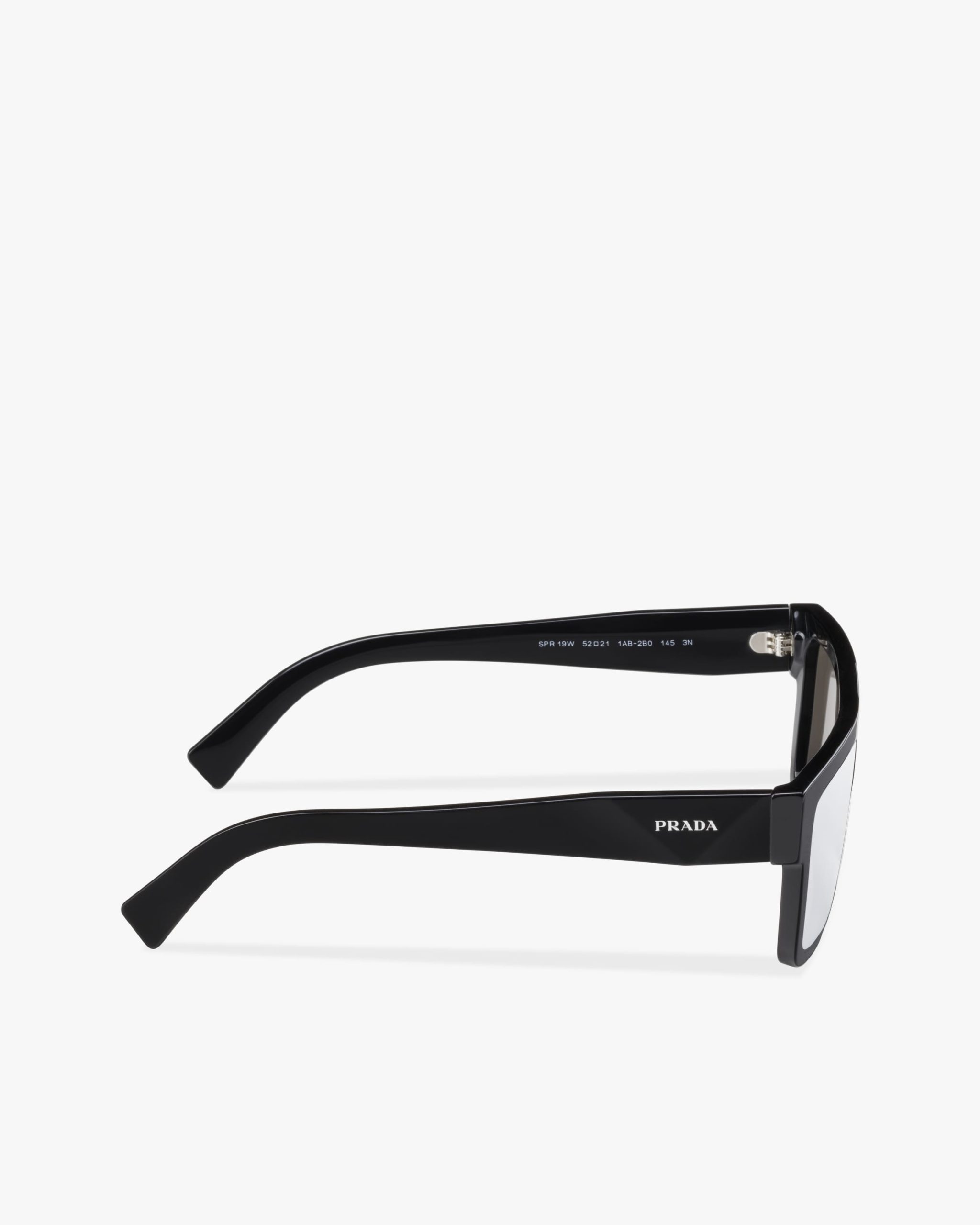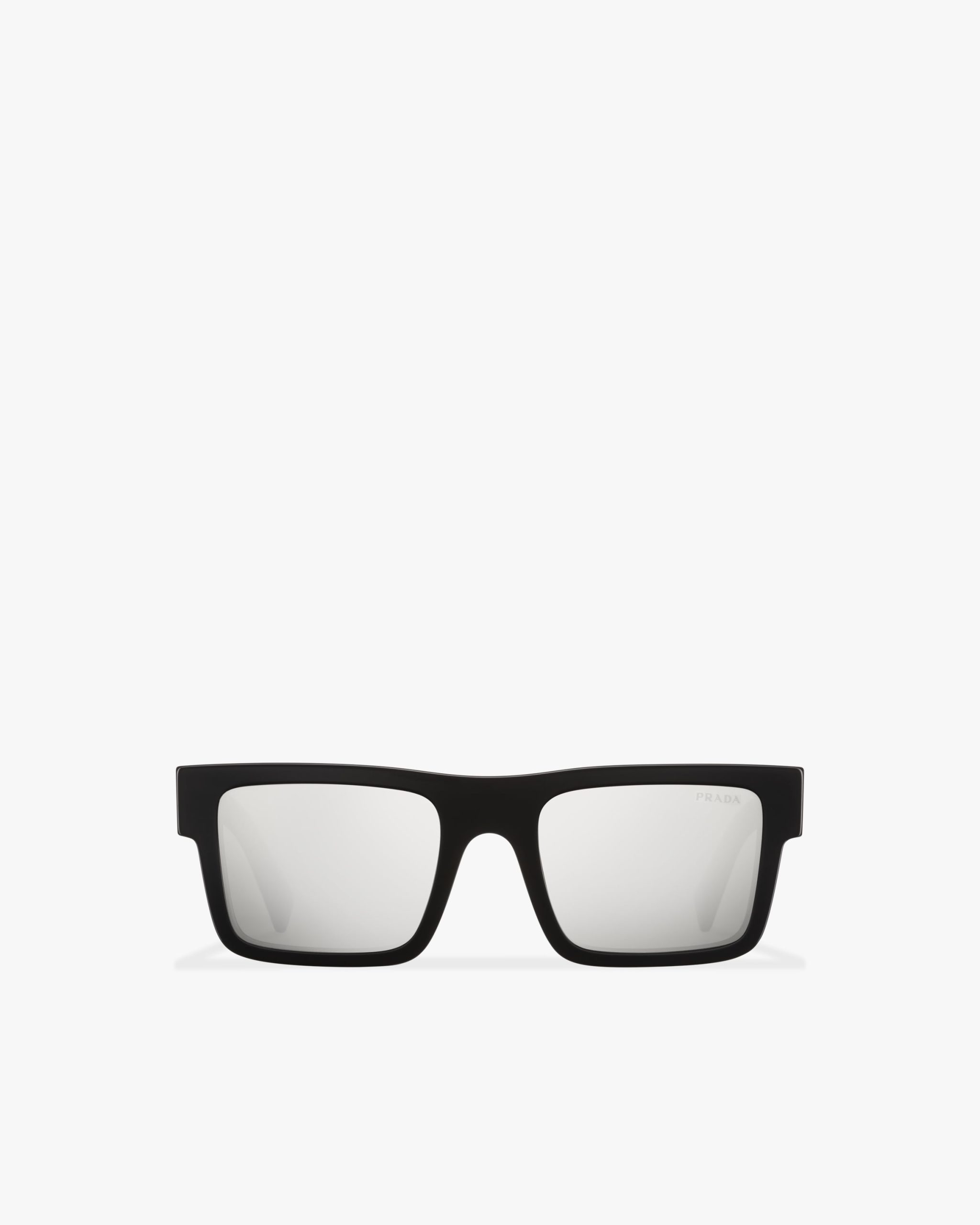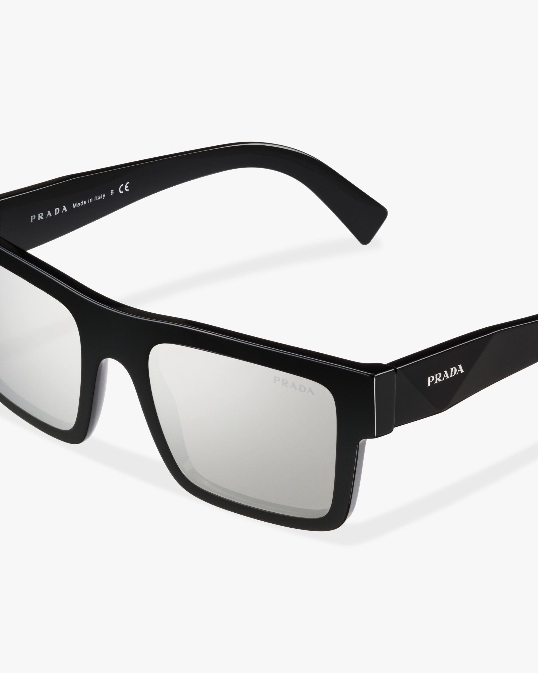 Rectangular acetate sunglasses characterized by strong lines and elegant, contemporary charm. The temples made with a sophisticated three-dimensional process are decorated with the Prada lettering logo2.