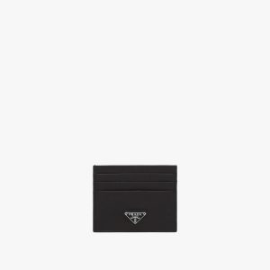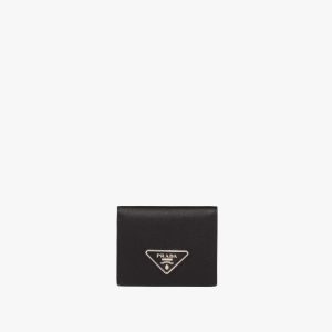Lining in a contrasting color details this calf leather wallet. Adorned with gold-colored Prada lettering, it offers three card slots, one bill compartment and one coin compartment with a snap closure.