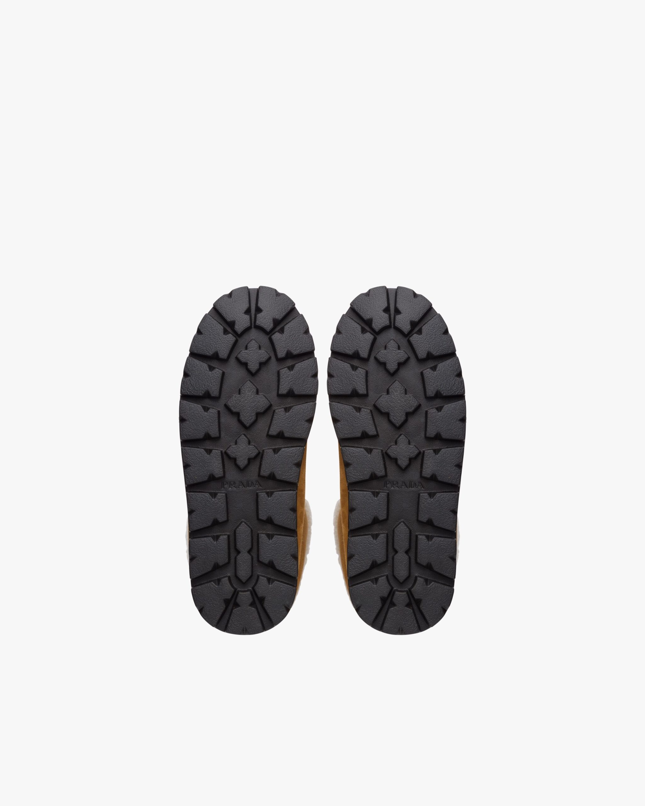 Freedom of movement, comfort, and coziness are key concepts in the design of these sheepskin booties characterized by their sporty lines and innovative materials. A rubber triangle logo2 is a signature touch.