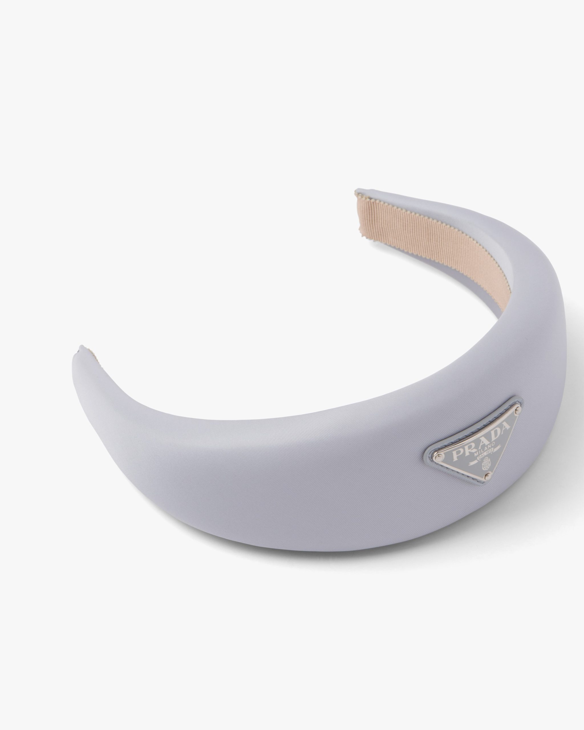 This oversized puffy headband, a sophisticated and emblematic accessory of Prada collectsions, is made of Re-Nylon: regenerated nylon yarn (ECONYL?)produced from recycled, purified plastic trash collectsed in the ocean, fishing nets and textile waste fibers.