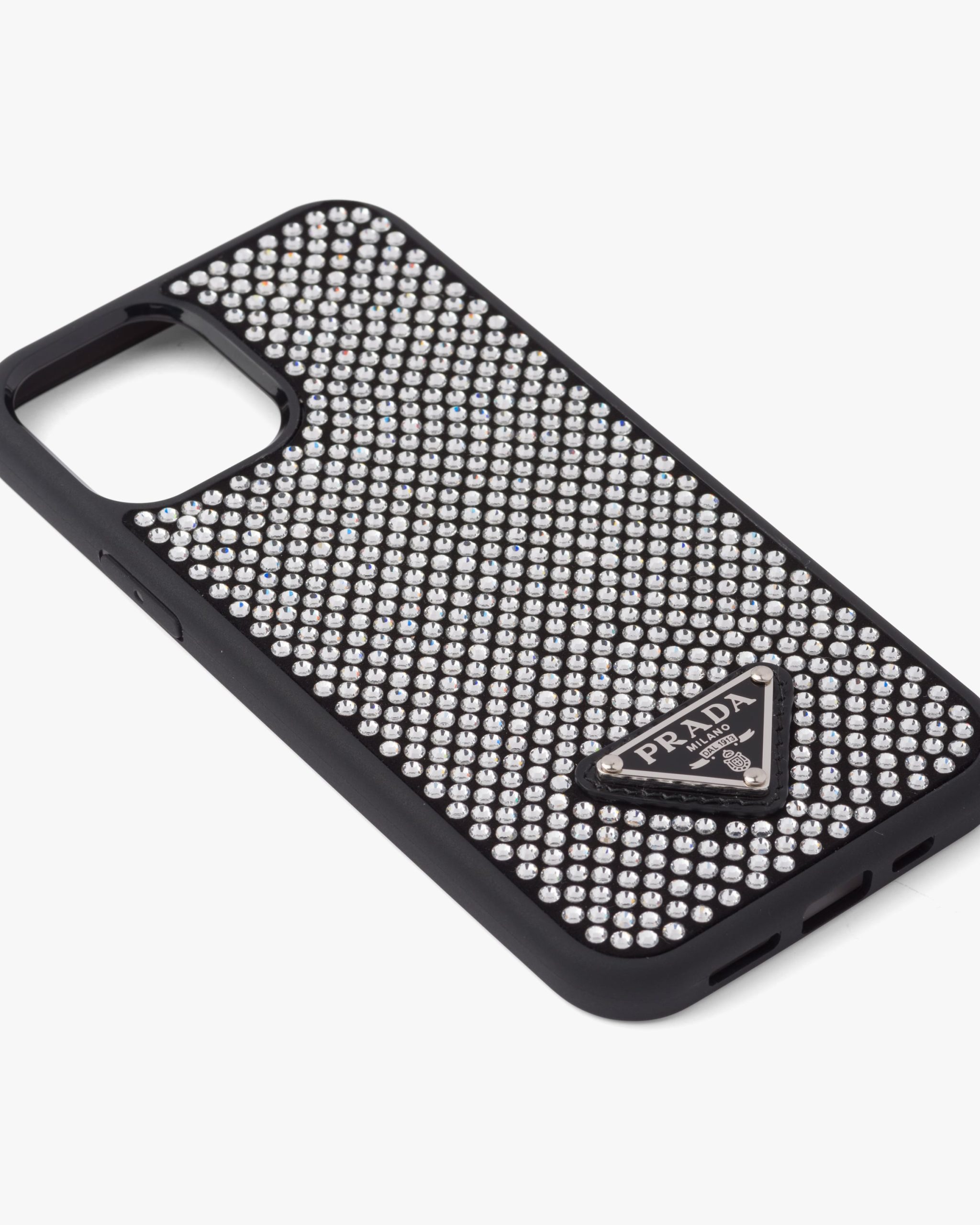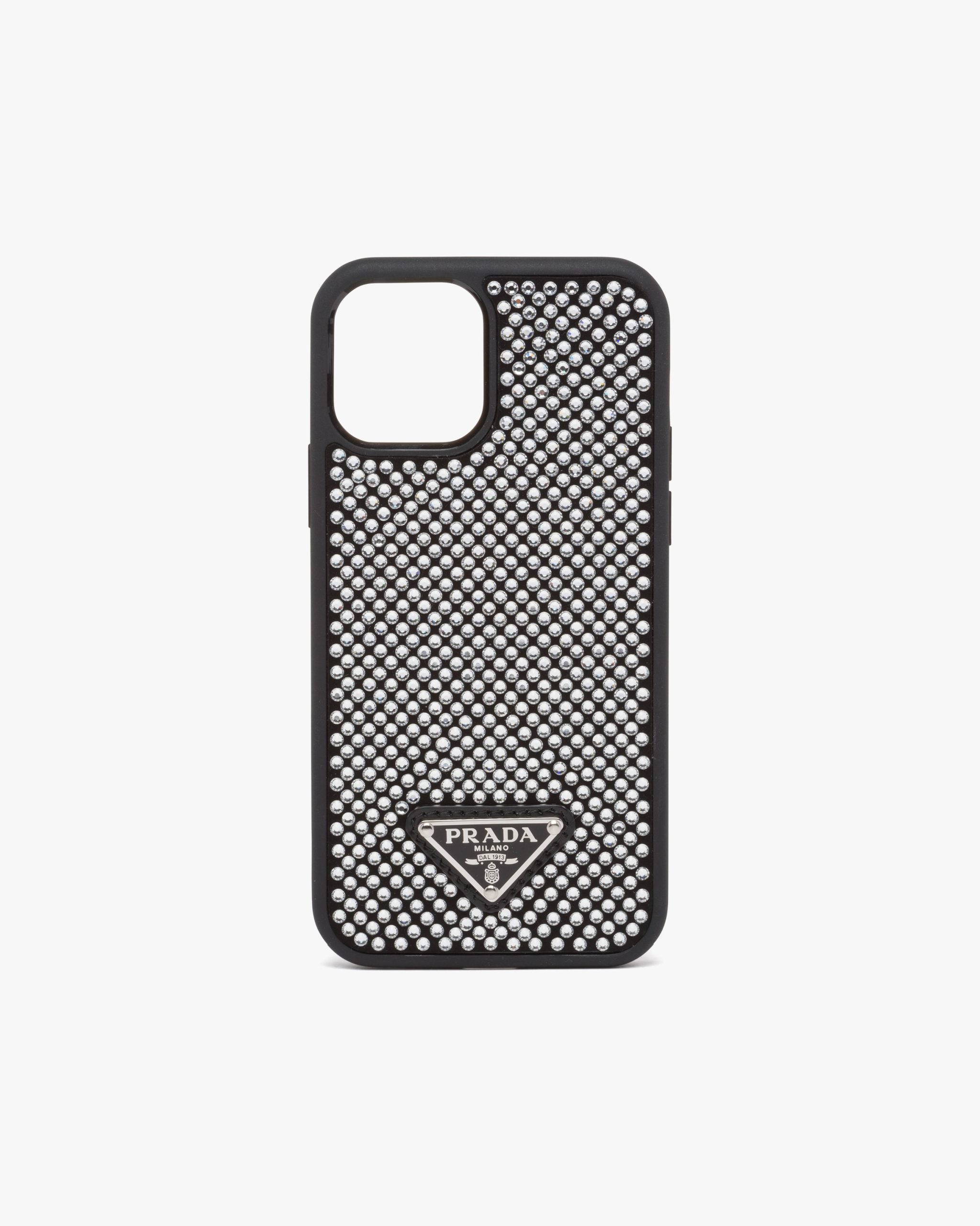 This iPhone 12 and 12 Pro cover with luminous accents and precious allure features an all-over crystal embellishment for a dazzling effect. Prada’s iconic enameled metal triangle logo2 completes the accessory.