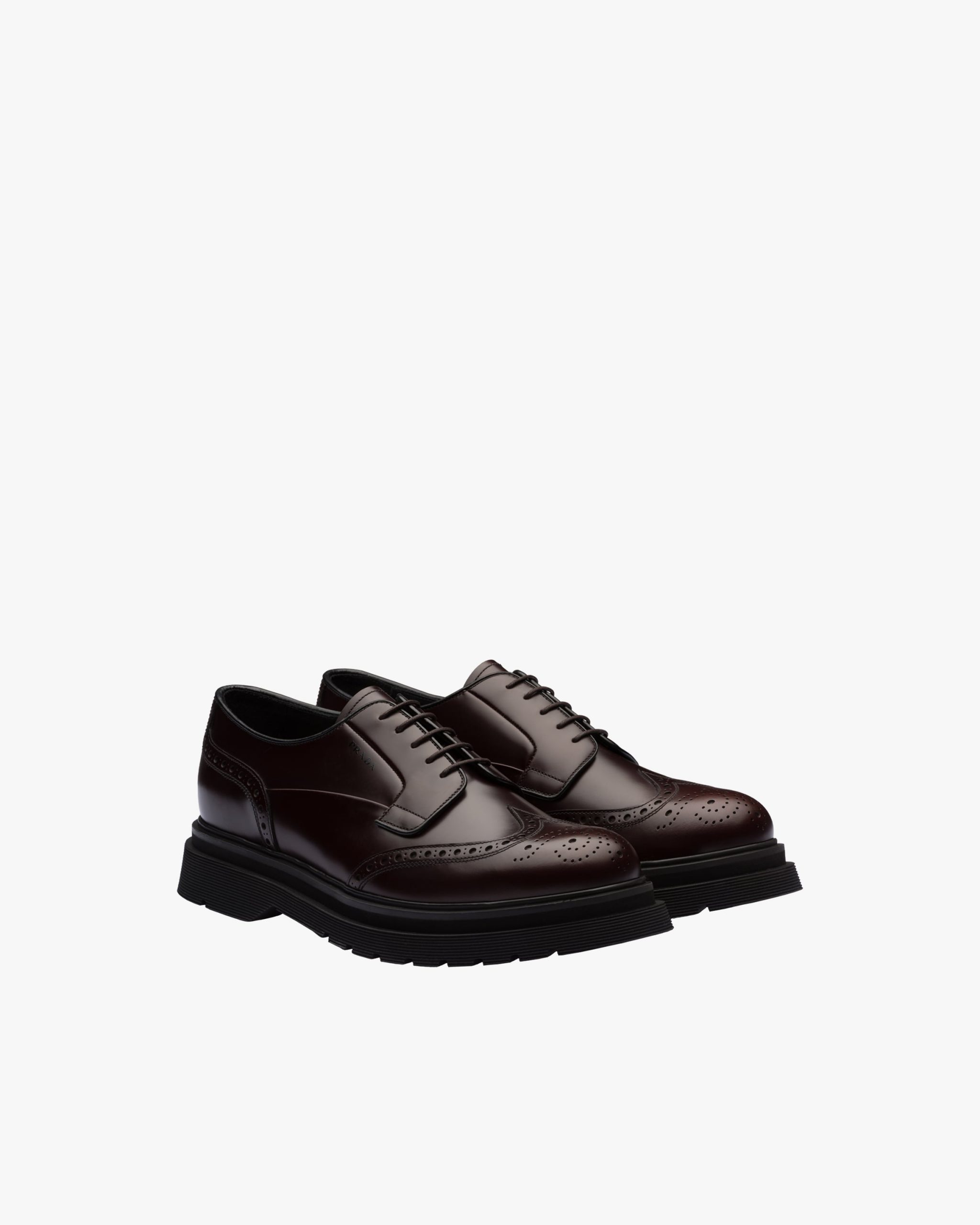 These classic brushed calf leather laced derby shoes are reinterpreted with the wingtip motif on the upper. The light rubber sawtooth sole emphasizes its contemporary style.