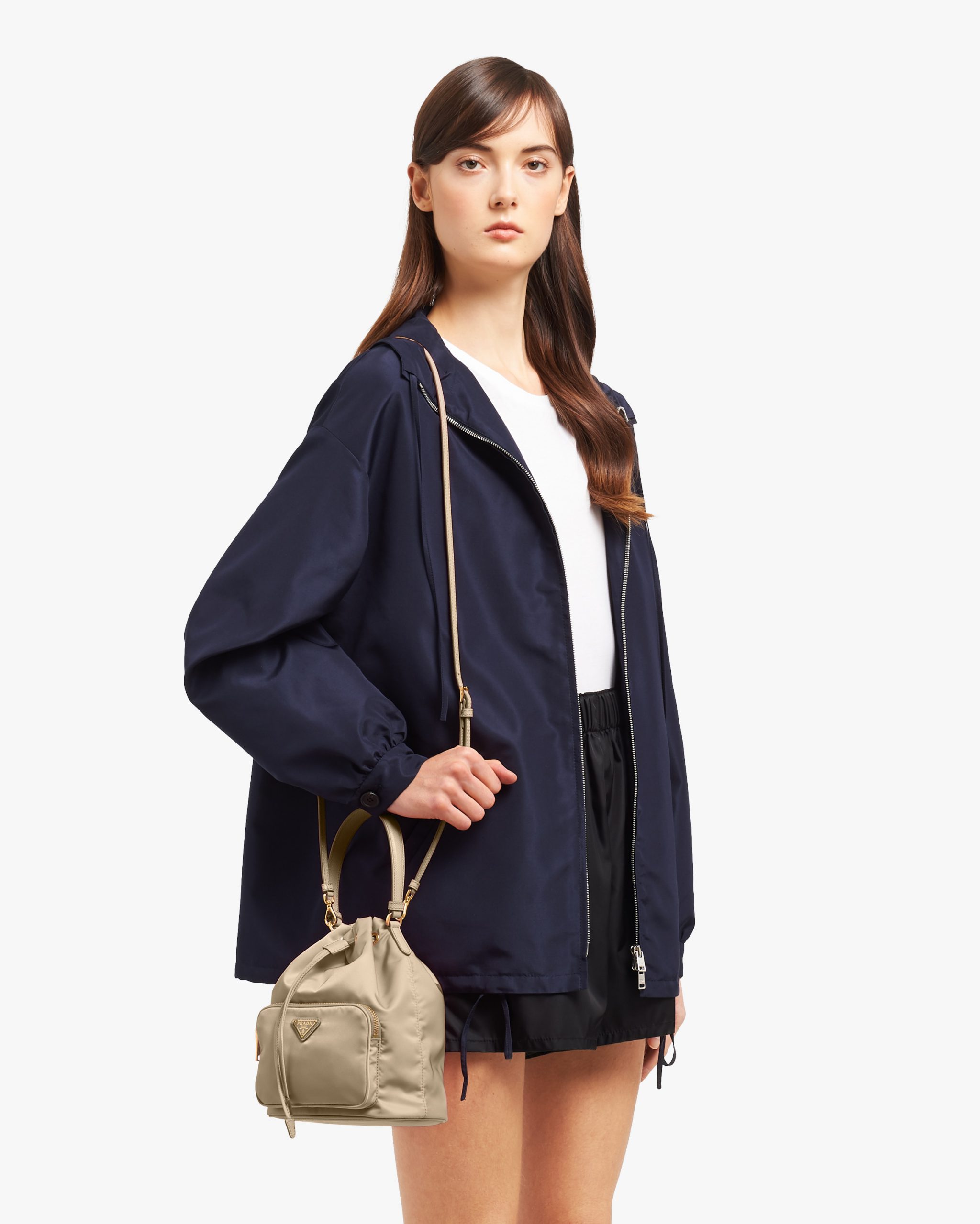 Defined by its drawstring closure, this shoulder bag is made of Re-Nylon: a regenerated nylon yarn (ECONYL?)produced from recycled, purified plastic trash collectsed in the ocean, fishing nets and textile waste fibers. The detachable adjustable shoulder strap makes it versatile, while the interior is lined with logo2-print fabric.