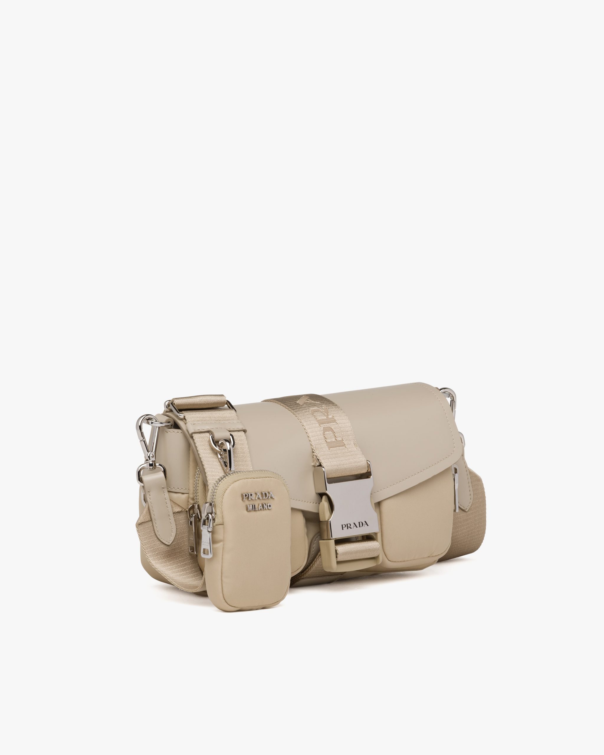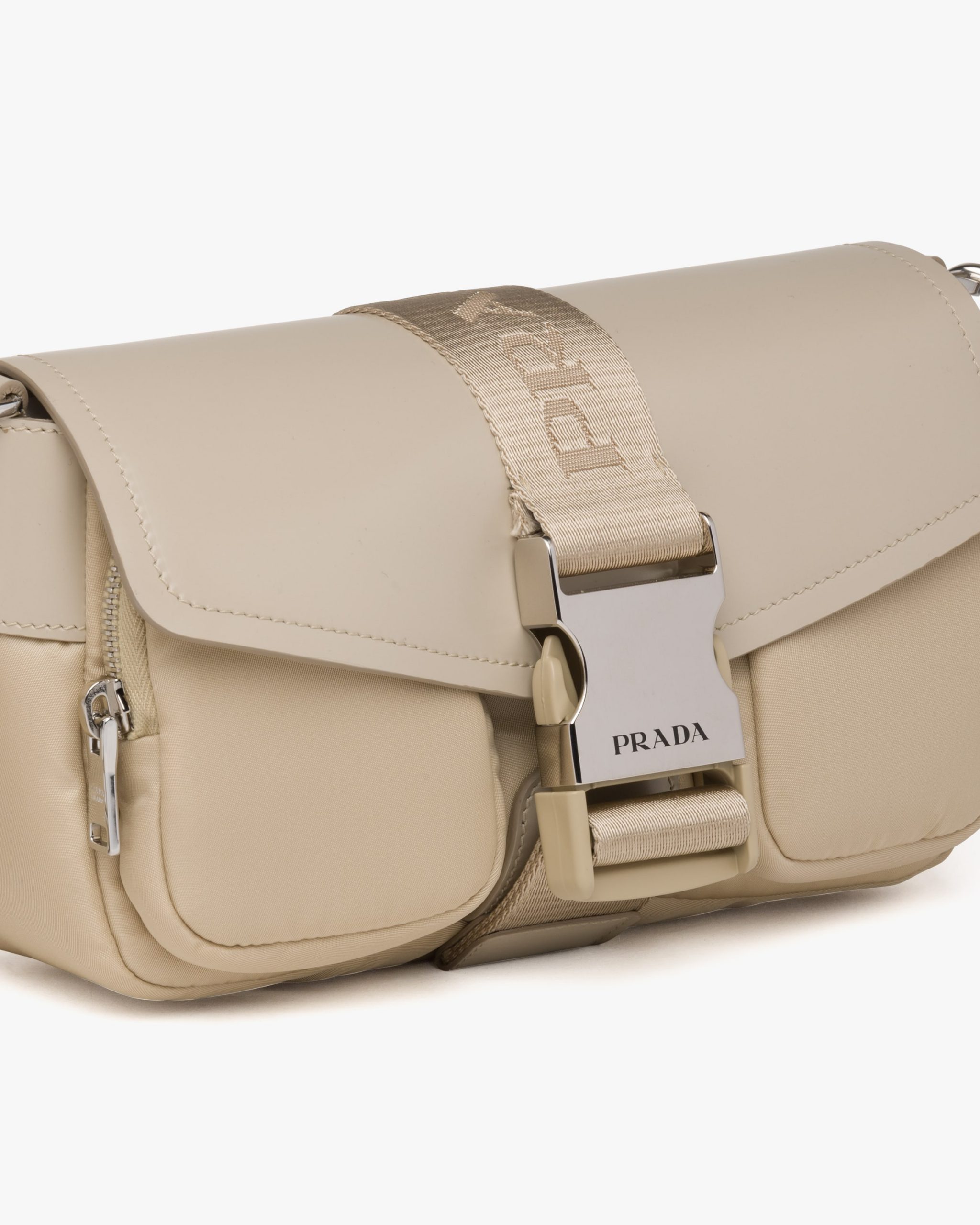 Desert Beige Prada Pocket nylon and brushed leather bag