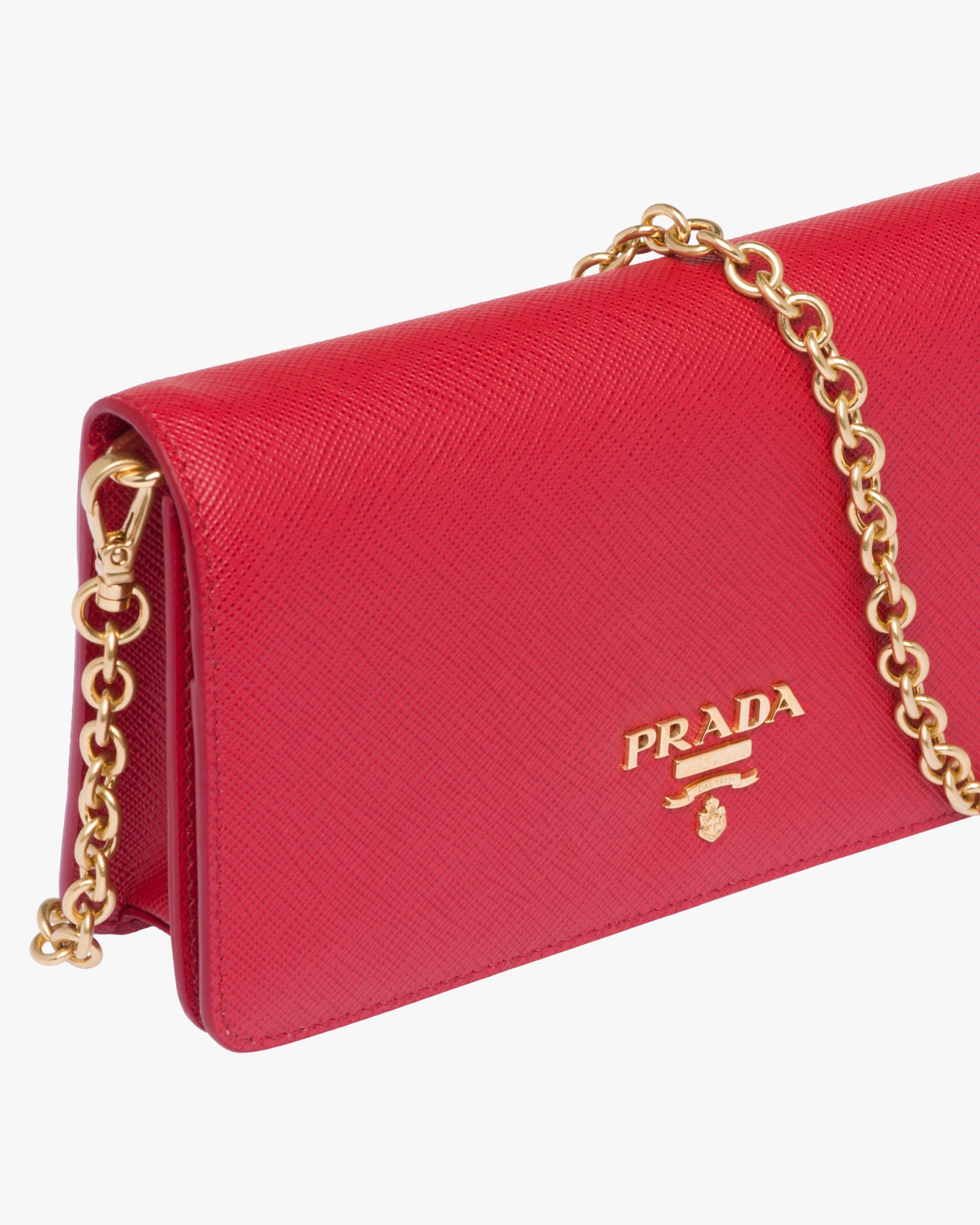 Refined and with a minimal design, this Saffiano leather mini-bag has a detachable chain shoulder strap.