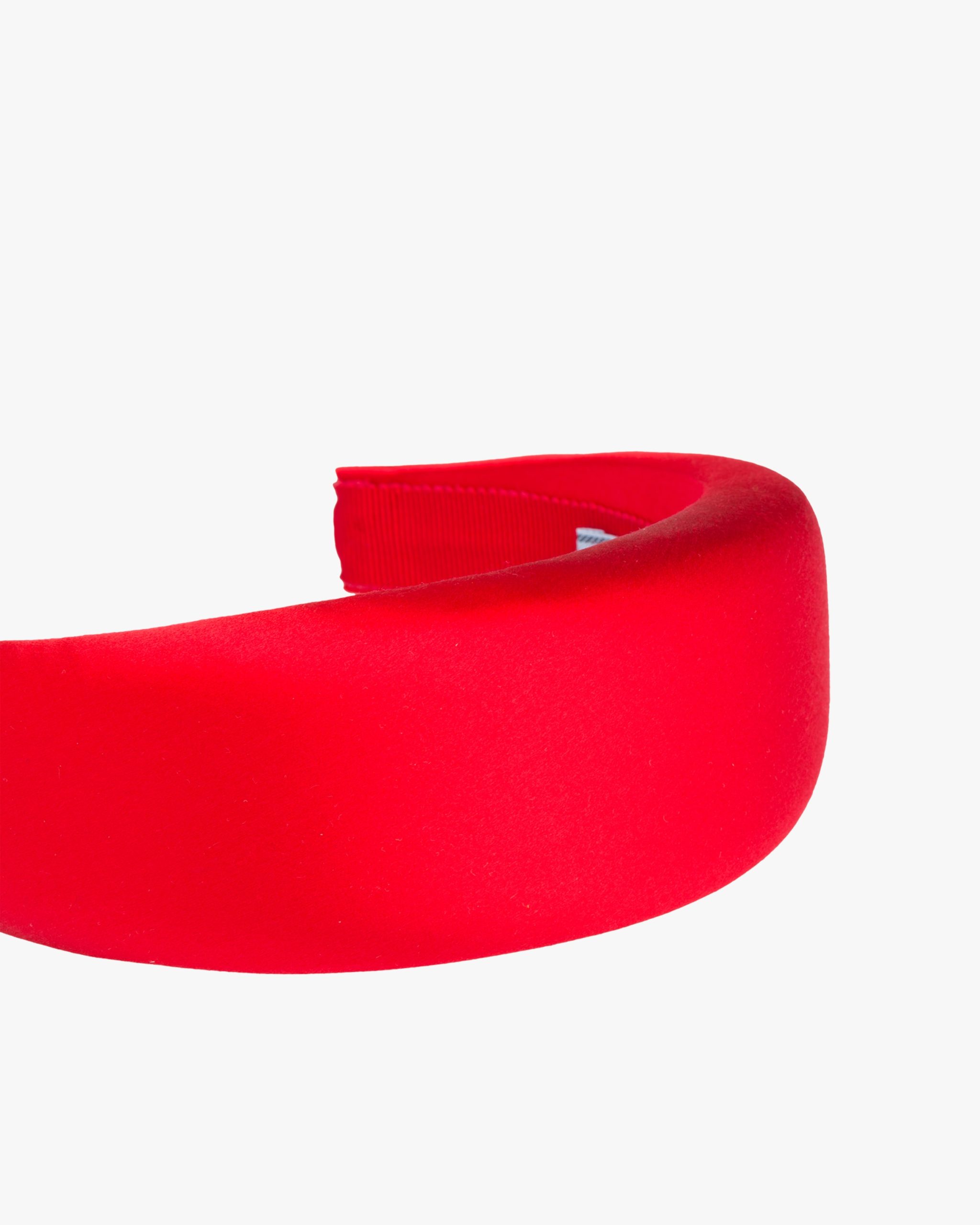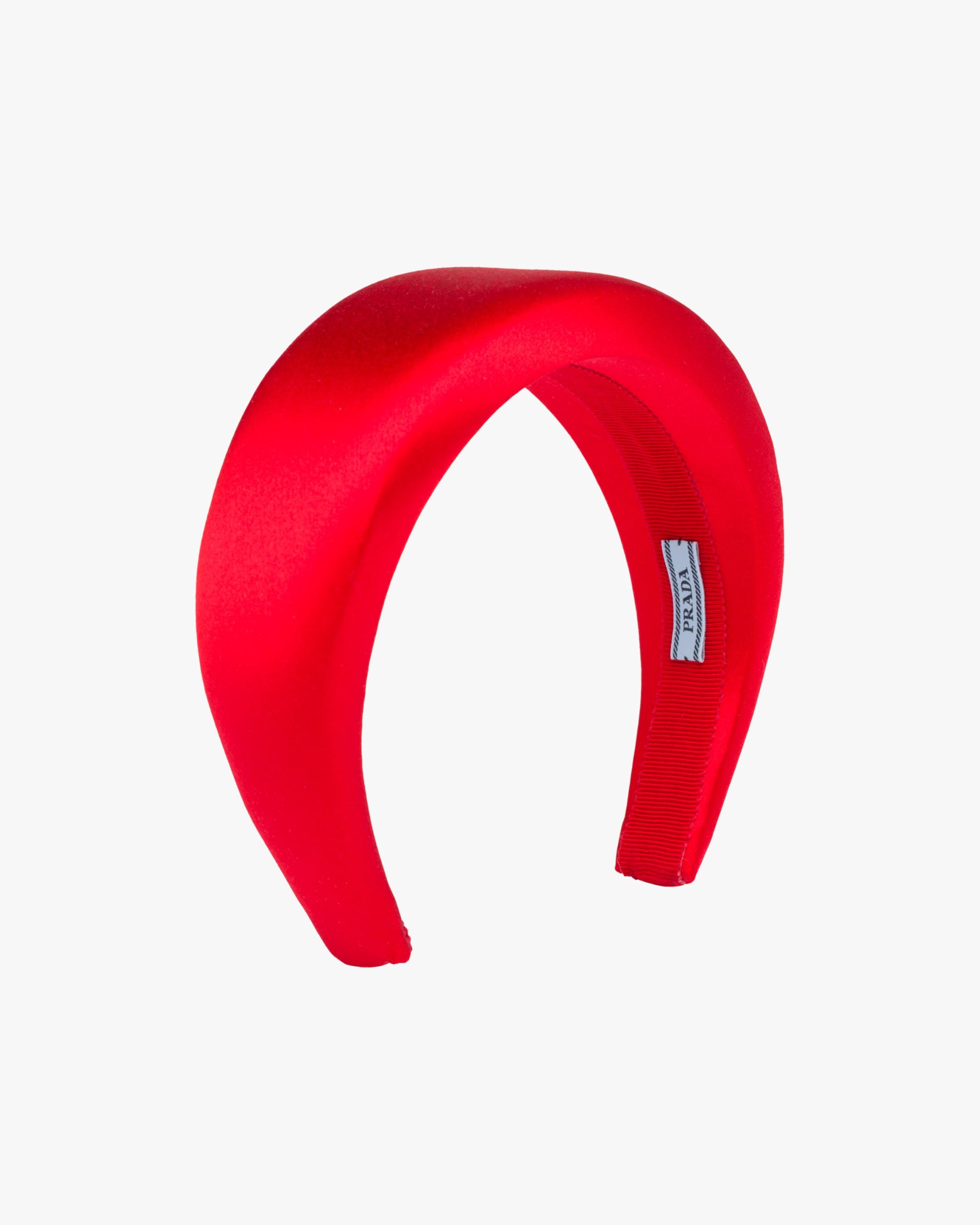 This wide satin headband has a wraparound design that gives a refined touch to the look.