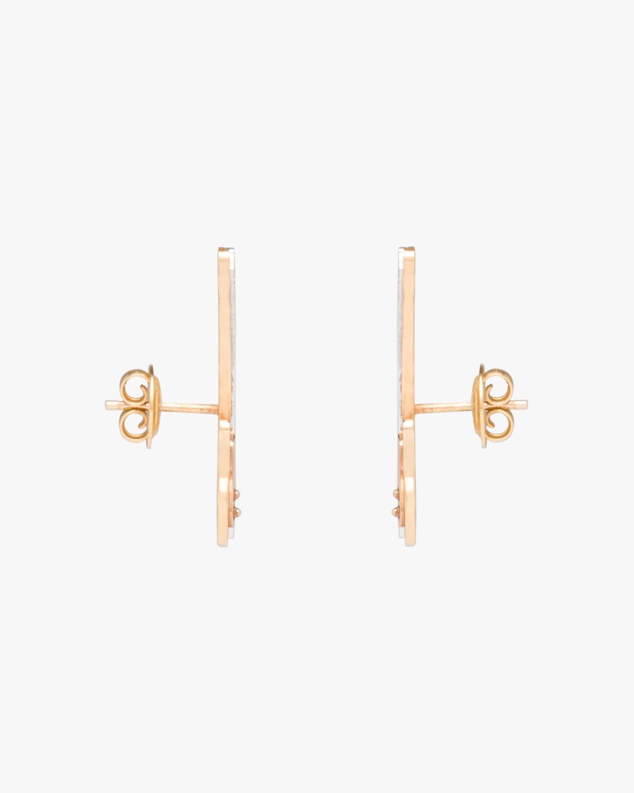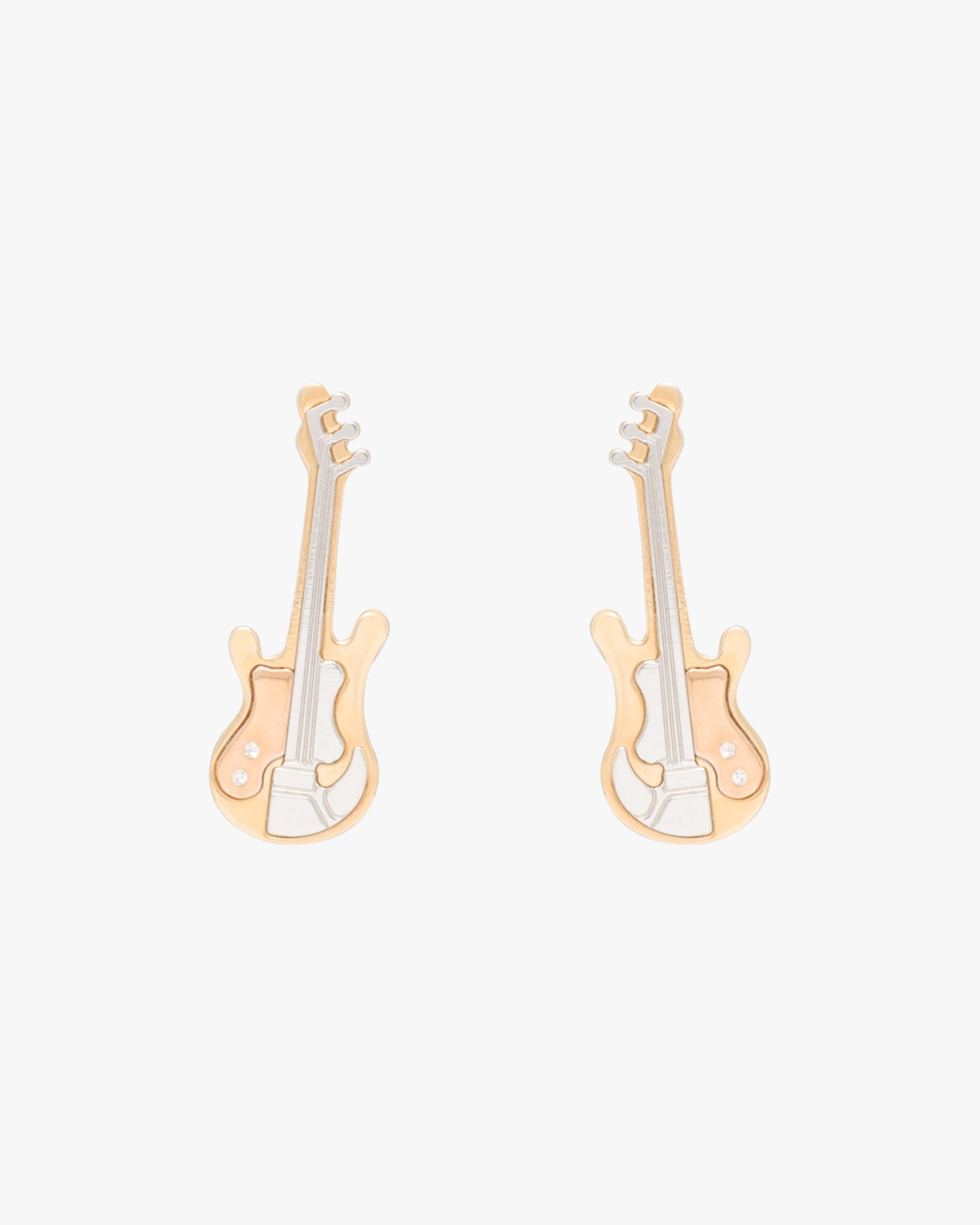 These gold earrings have a guitar-shaped charm embellished with diamonds.