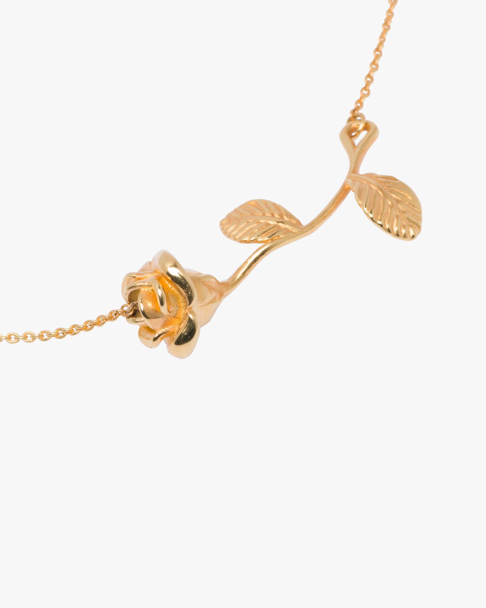 This gold necklace is defined by its precious rose-shaped pendant.