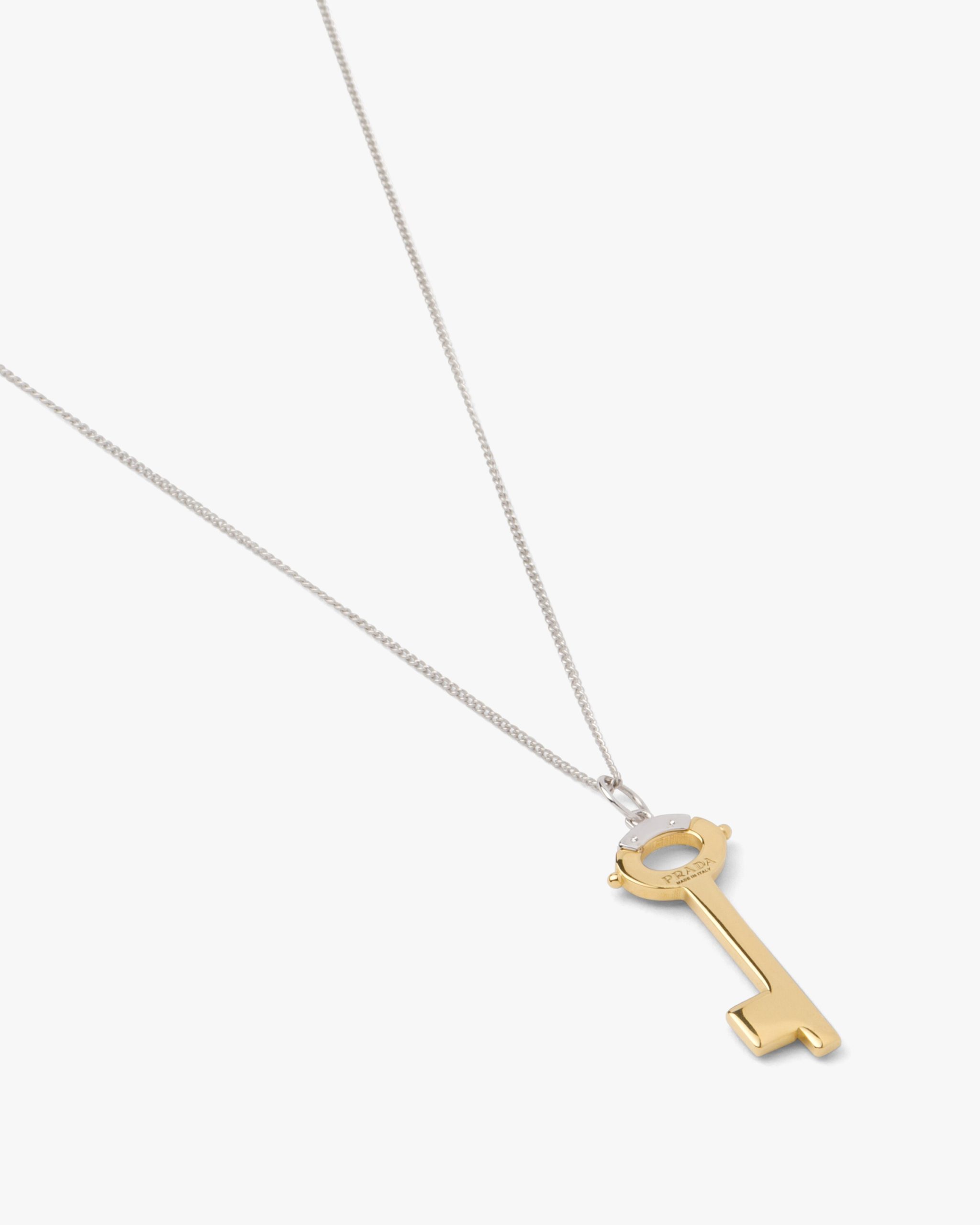 The elegant yellow gold chain is decorated with a precision cast key-shaped pendant in yellow, white and rose gold.