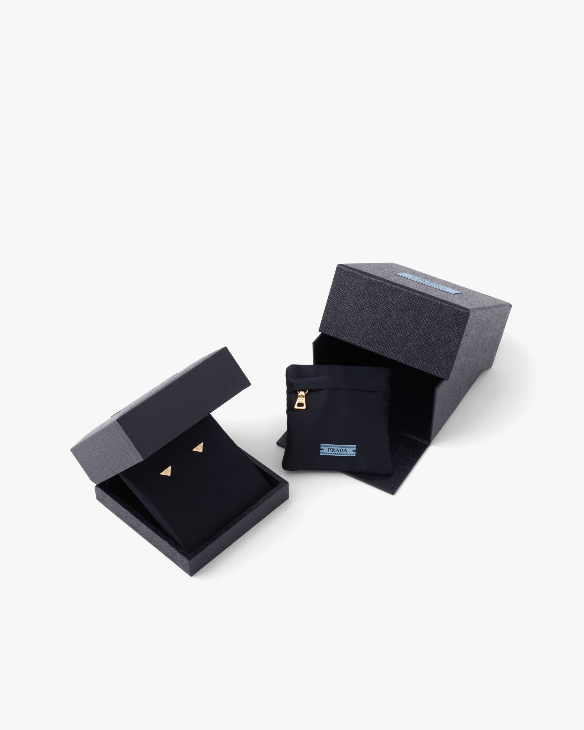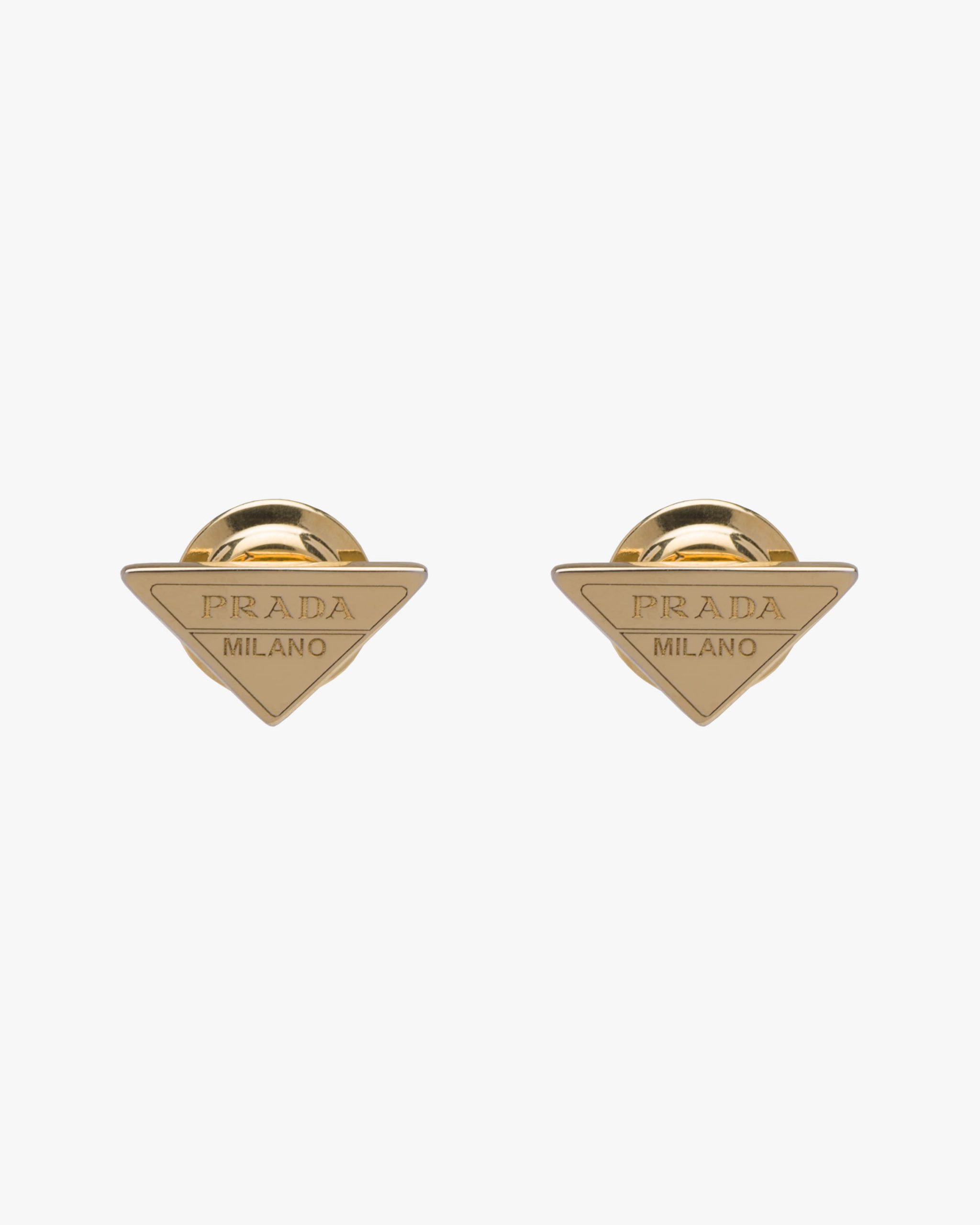The iconic Prada triangle gives shape to the gold pendant.