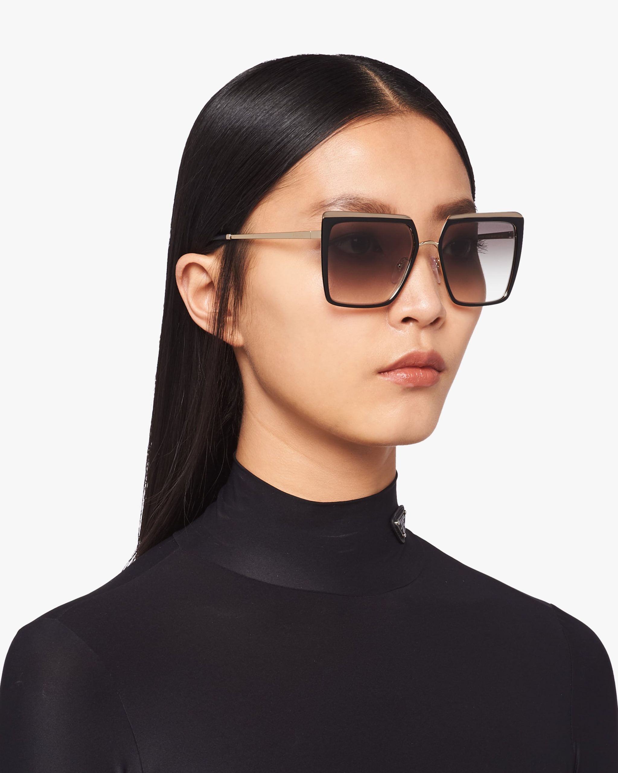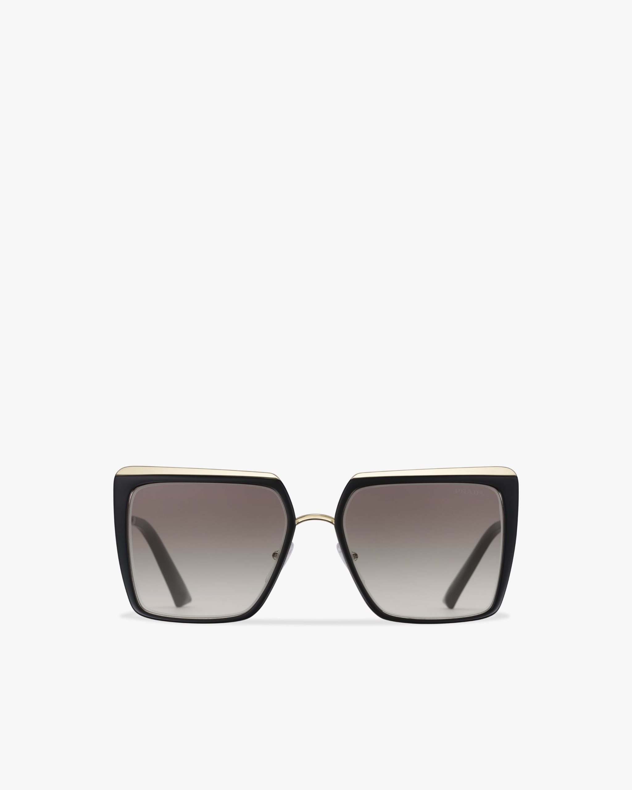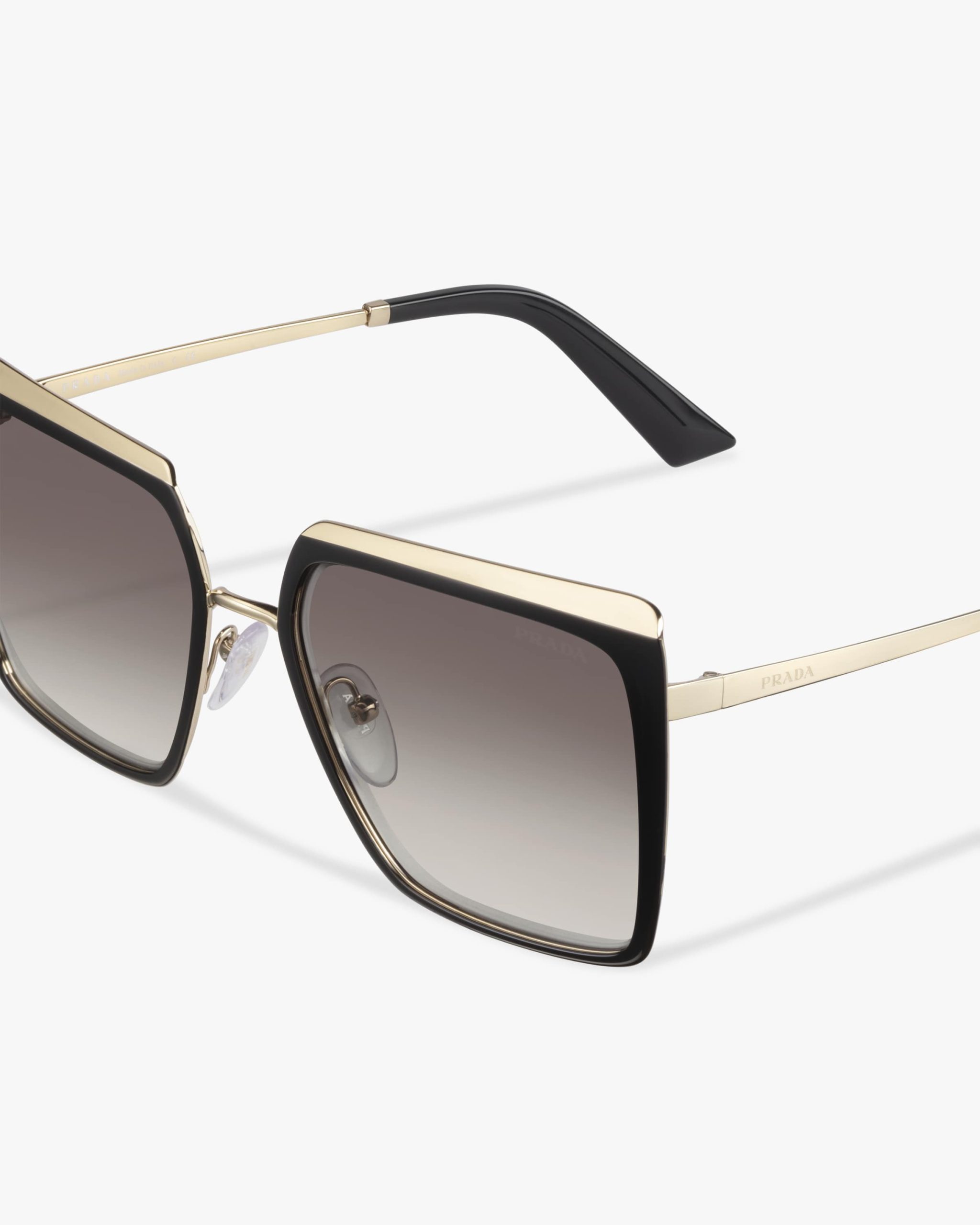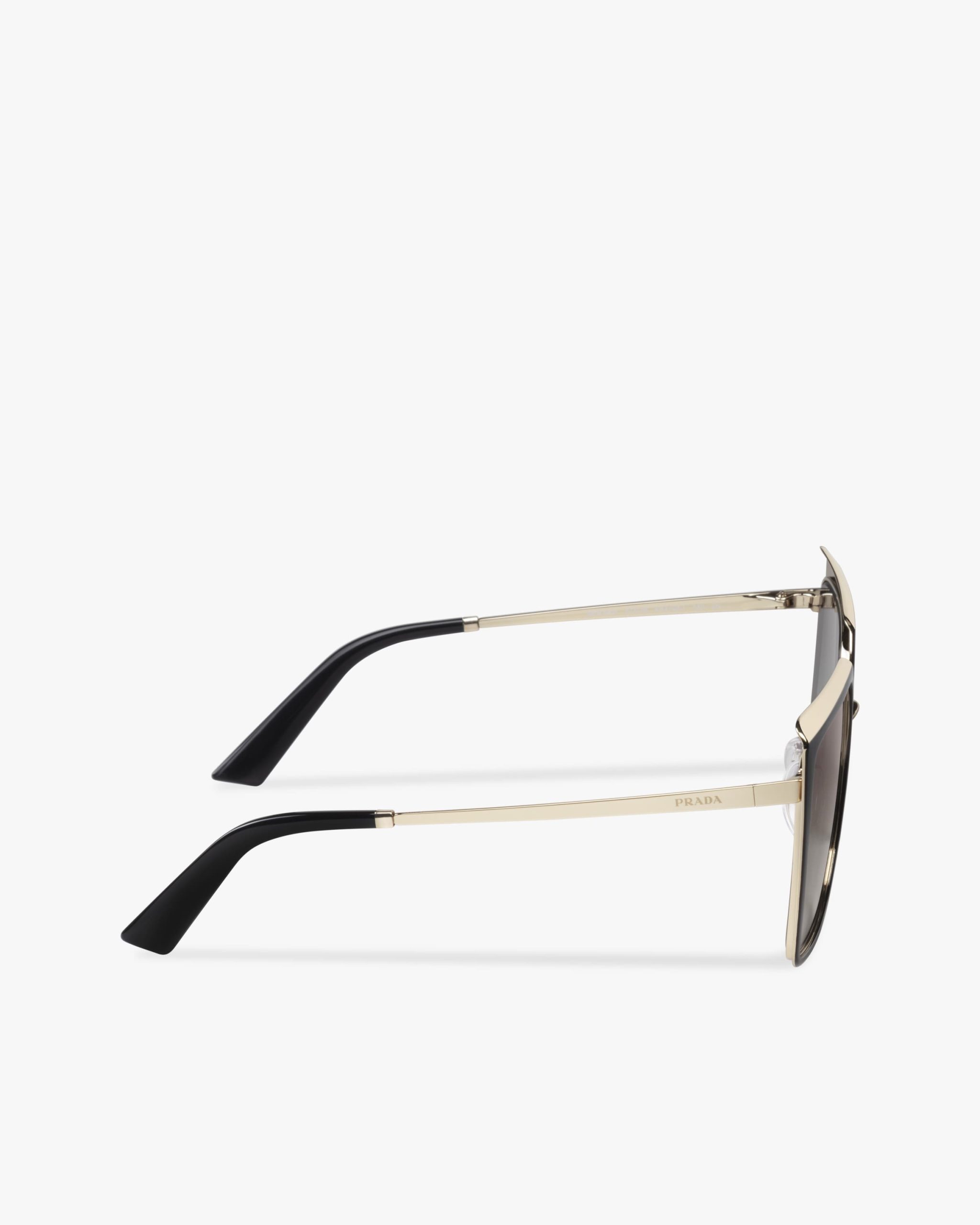 Sunglasses of the iconic Prada Cin?ma collectsion with sophisticated, contemporary allure. The top part of the metal frames features a distinctive enameled brow bar in a color that matches or contrasts with the frame front. The slender temples are finely engraved with the Prada Lettering logo2.