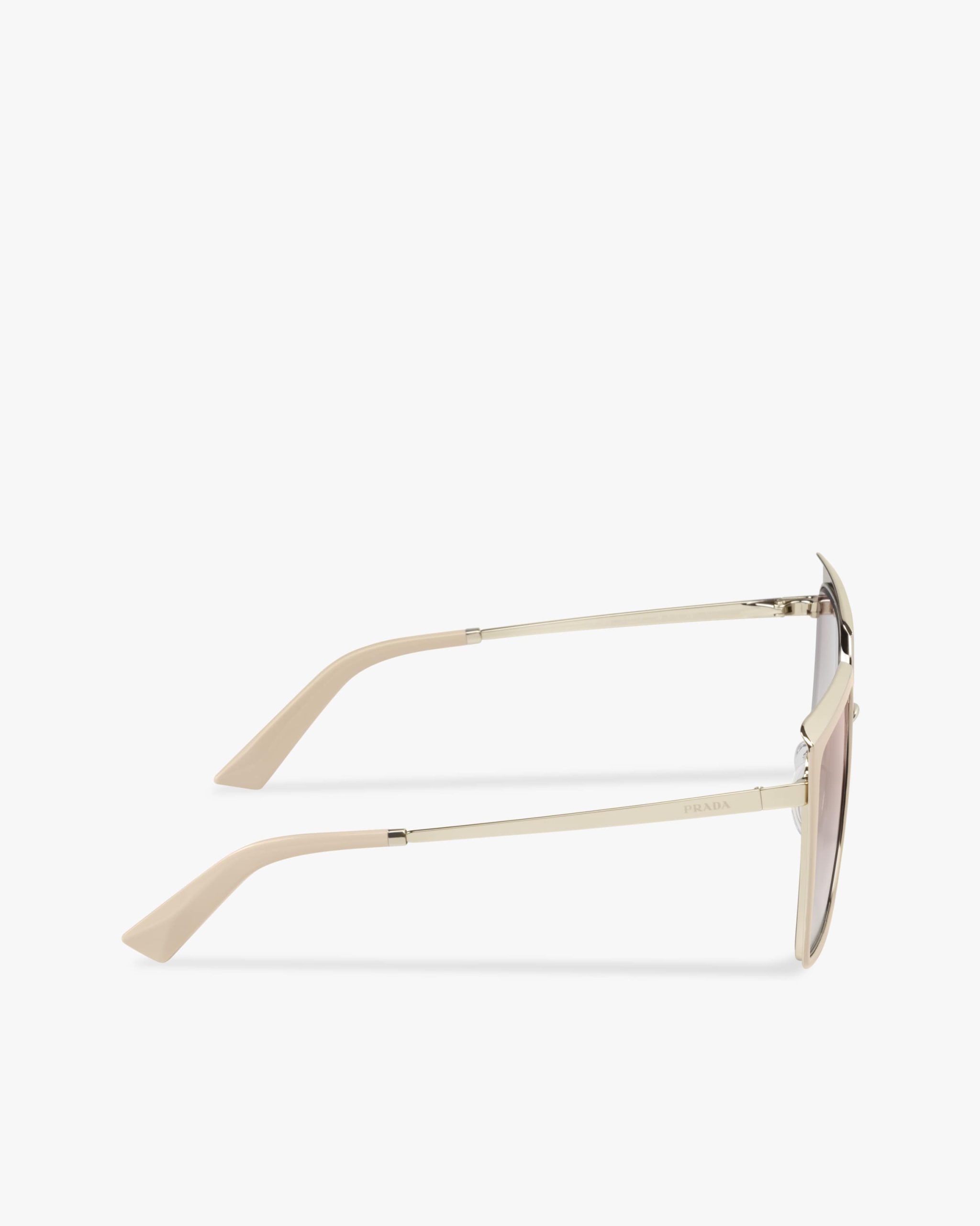 Sunglasses of the iconic Prada Cin?ma collectsion with sophisticated, contemporary allure. The top part of the metal frames features a distinctive enameled brow bar in a color that matches or contrasts with the frame front. The slender temples are finely engraved with the Prada Lettering logo2.