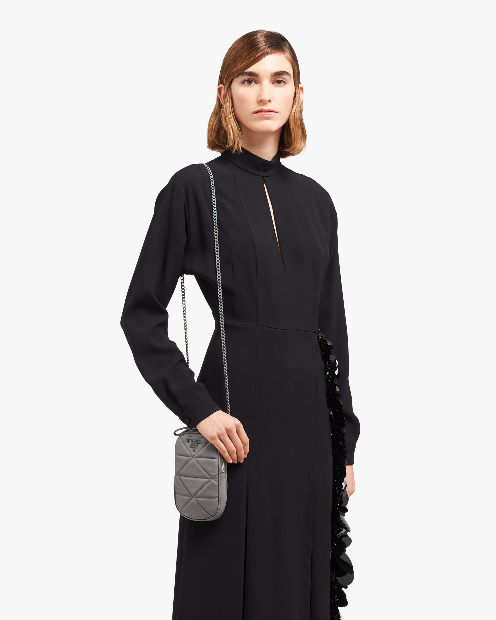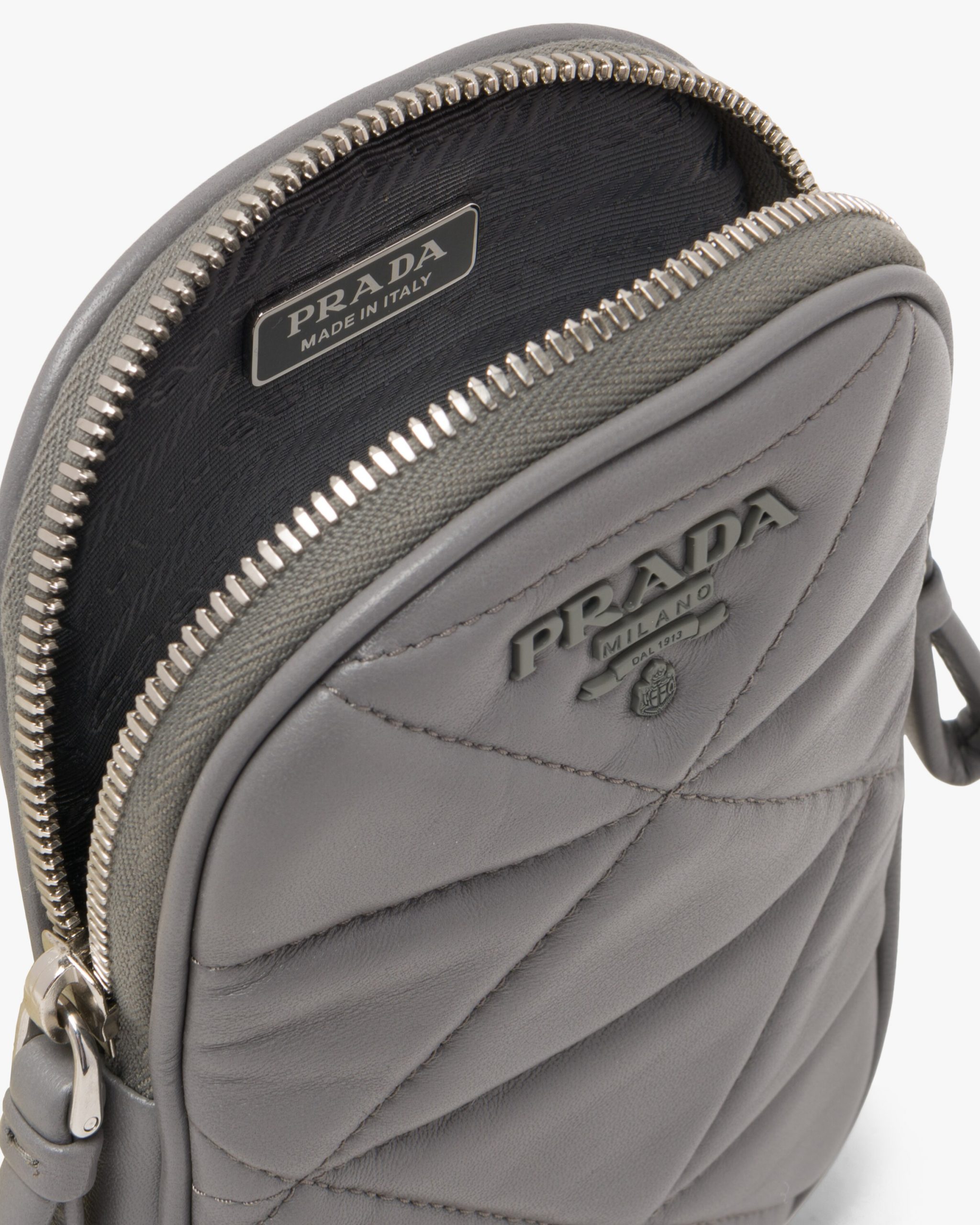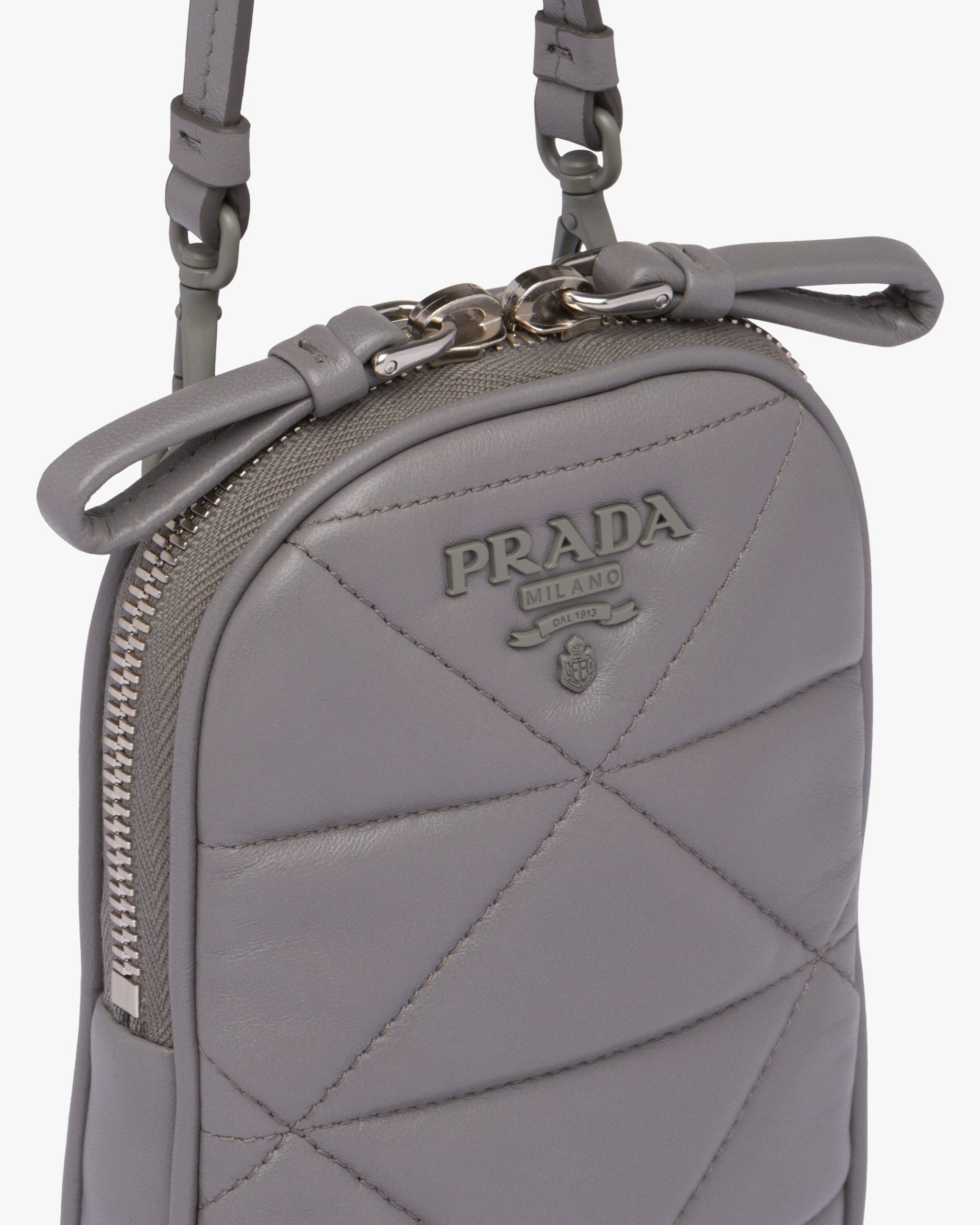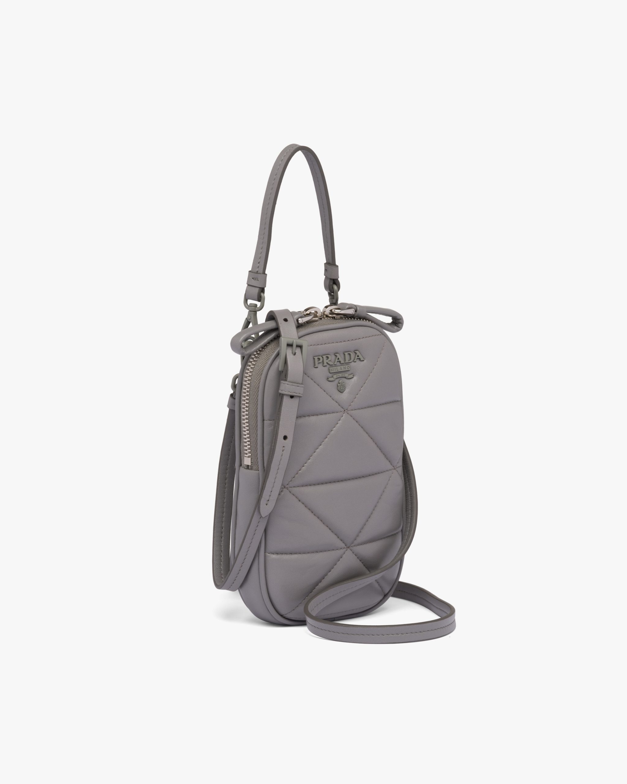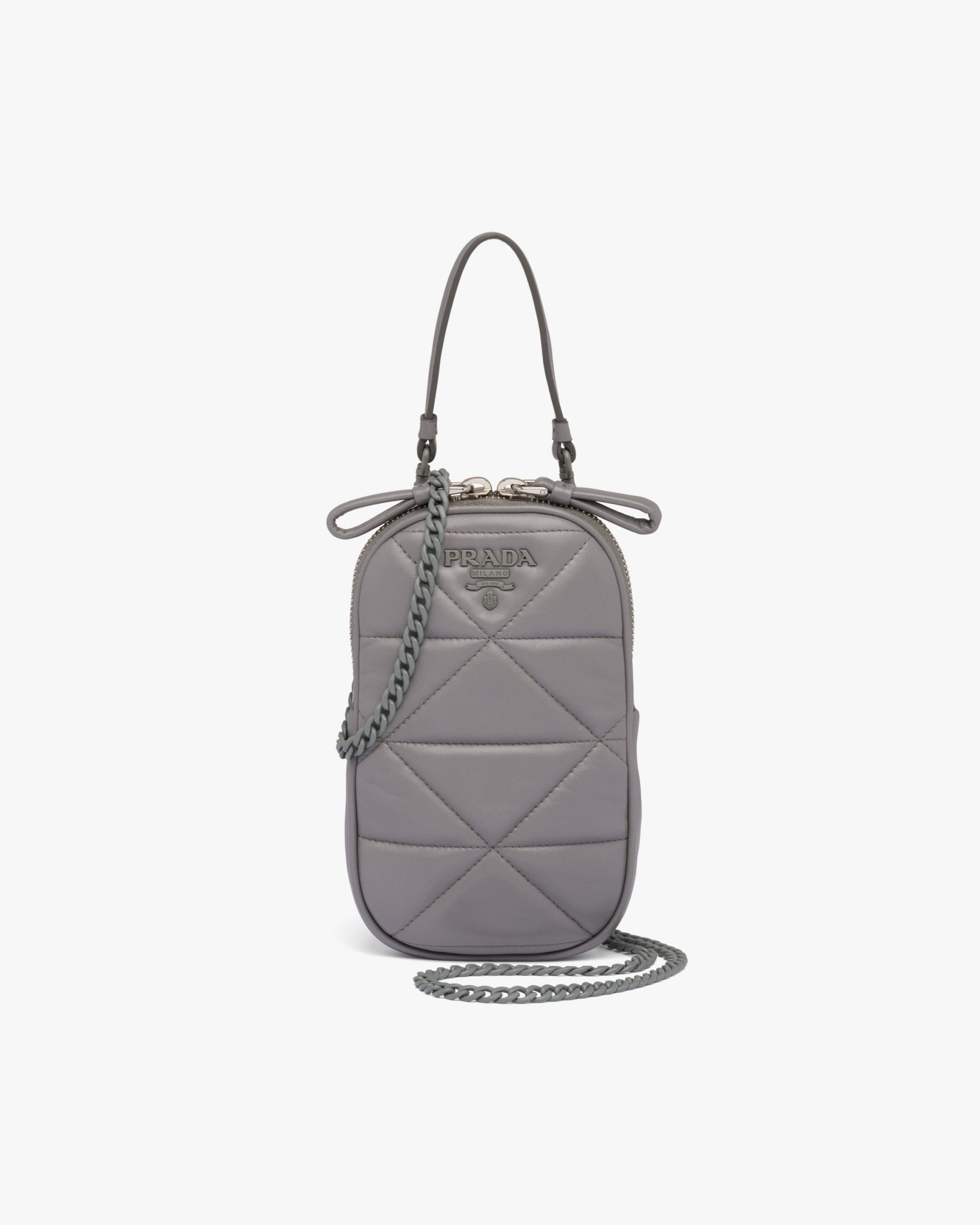 Quilted nappa leather creates a romantic geometric motif on the Prada Spectrum mini-bag decorated with the metal logo2.