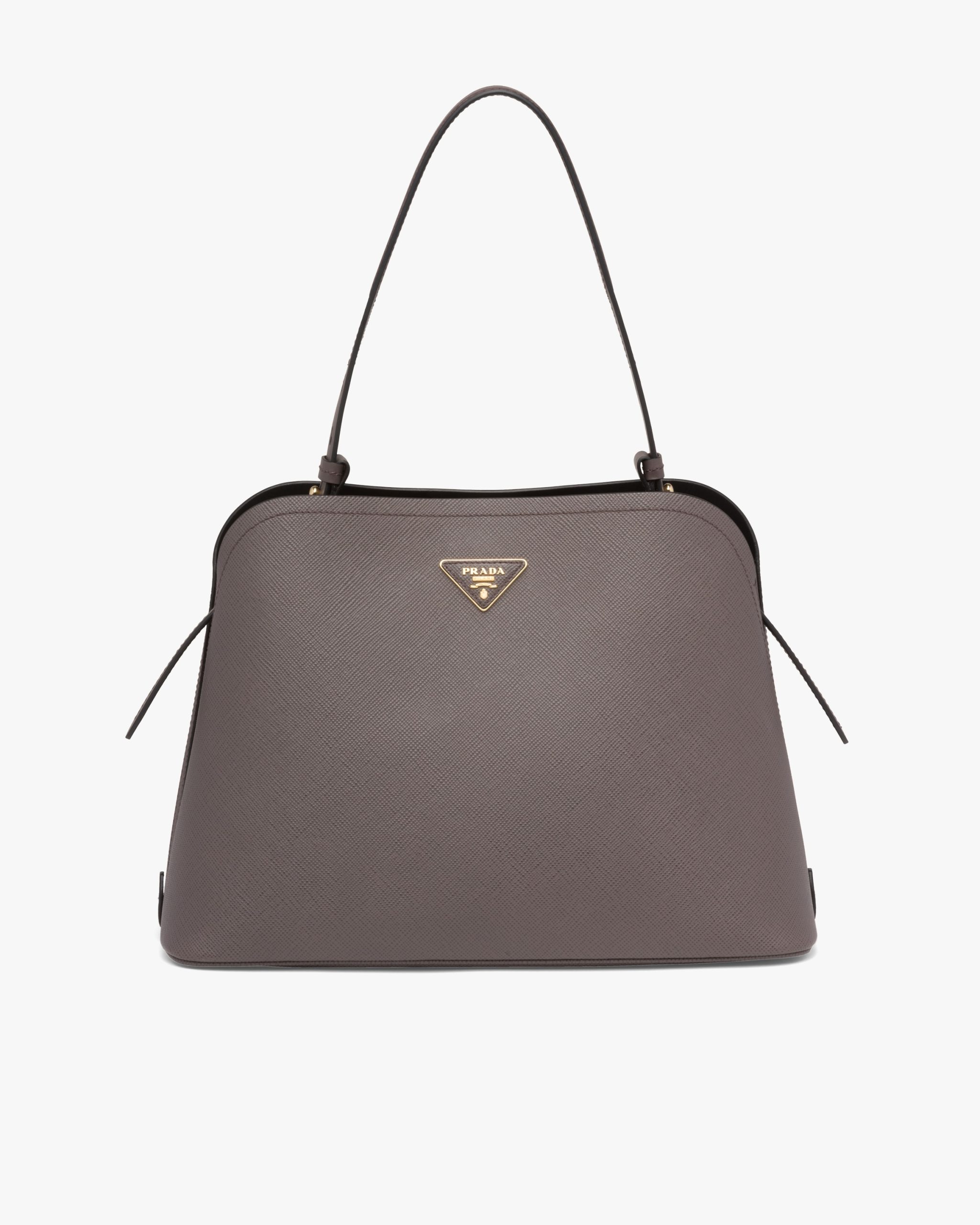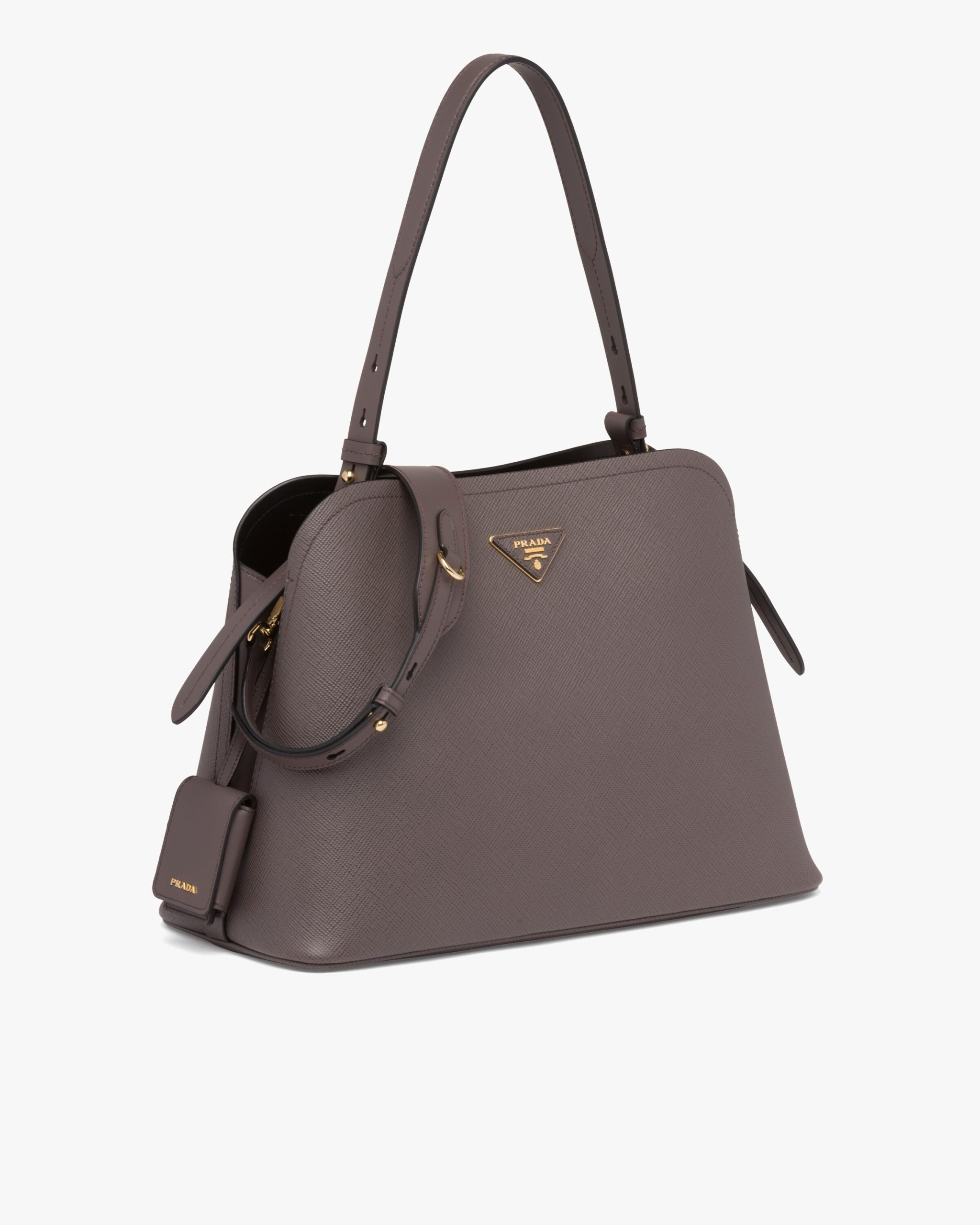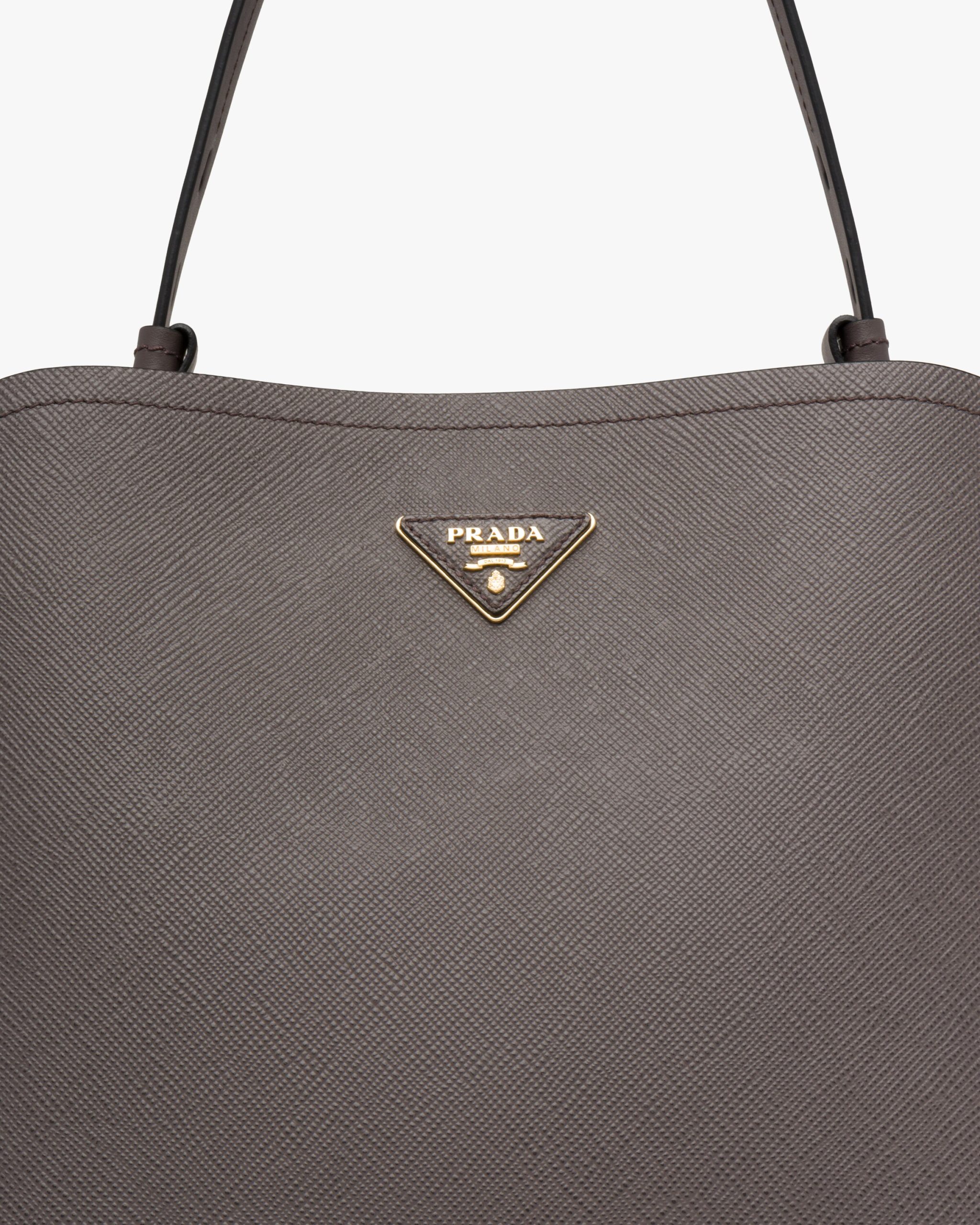 The Prada Matin?e handbag made of Saffiano leather stands out for its metal triangle logo2 and detachable adjustable leather shoulder strap.