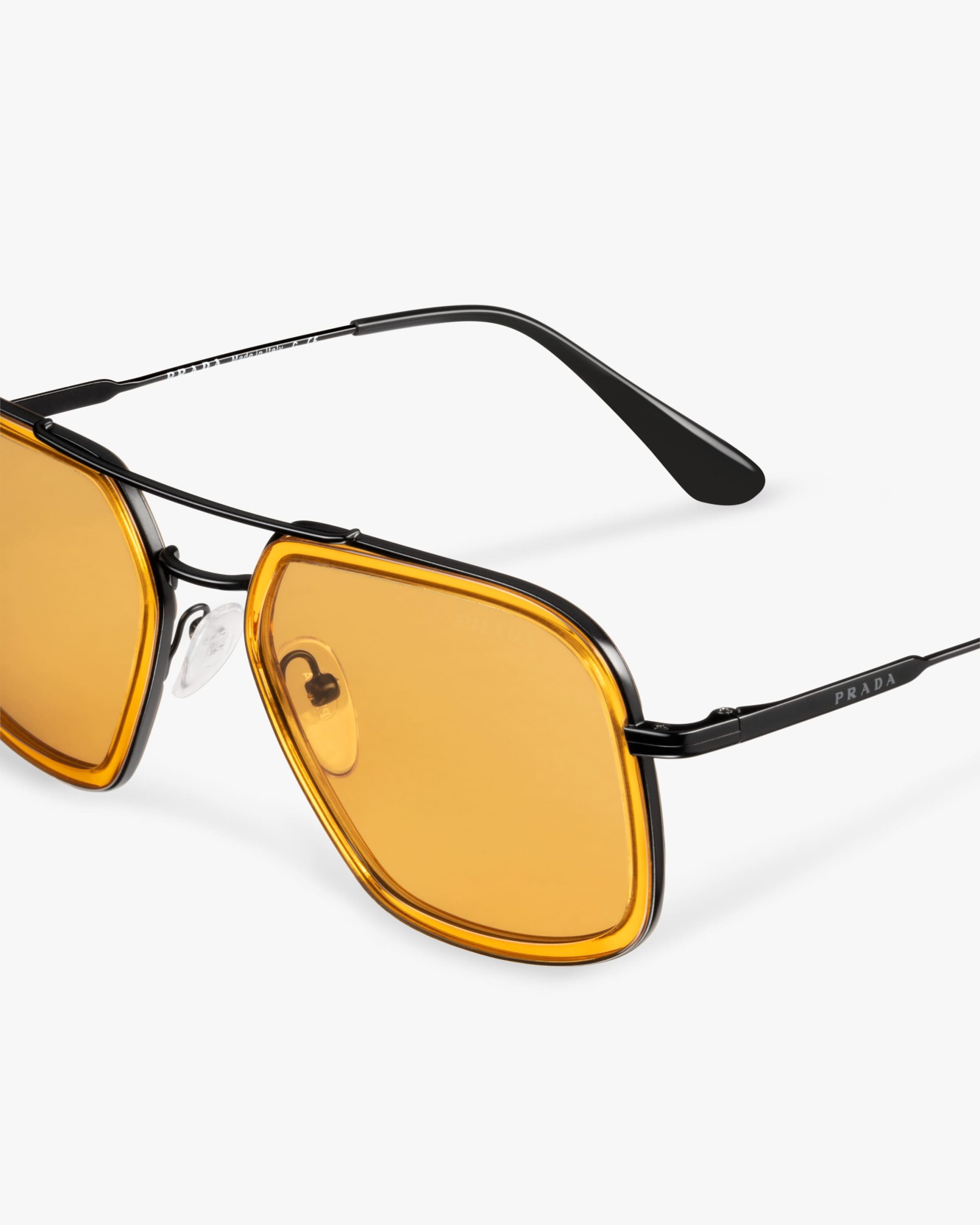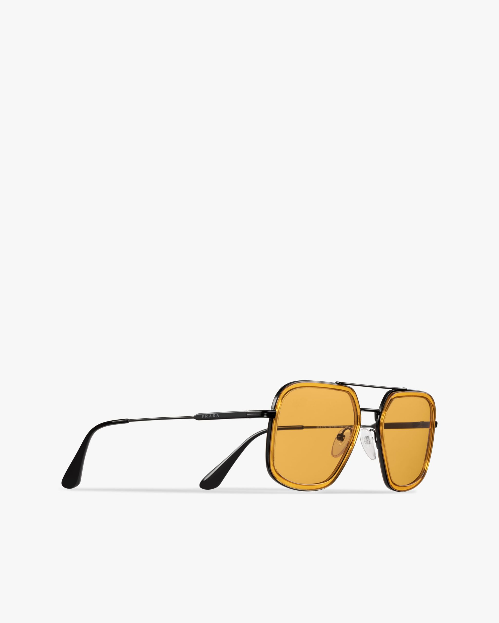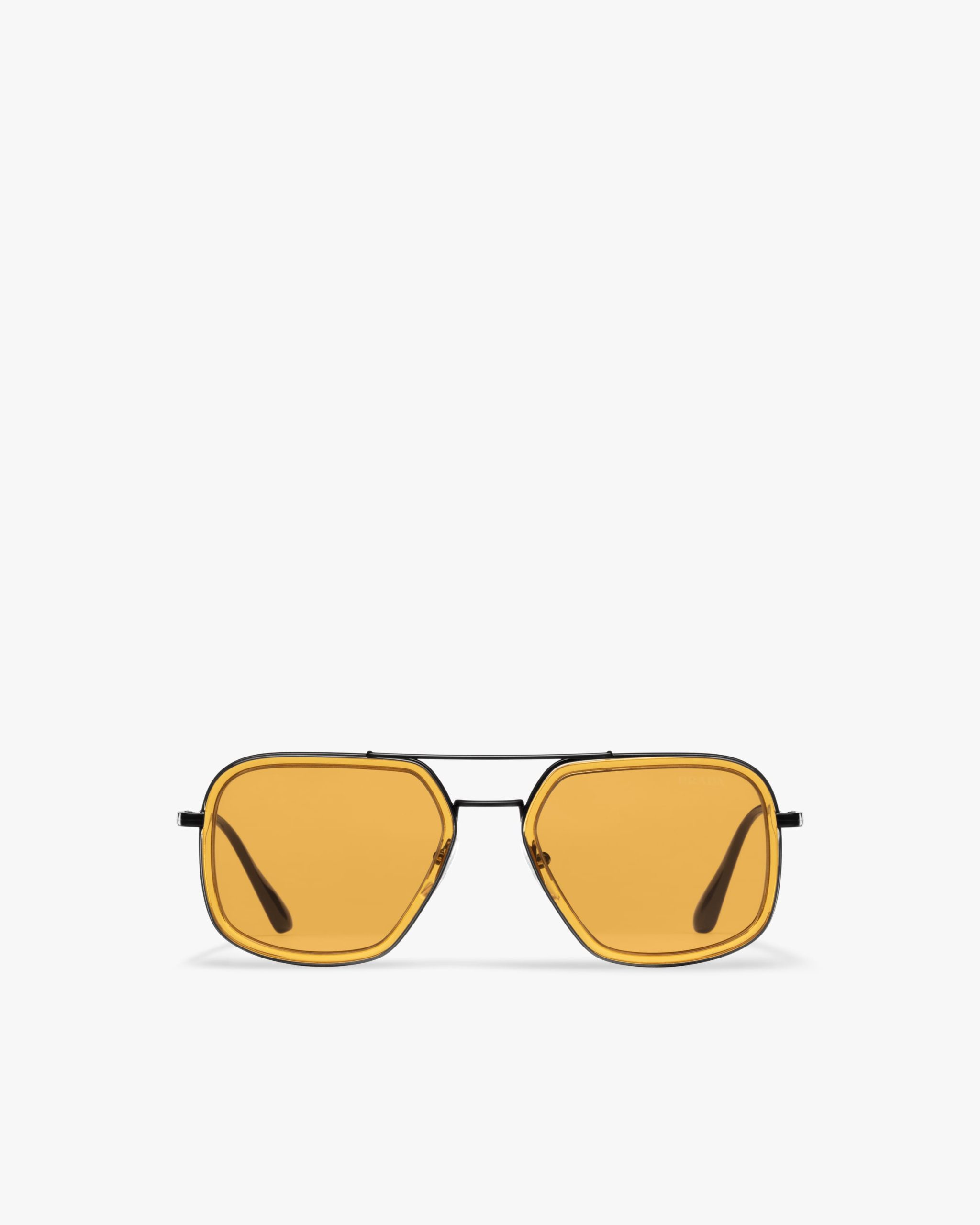 These sunglasses are defined by their rectangular silhouette elegant acetate rims and a double metal bridge with a contemporary touch. Prada lettering logo2.