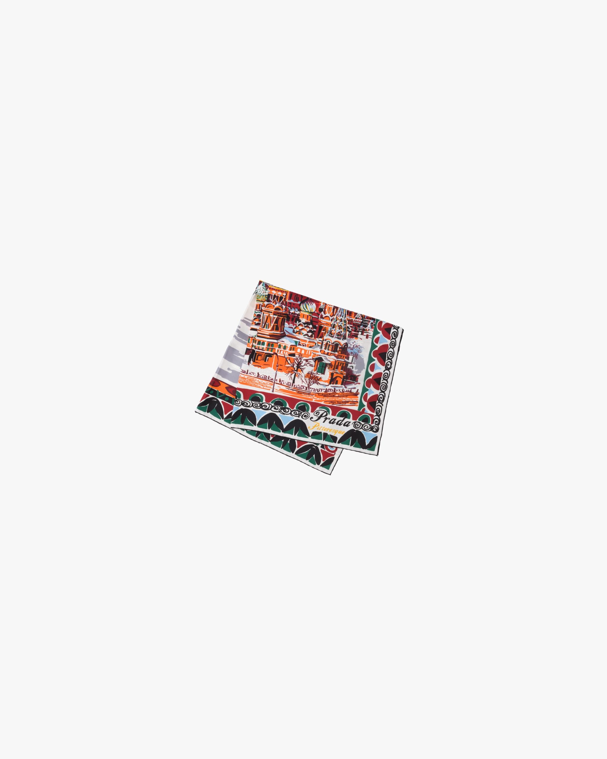 On a colorful journey around the globe, the Pittoresque series presents lively prints of important cities of the world. The silk foulard is finely decorated with the hand-drawn Moscow print.