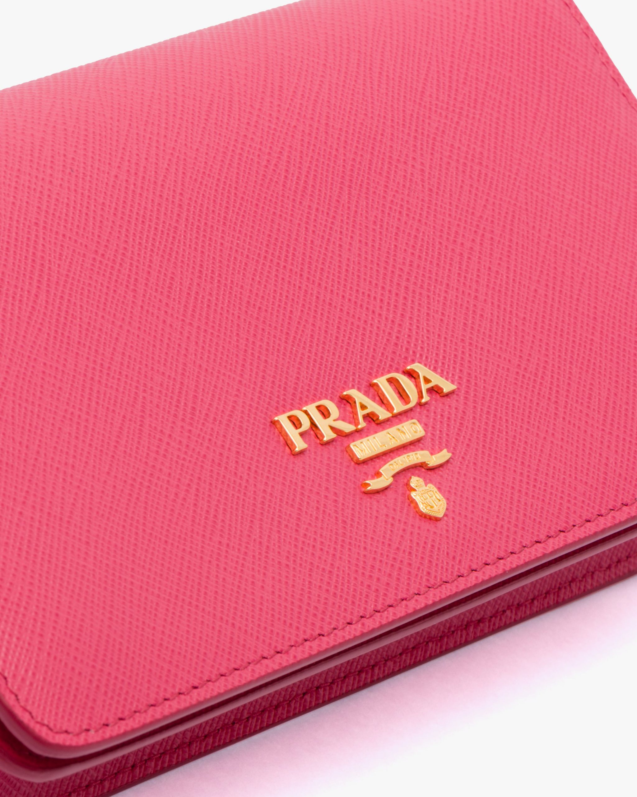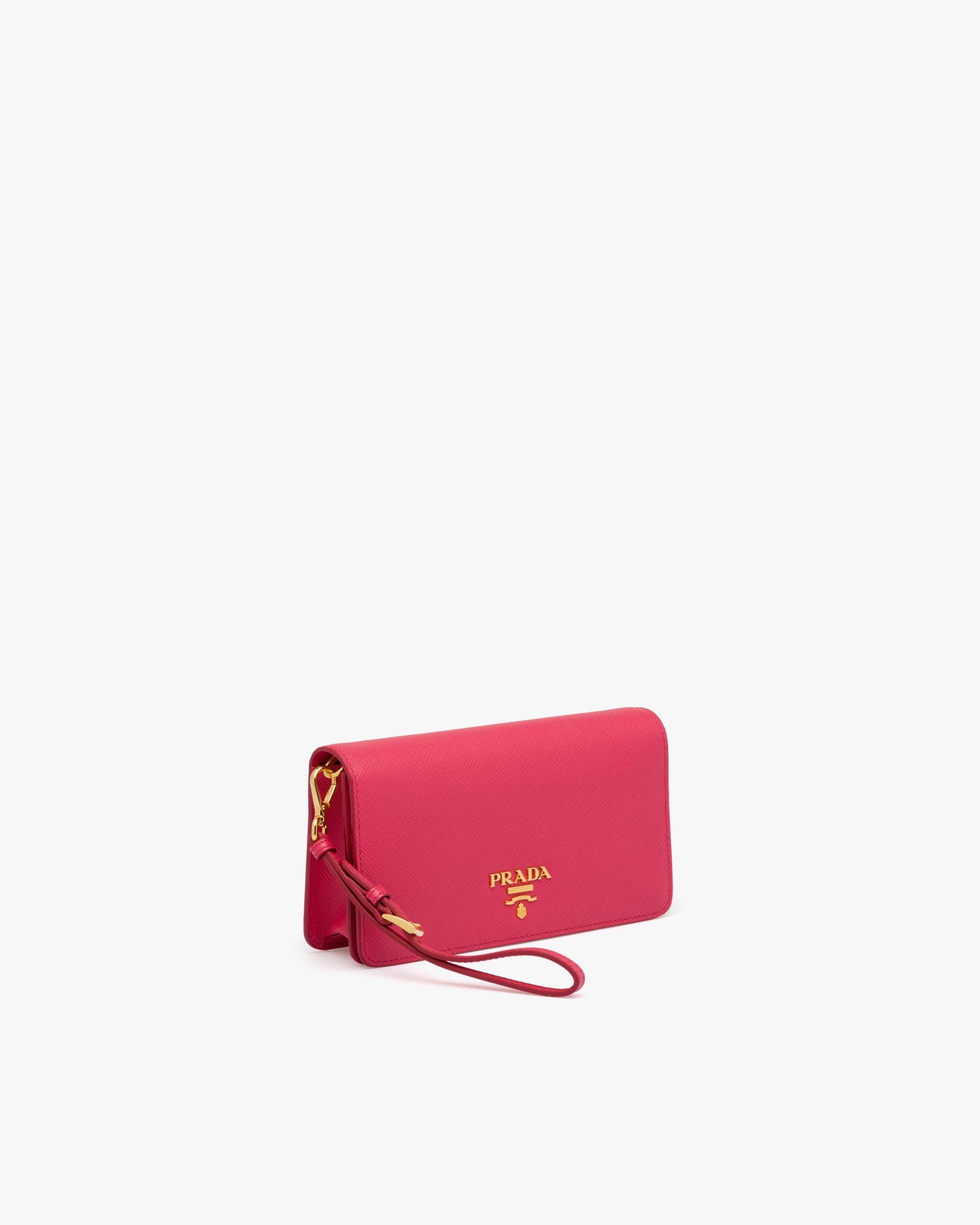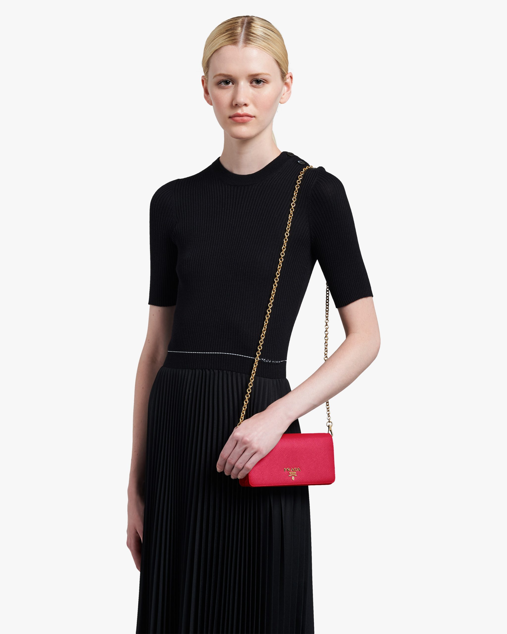 Refined and with a minimal design, this Saffiano leather mini-bag has a detachable chain shoulder strap.