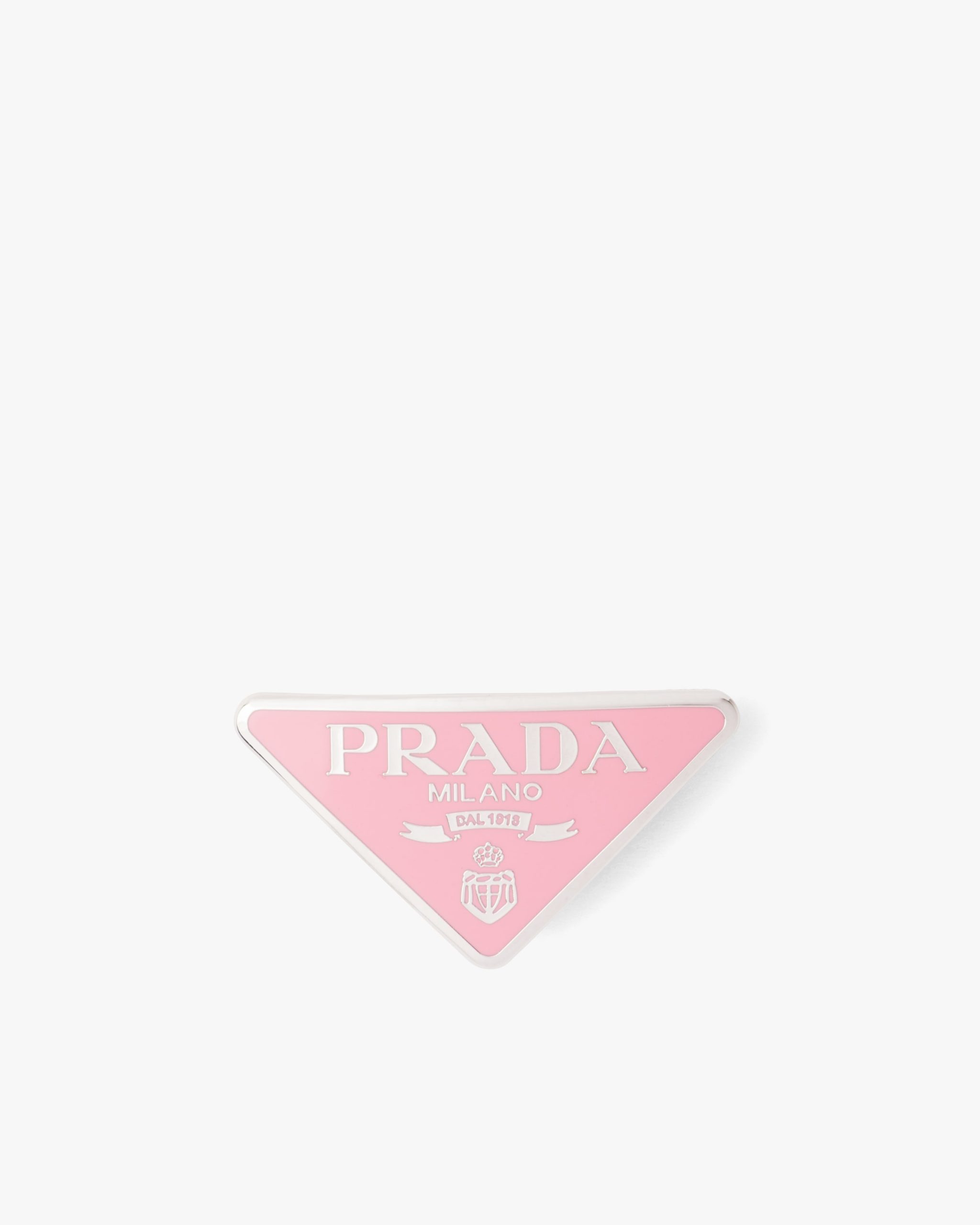 This hair clip with an iconic design is made of enameled metal. The accessory has a clip on the back.