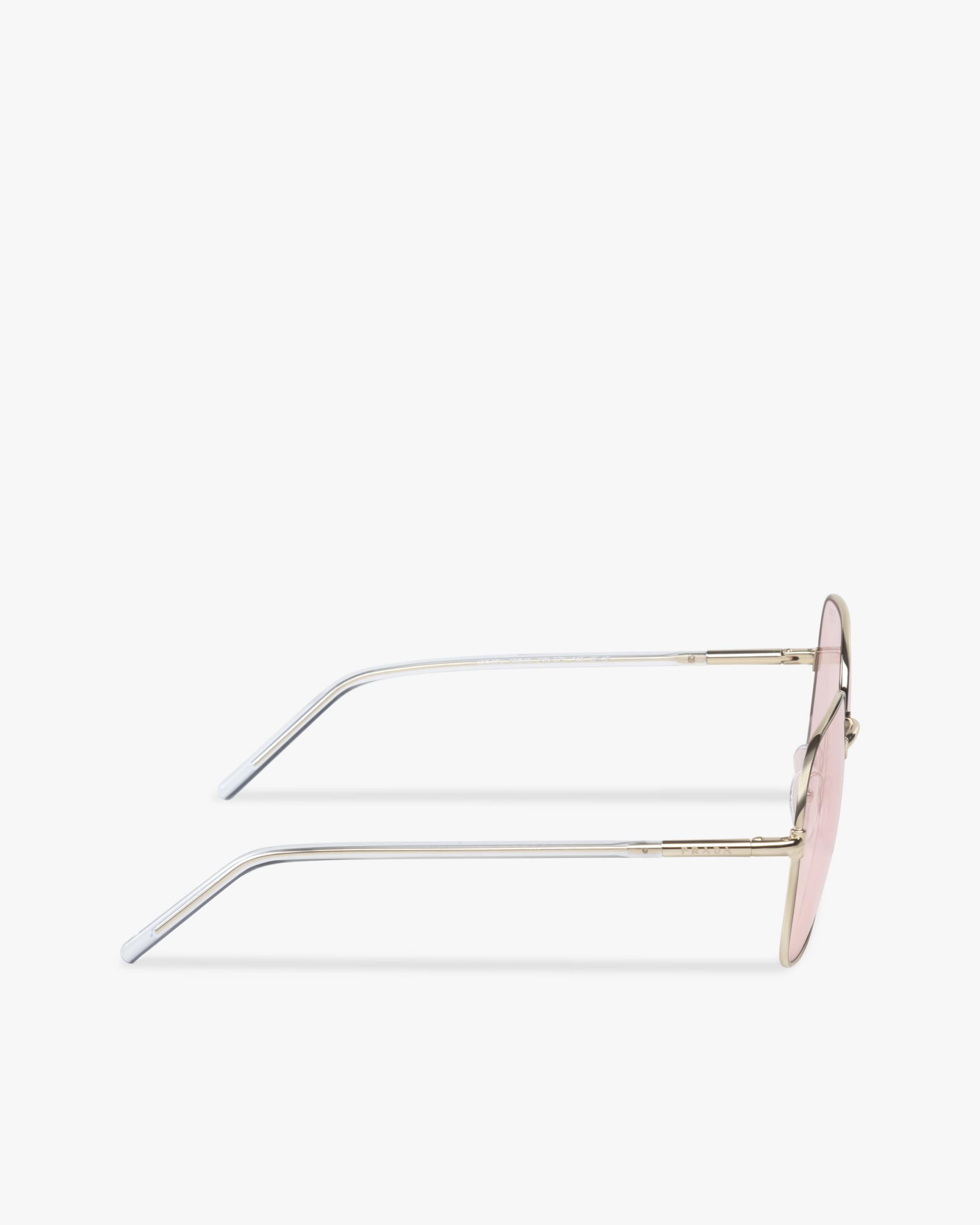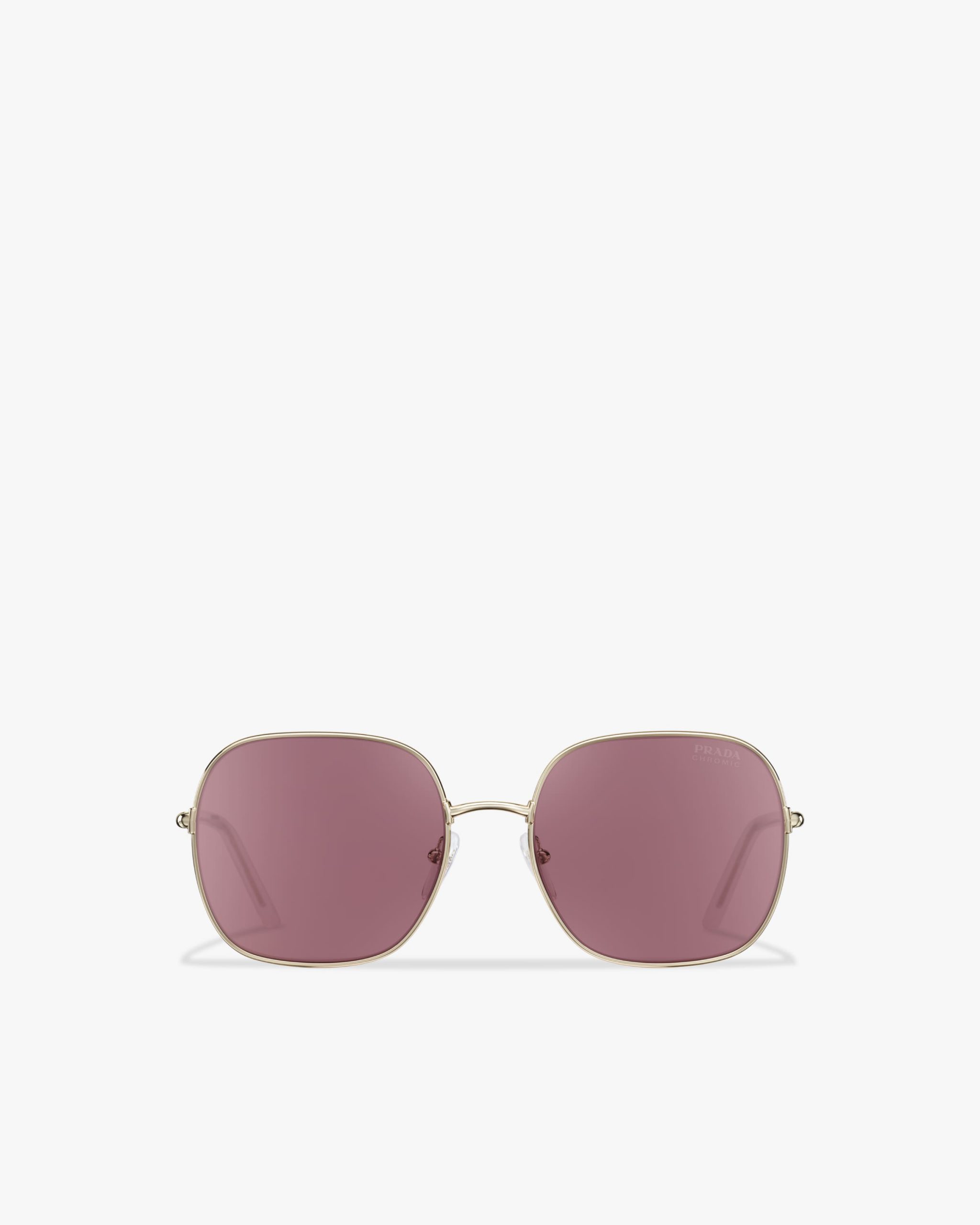 Sunglasses with contemporary, feminine allure characterized by the square design with refined lines. The exclusive Prada Chromic photochromic lenses add a modern touch and adapt to any change in sunlight, darkening in a few seconds. Prada lettering logo2.