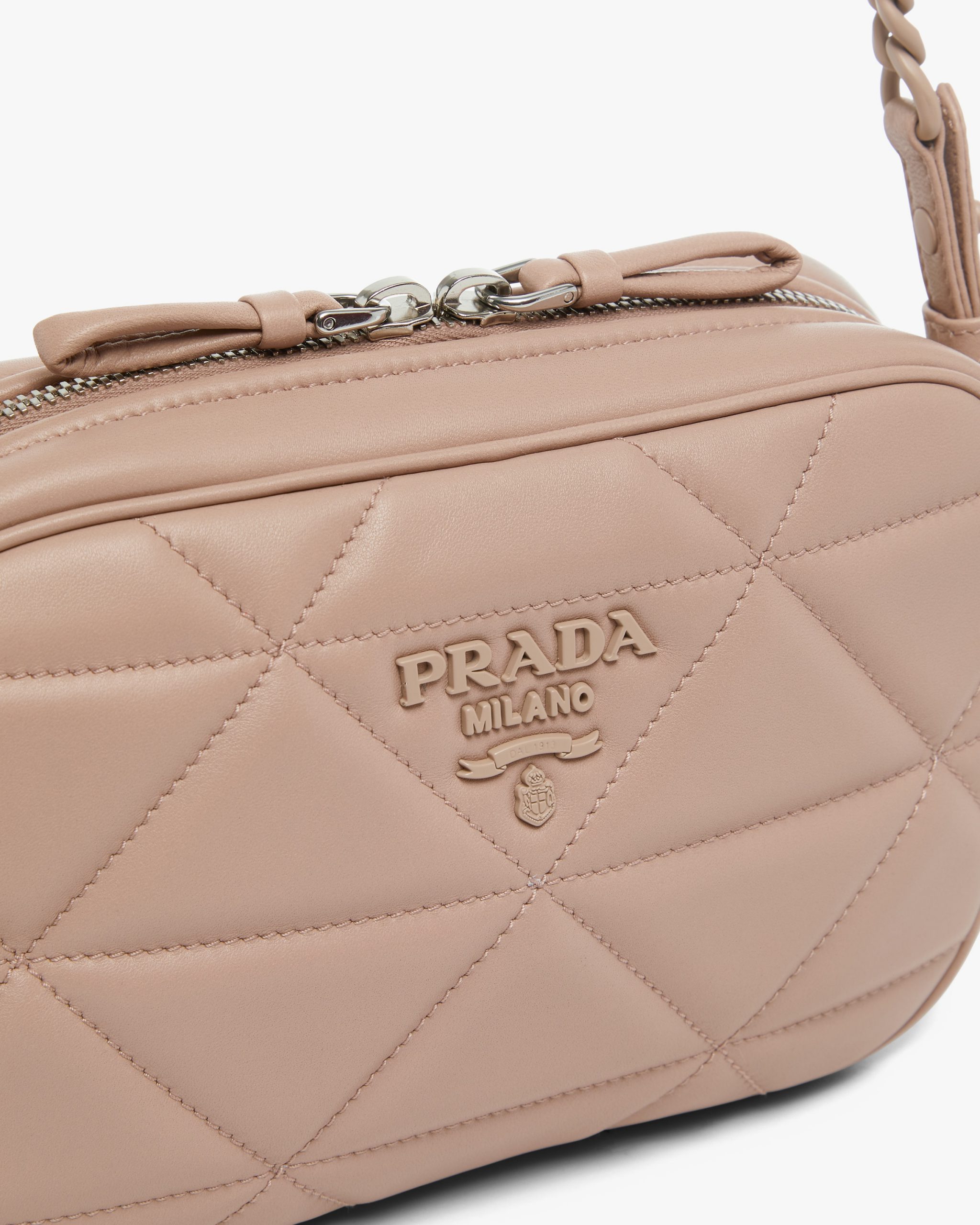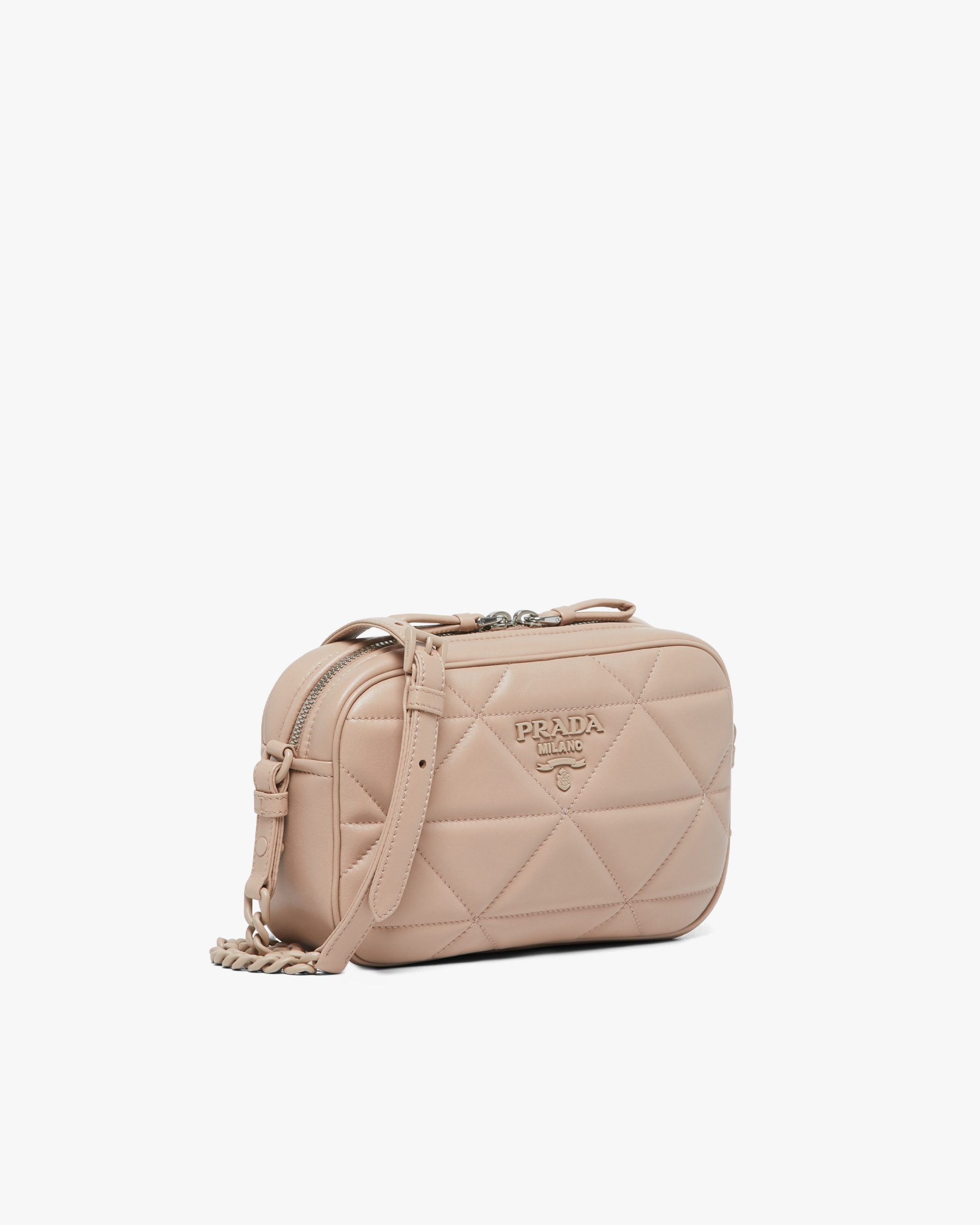The Prada Spectrum shoulder bag is characterized by the geometric motif created by the stitching on the nappa leather. The bag has a tonal metal lettering logo2.