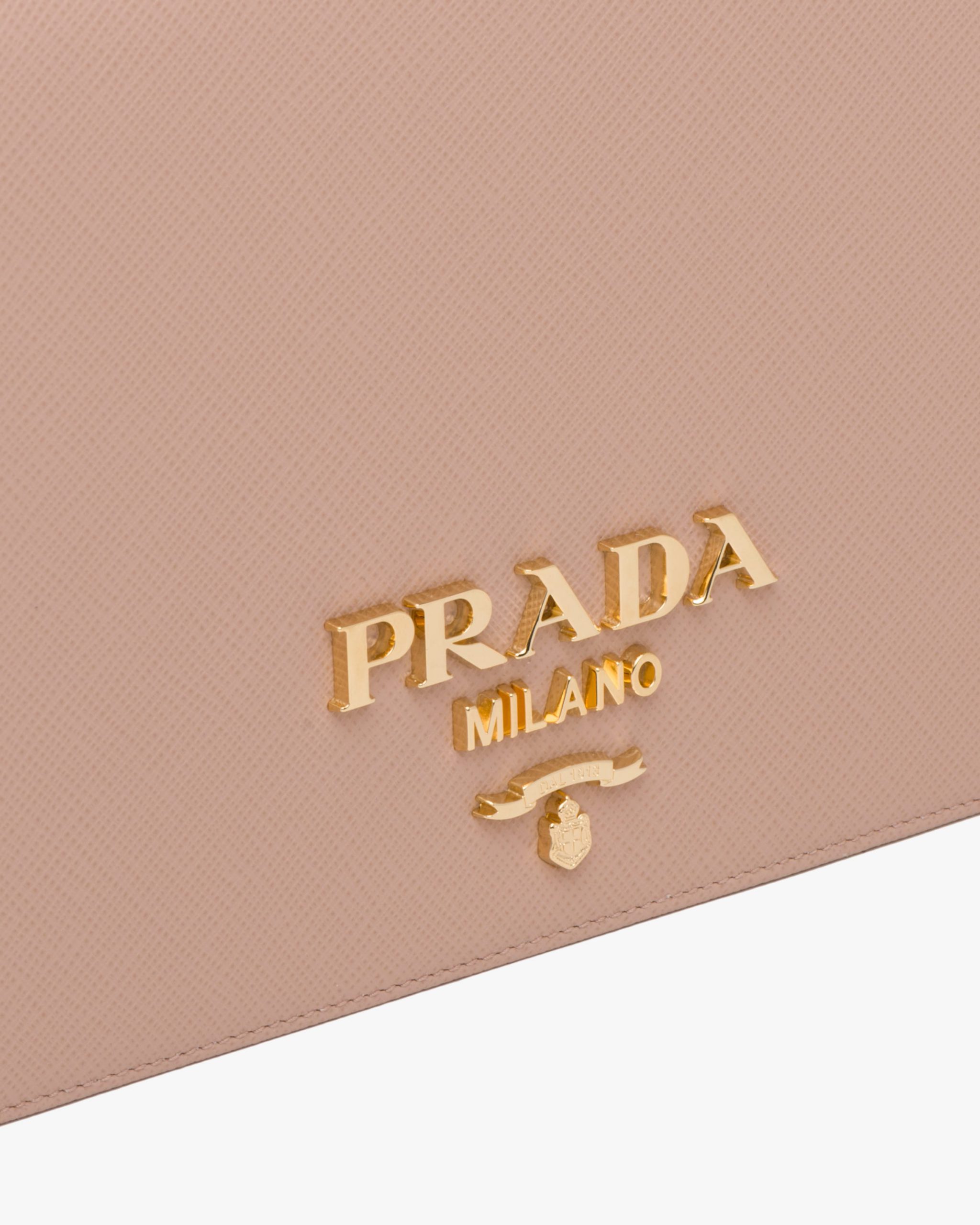 This Saffiano leather mini-bag with shoulder strap has a refined minimalist design. The accessory is decorated with the metal logo2.