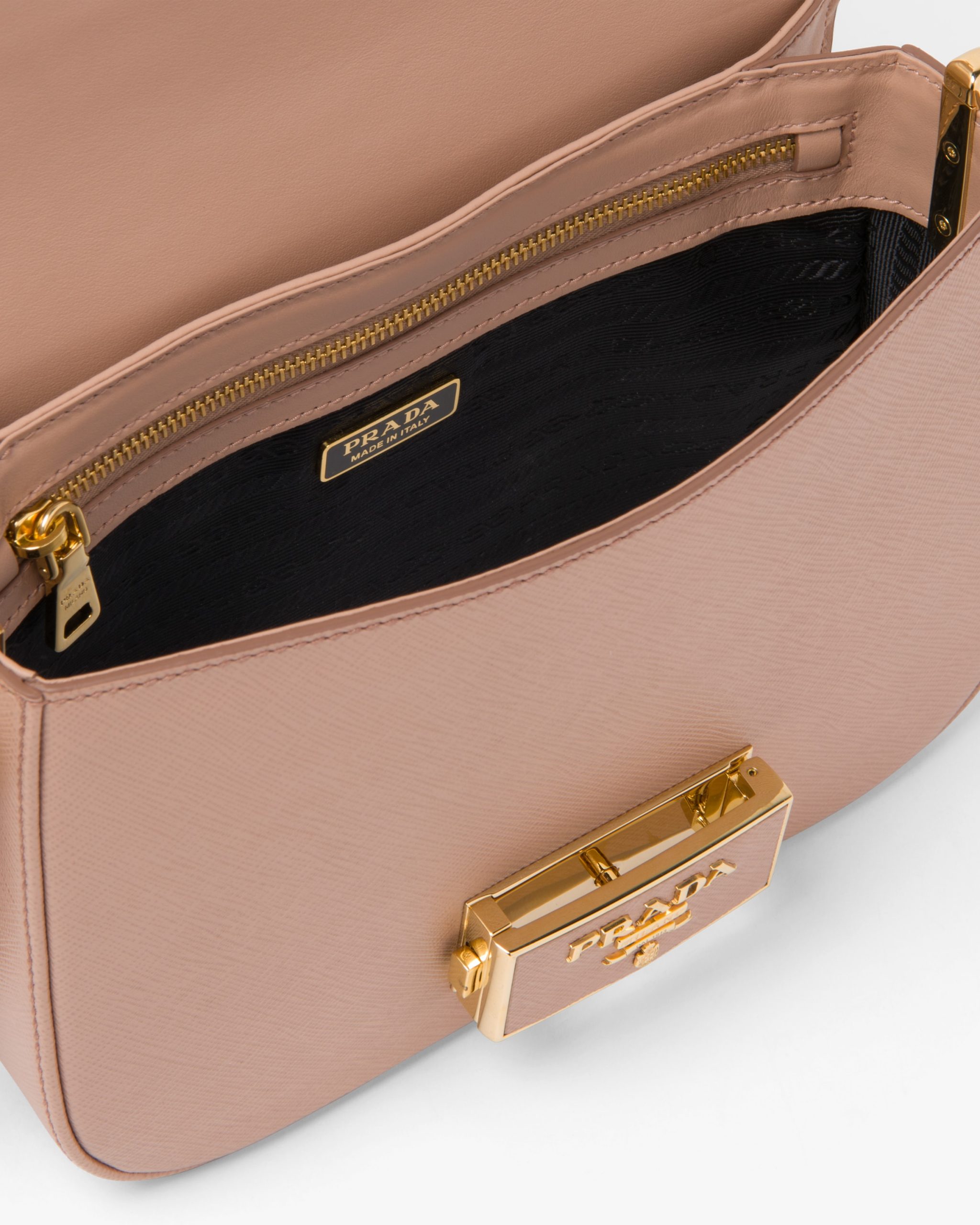 Powder Pink Saffiano Leather Prada Embleme Bag