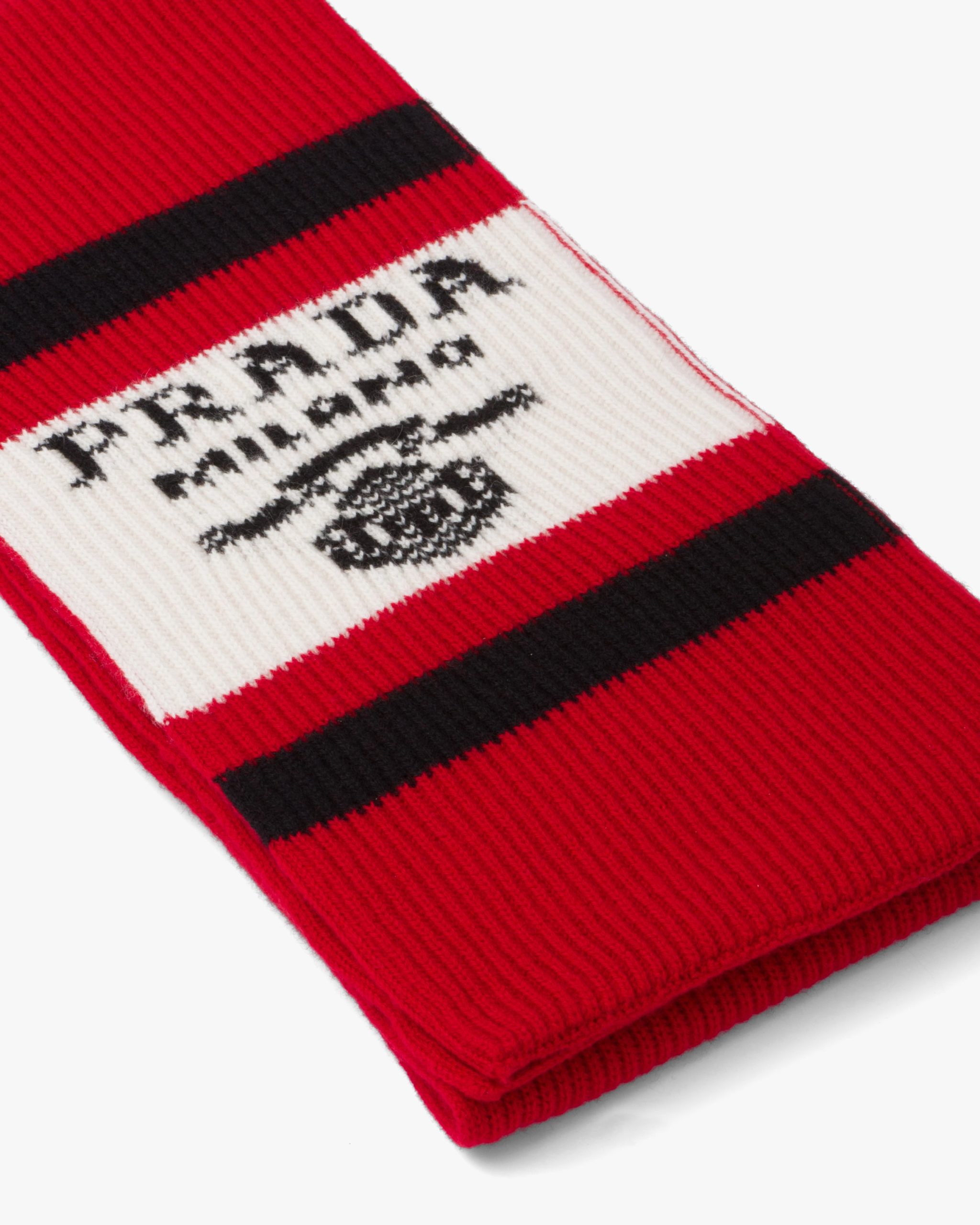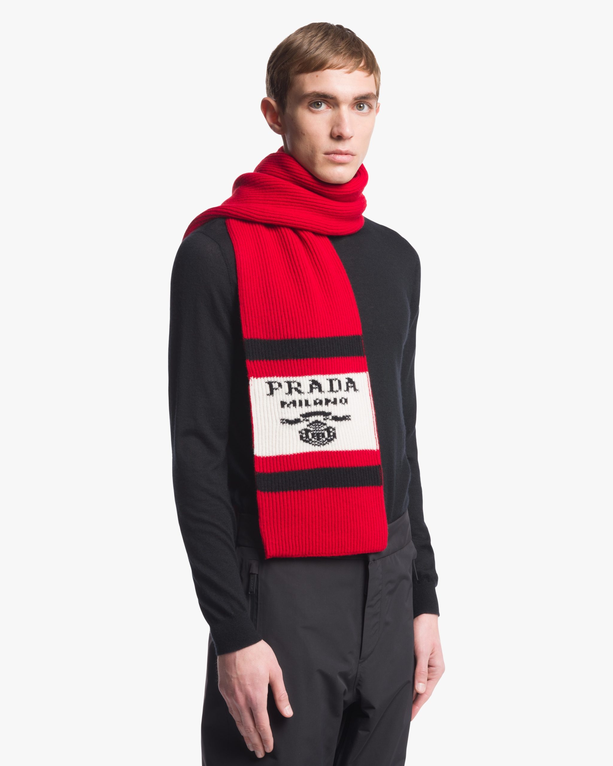 This sporty yet refined scarf is made of soft, fine cashmere. The accessory that recalls a vintage design of an alpine wardrobe is decorated with the jacquard lettering logo2.